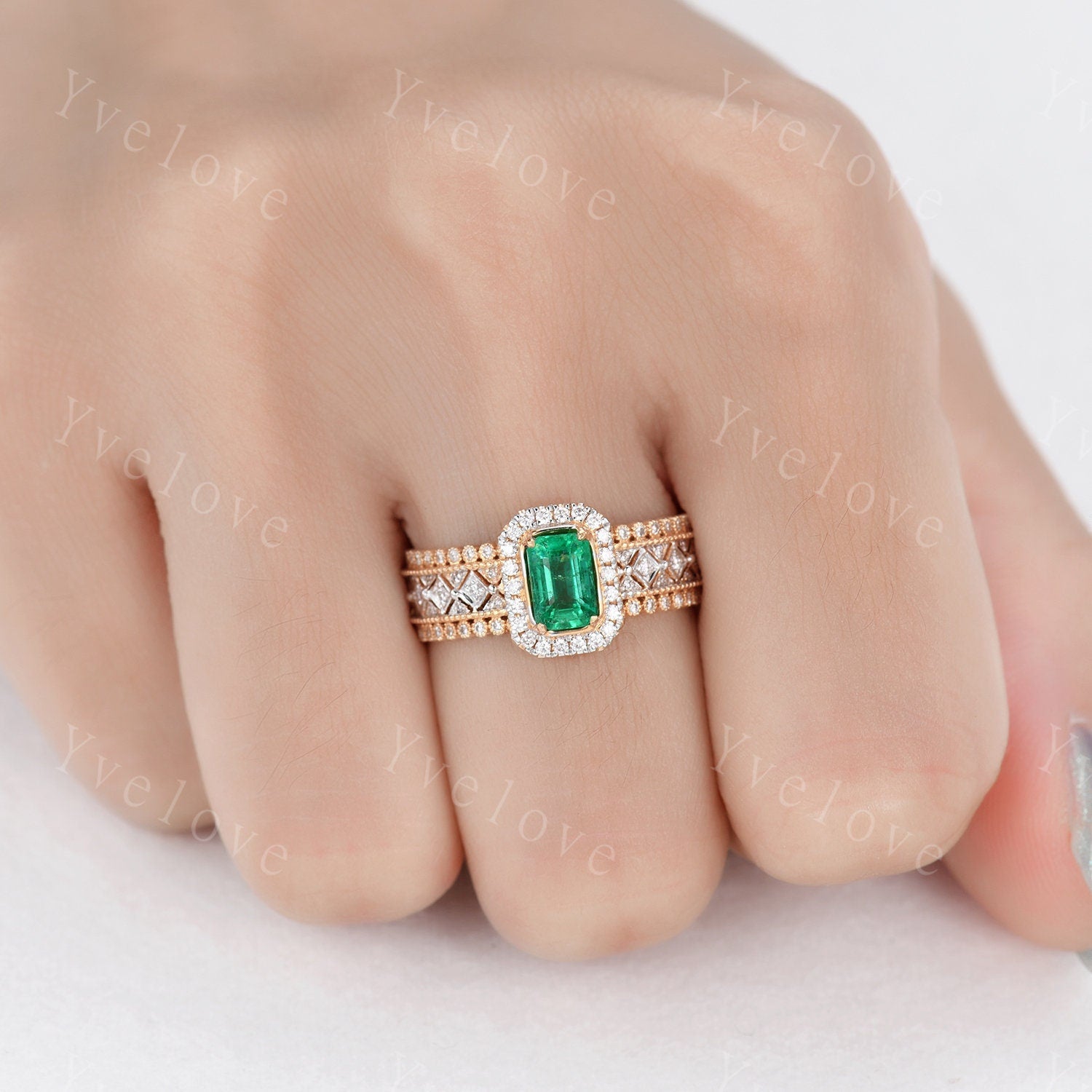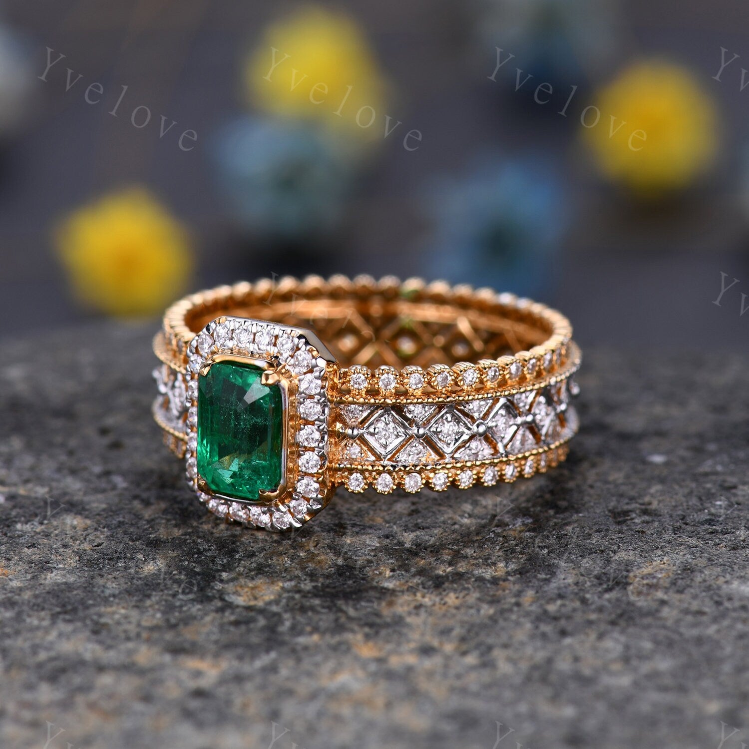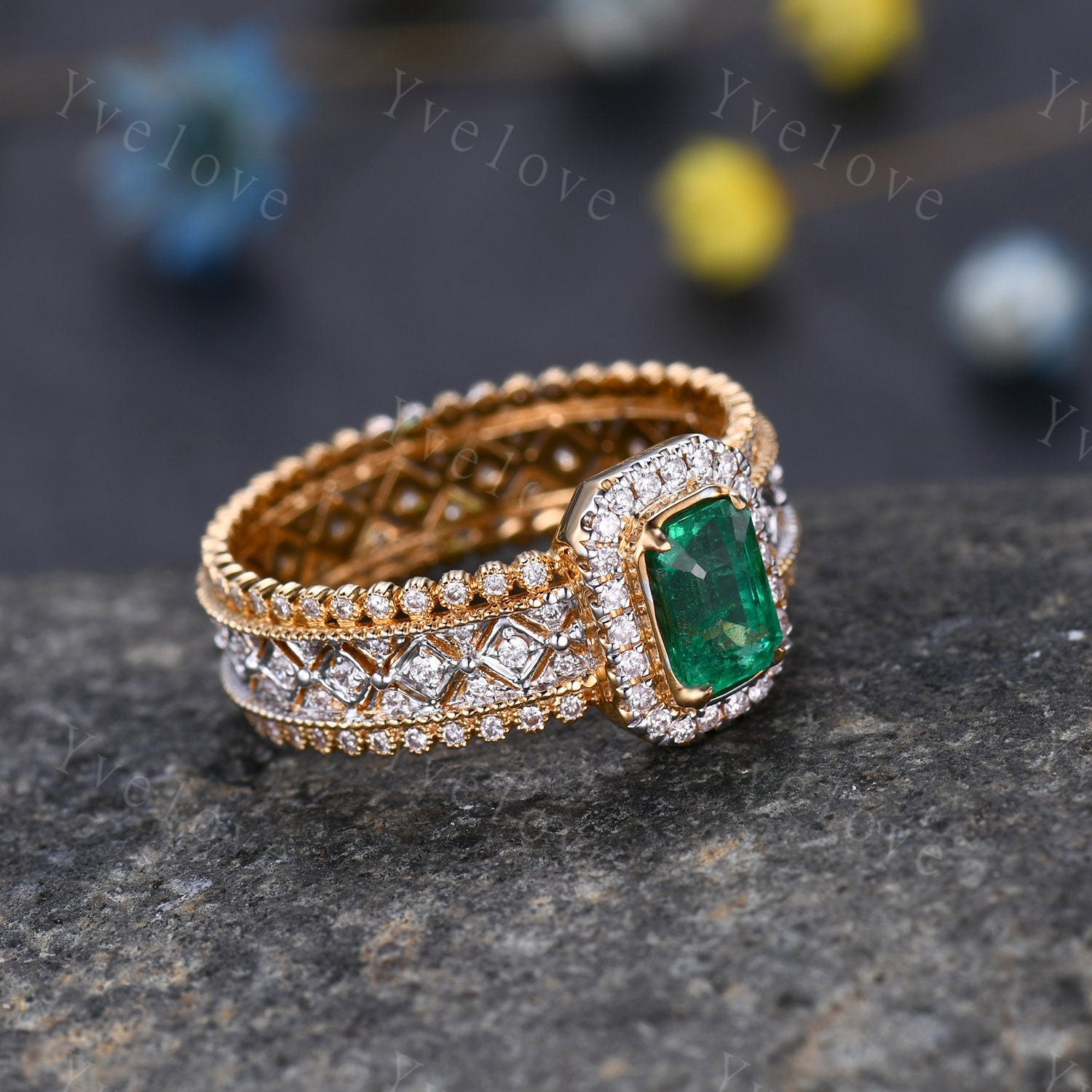0.7ct Natural Emerald Engagement Ring Diamond Wedding Band Emerald Gemstone Women Bridal Ring Statement Ring Anniversary Ring Christmas Gift
