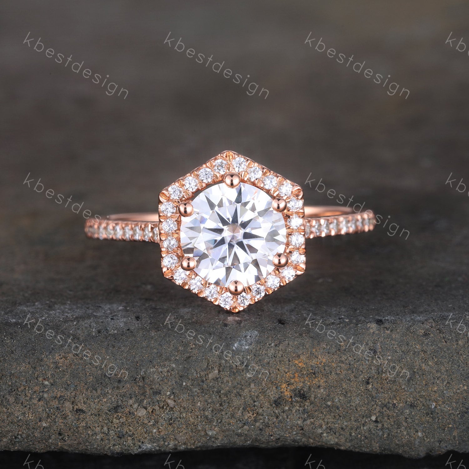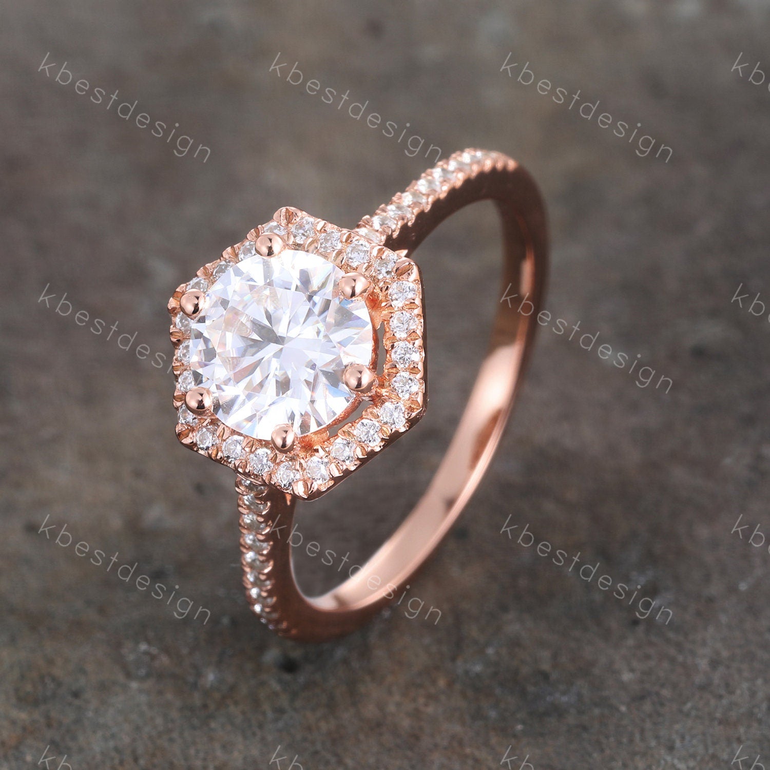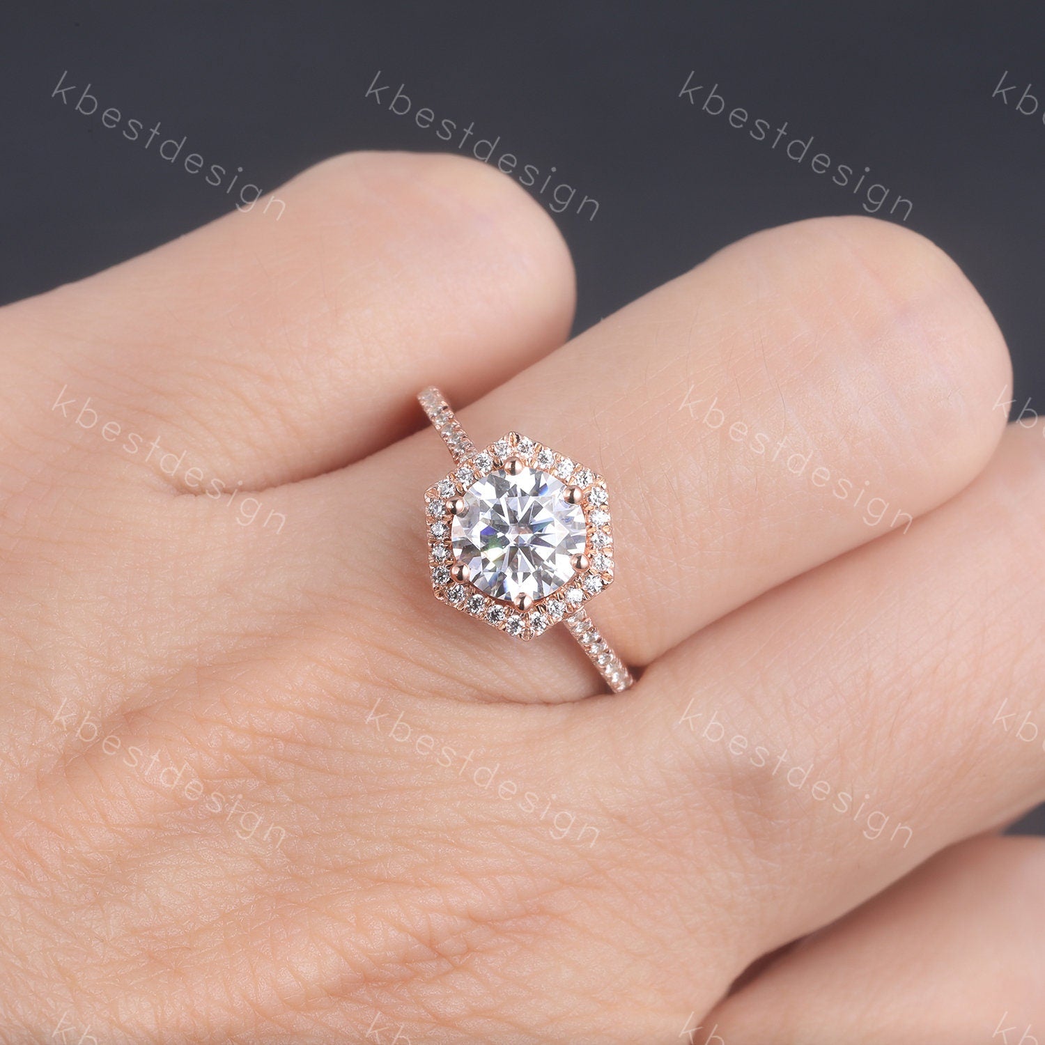 1.25 Carat Round Cut Simulated Diamond Engagement Ring Unique Hexagon Halo Wedding Ring CZ Engagement Ring Promise Ring Anniversary Ring