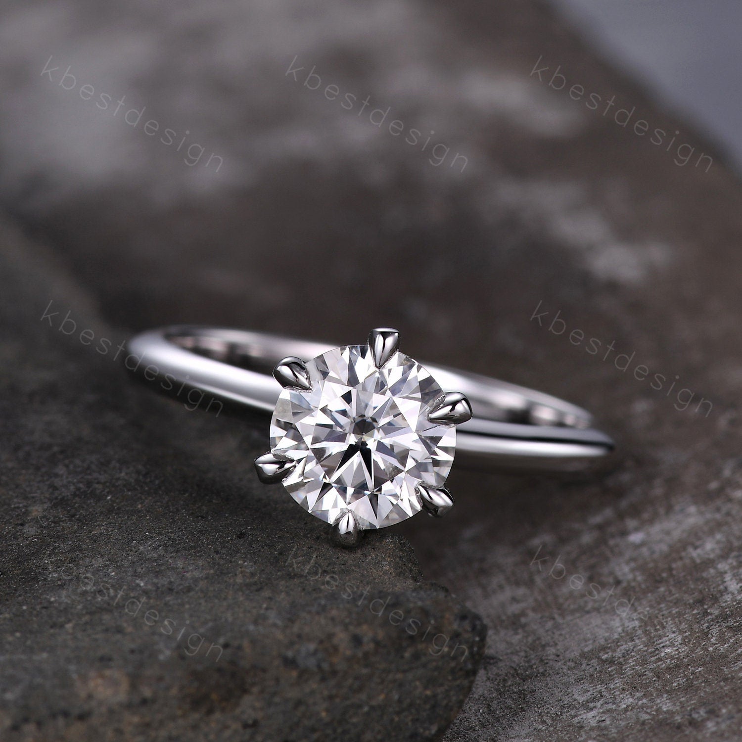 Delicate classic 6 prong Moissanite/CZ engagement ring. Perfect for birthday gift, anniversary gift, promise gift. Round cut moissanite engagement ring 1.2ct solitaire bridal ring 14k solid gold ring 6 prong engagement ring dainty Promise Anniversary ring