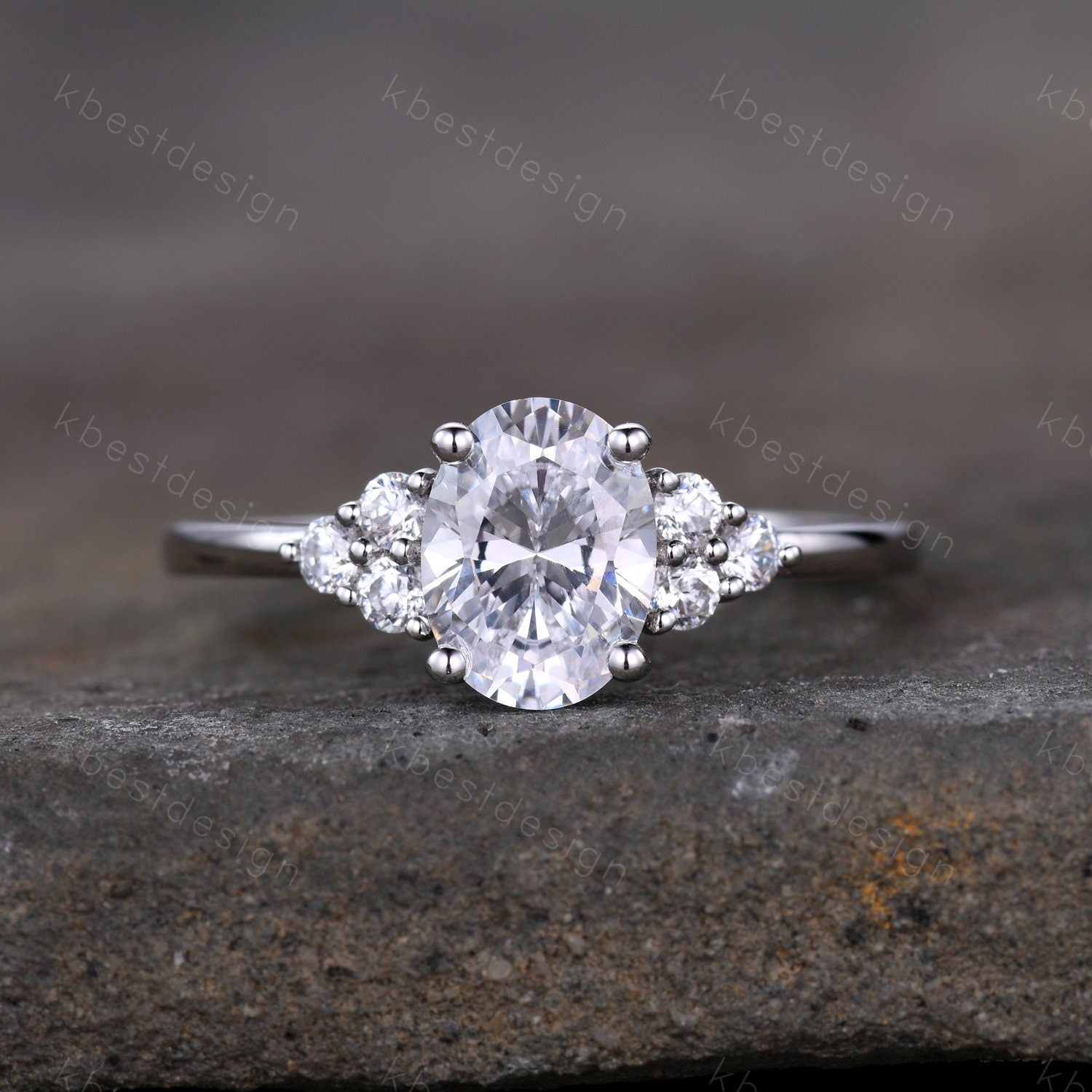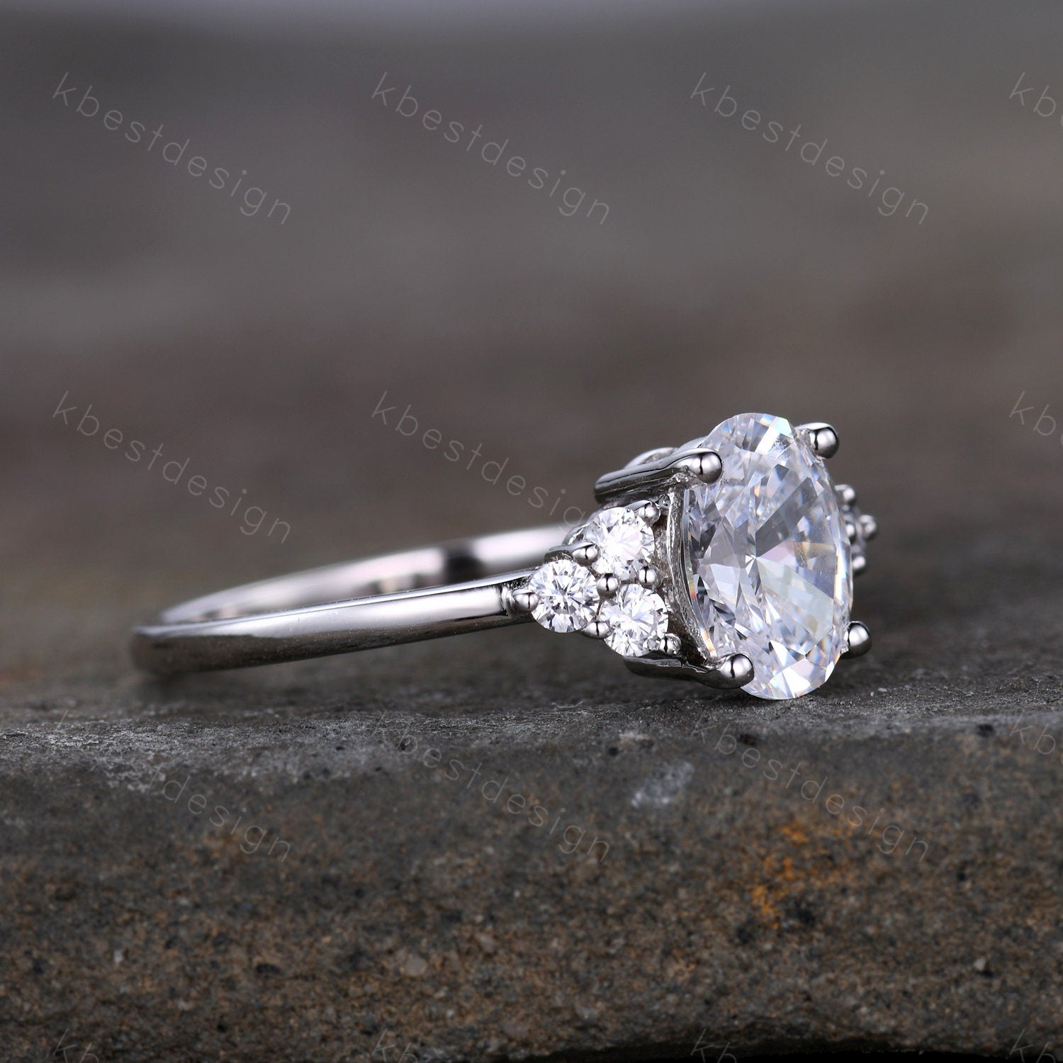 1.50 CT Oval Diamond Engagement Ring, Cluster Three Stone Anniversary Ring, 925 Sterling Silver Ring, Diamond Simulant, Anniversary Ring