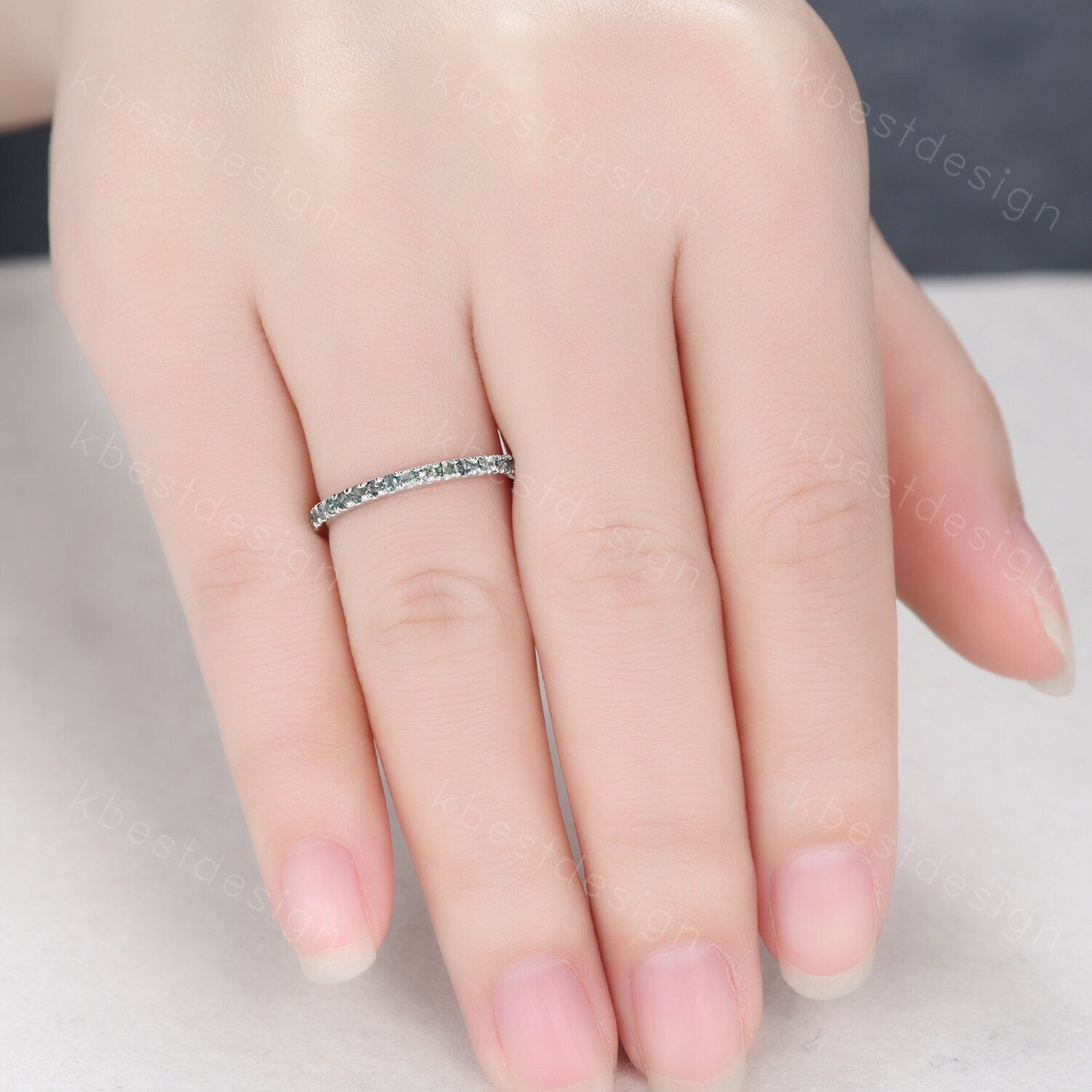 1.5mm moss agate wedding band sterling silver half eternity band green agate stacking matching band gemstone band promise anniversary ring