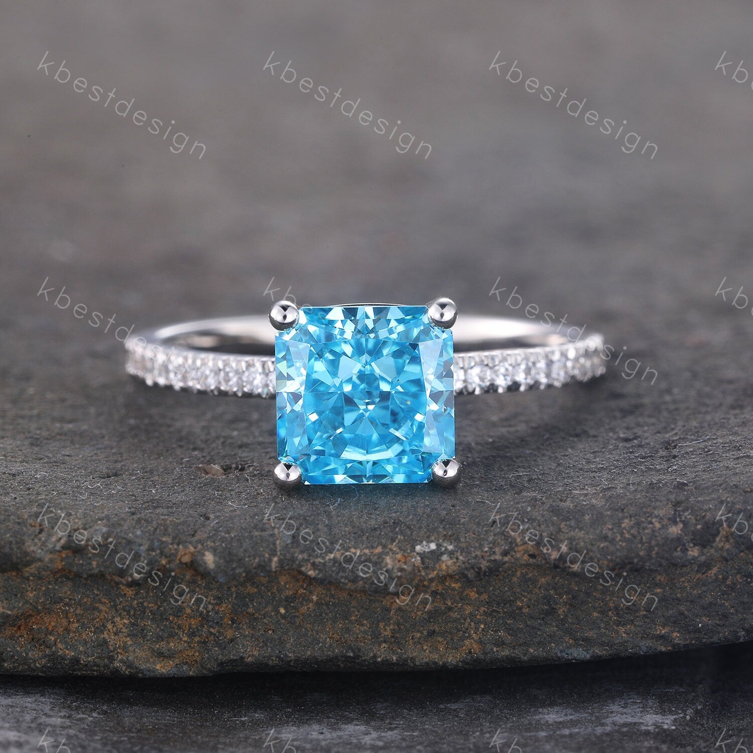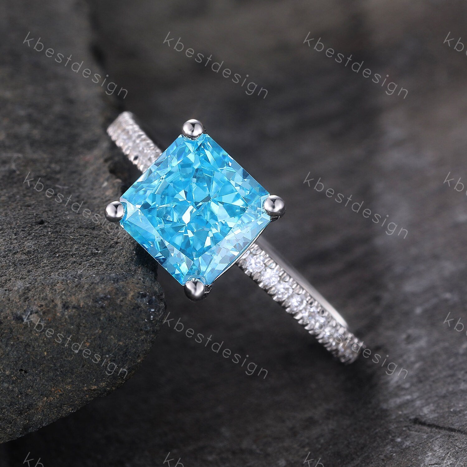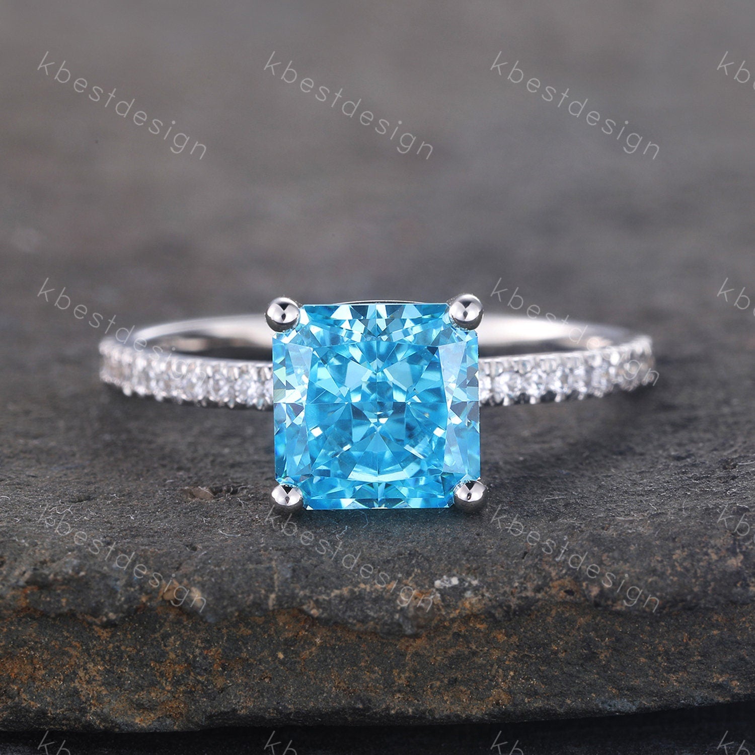Main Stone: 7mm emerald/square cut blue cz diamond.