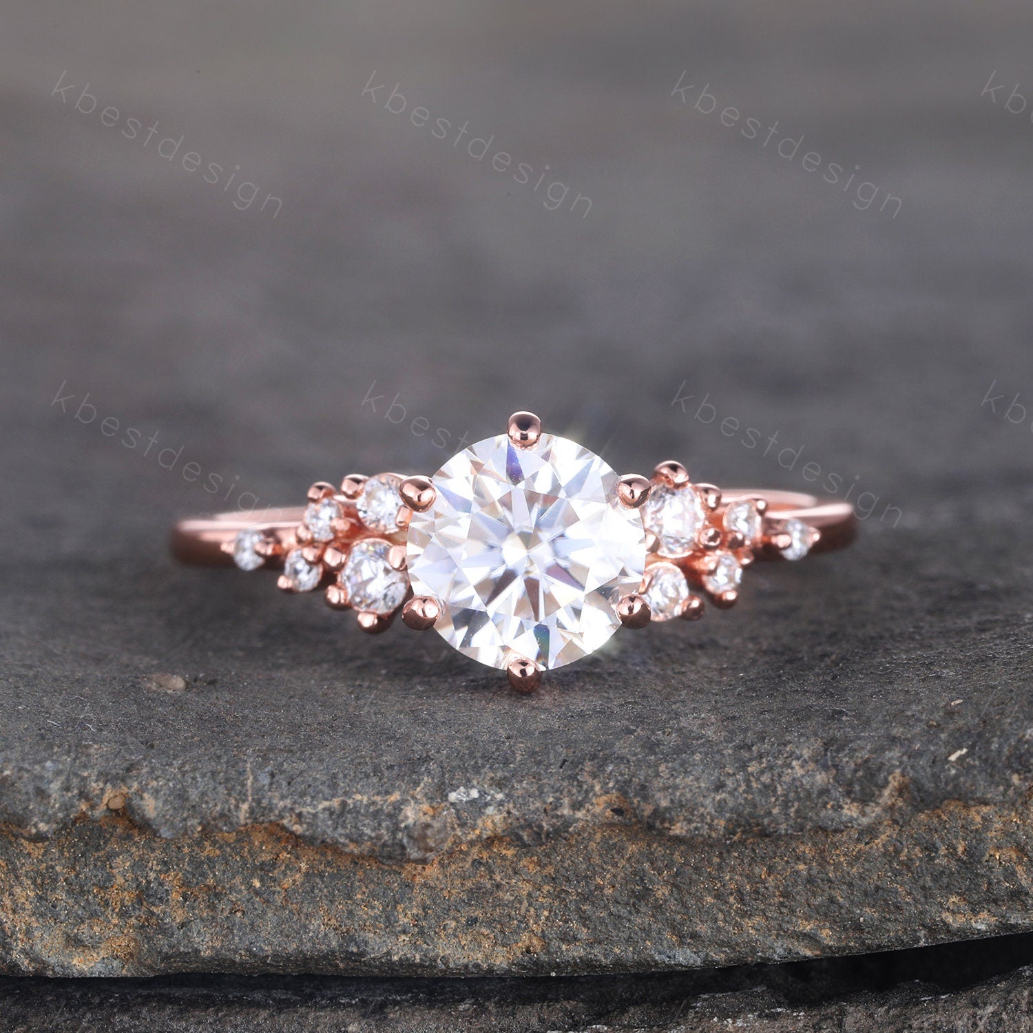 1 CT Brilliant Round Cut Engagement Ring, Unique Cluster Wedding Ring, Rose Gold CZ Engagement Ring, Promise Ring, Dainty Ring, Gift for Her
