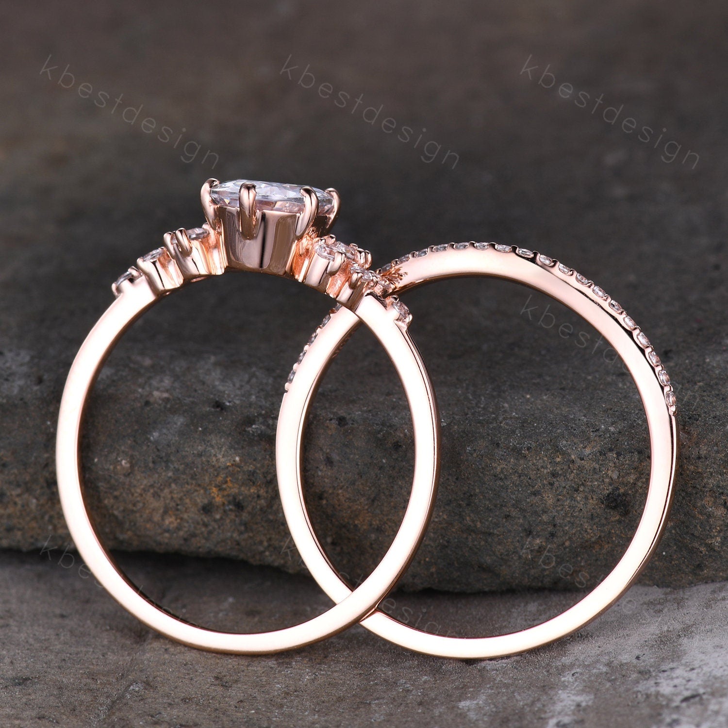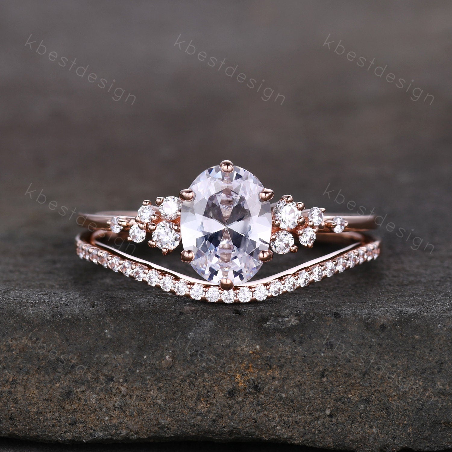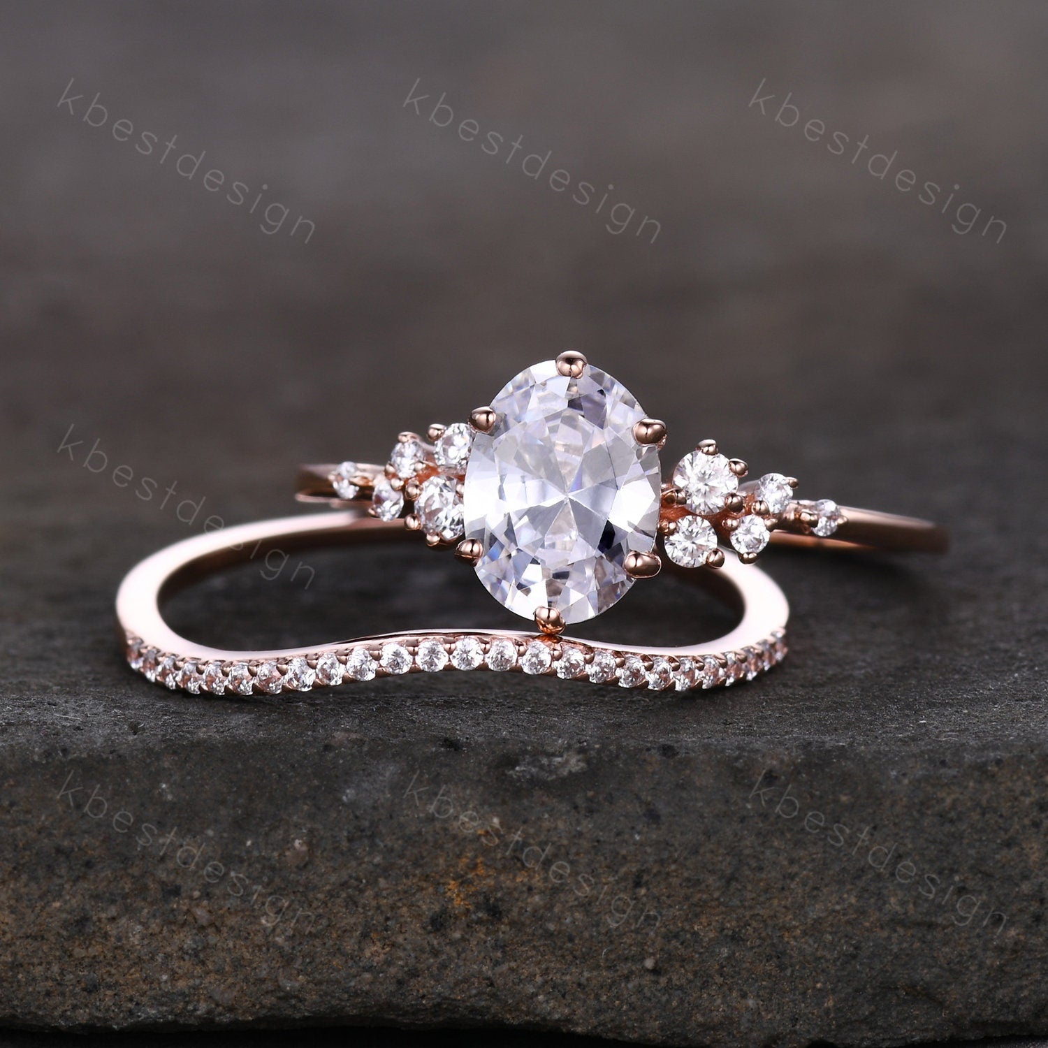 14K Rose Gold Rings/ 1.5CT Oval Simulated Diamond Wedding Ring/ Diamond Bridal Set Ring/ Anniversary Gift/ CZ Engagement Ring