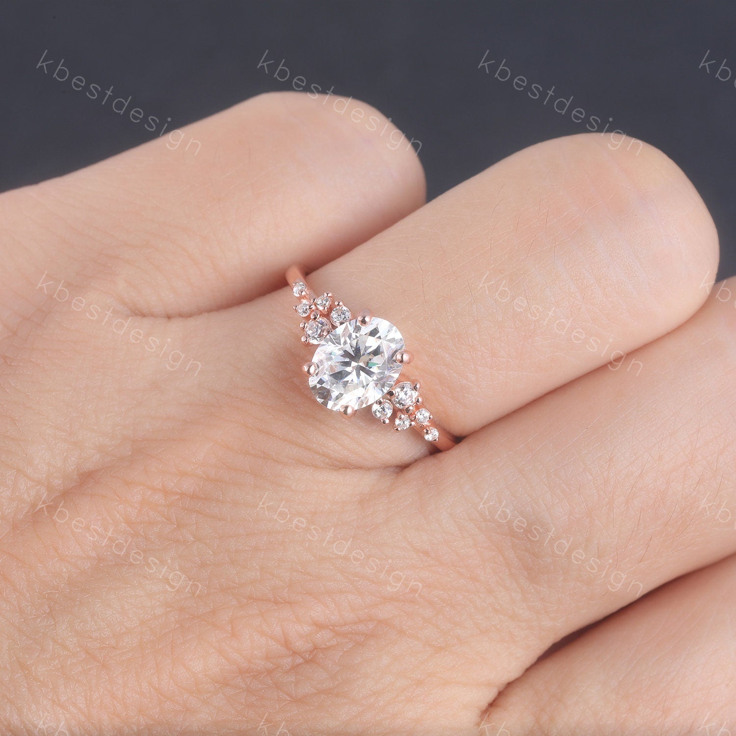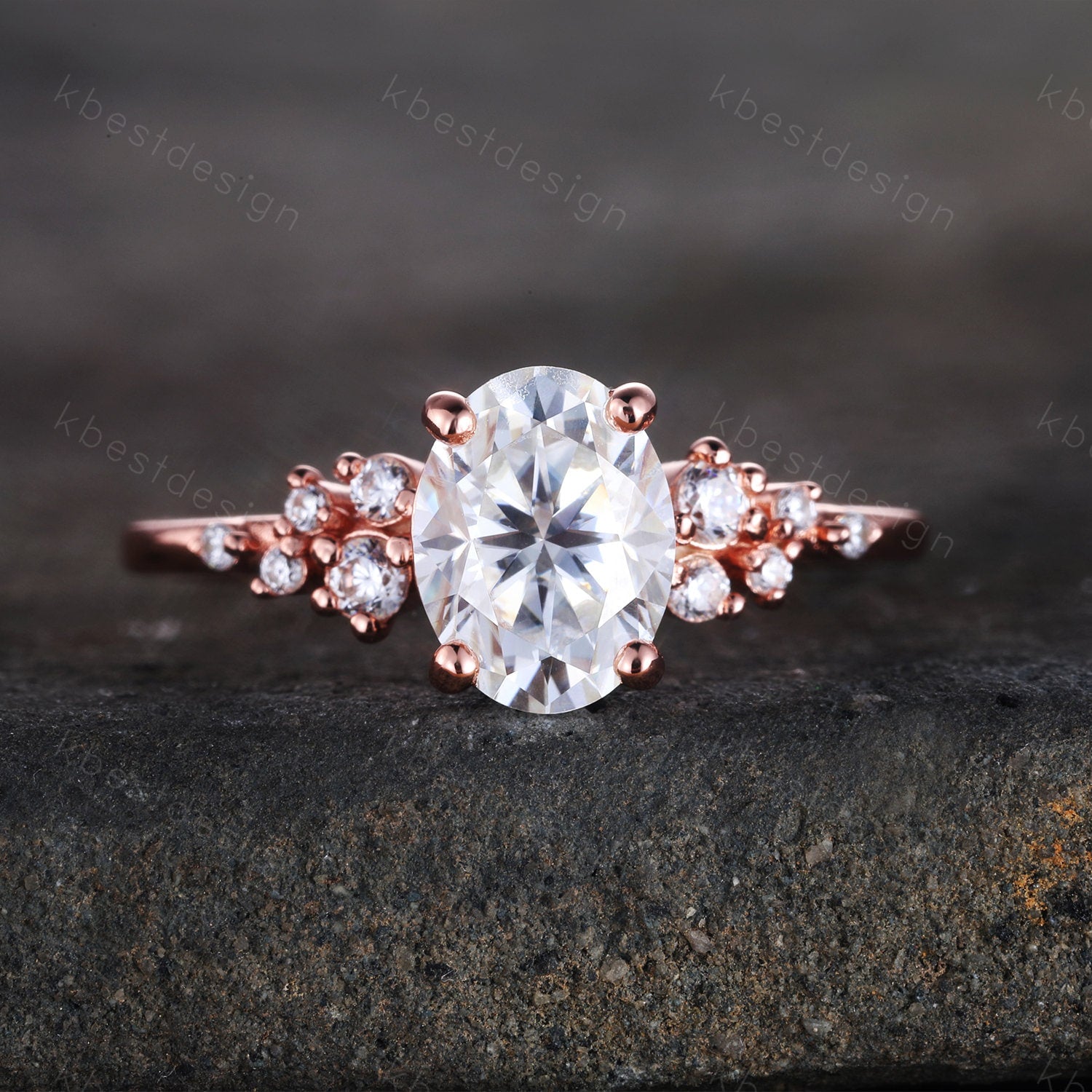 14K Solid Gold Ring/ 1.5CT Oval Simulated Diamond Wedding Ring/ Unique Cluster Rin/ Anniversary Ring/ Promise Ring/ Rose Gold