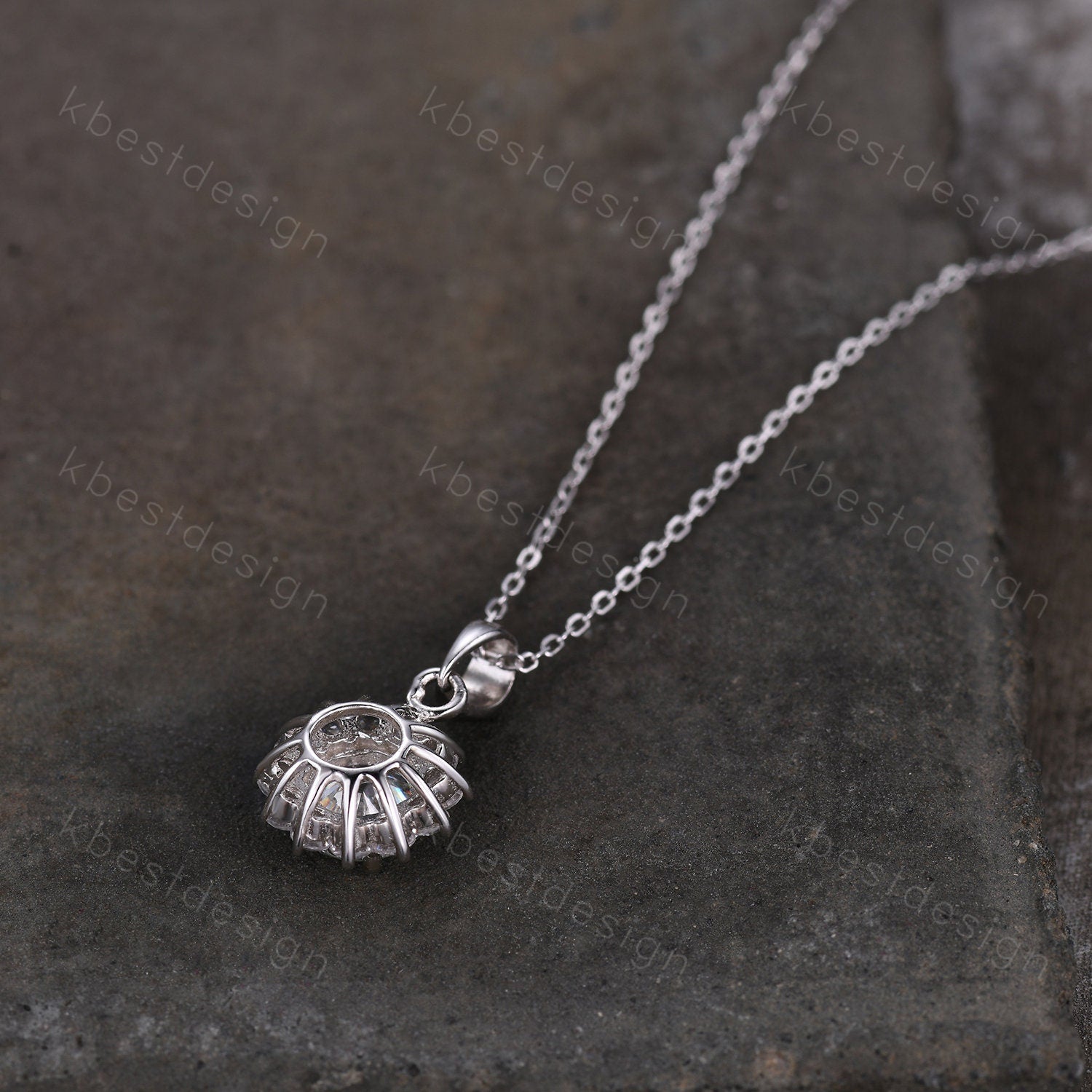 1CT Round cut Moissanite necklace sterling silver vintage unique halo sunflower moissanite pendant necklace women anniversary bridal gift