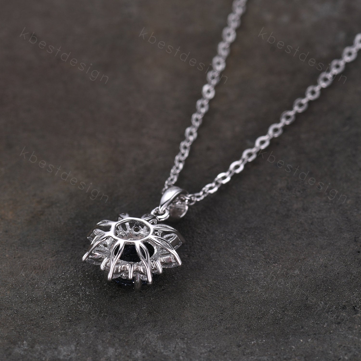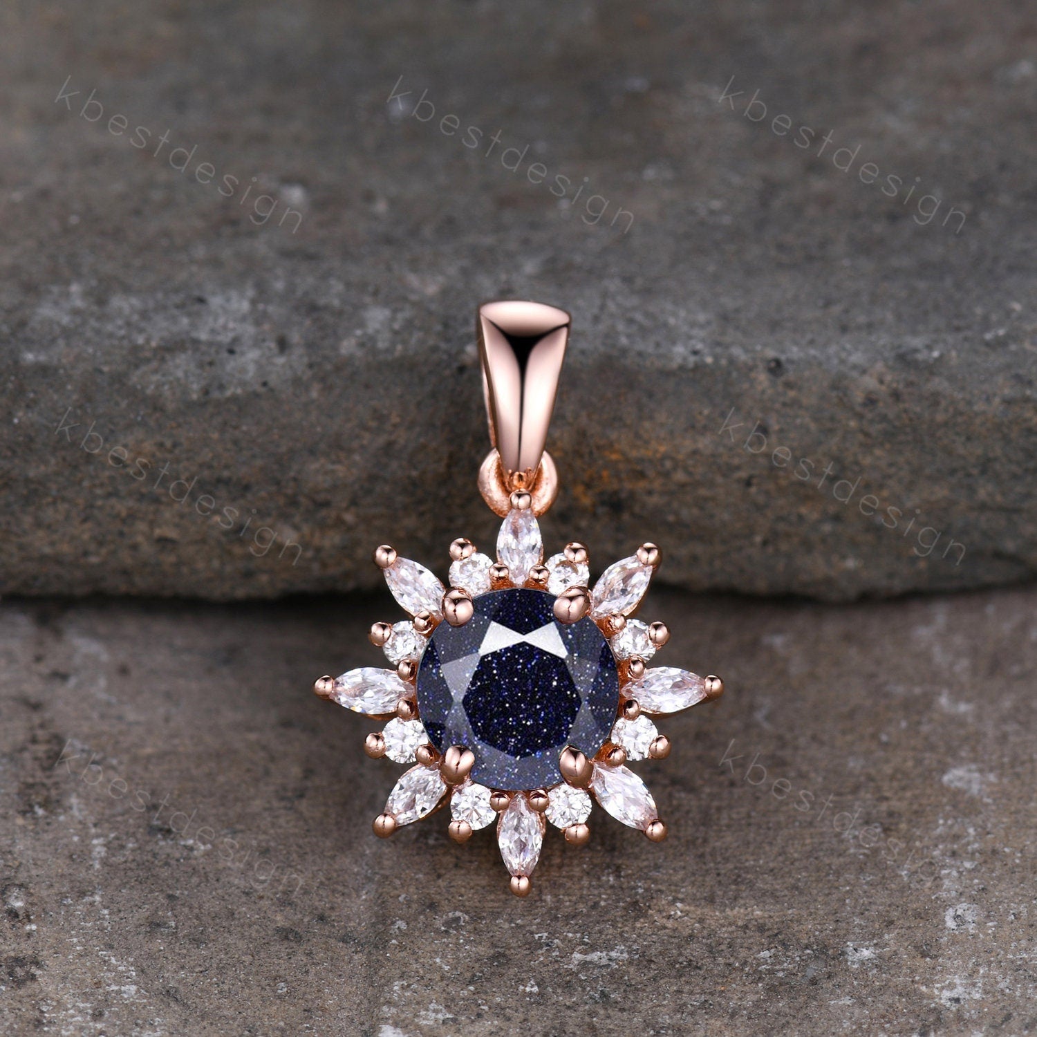 1CT Round Galaxy Blue Sandstone Necklace Vintage Art Deco Necklace for Women Unique Marquise cut Moissanite Halo Pendant Anniversary Gift