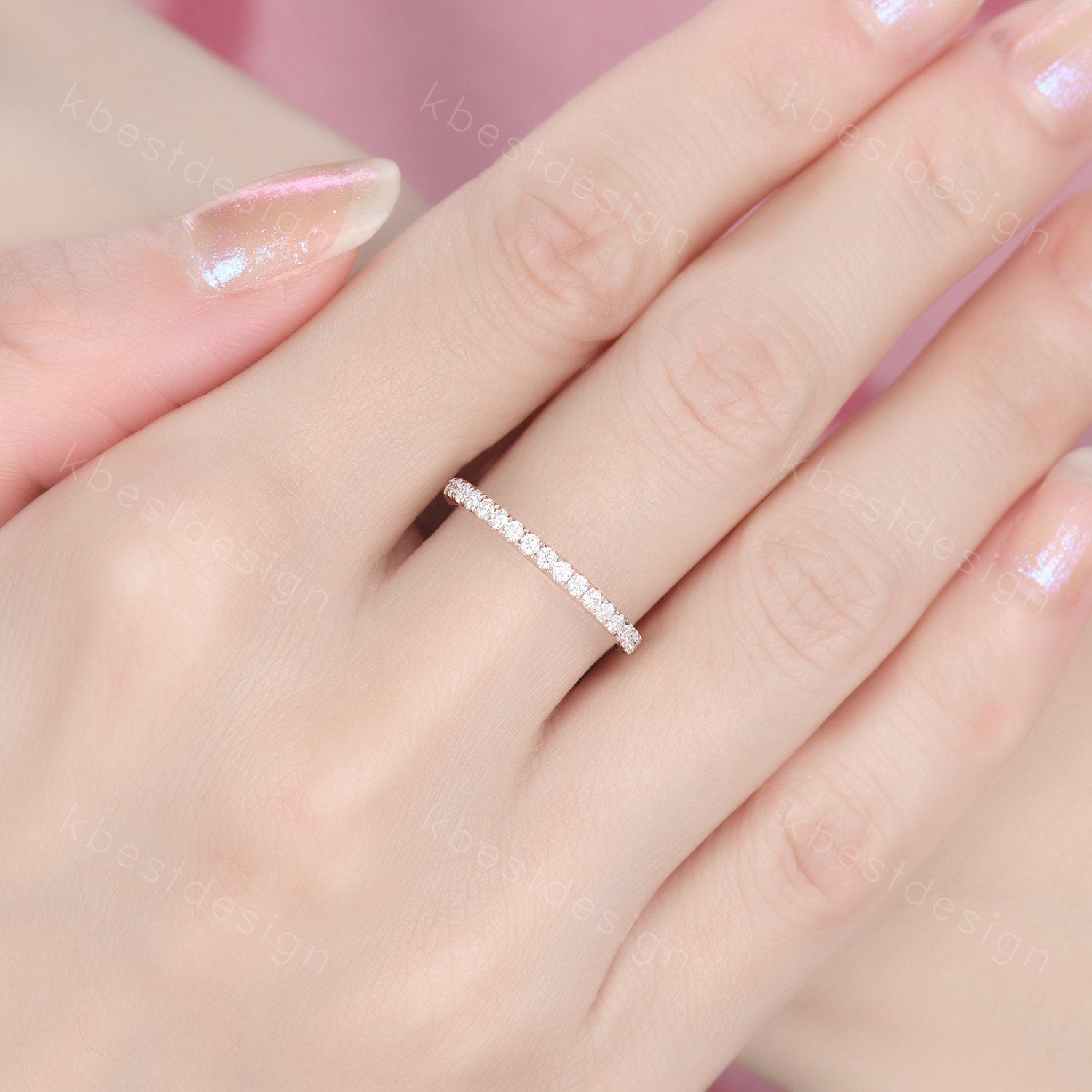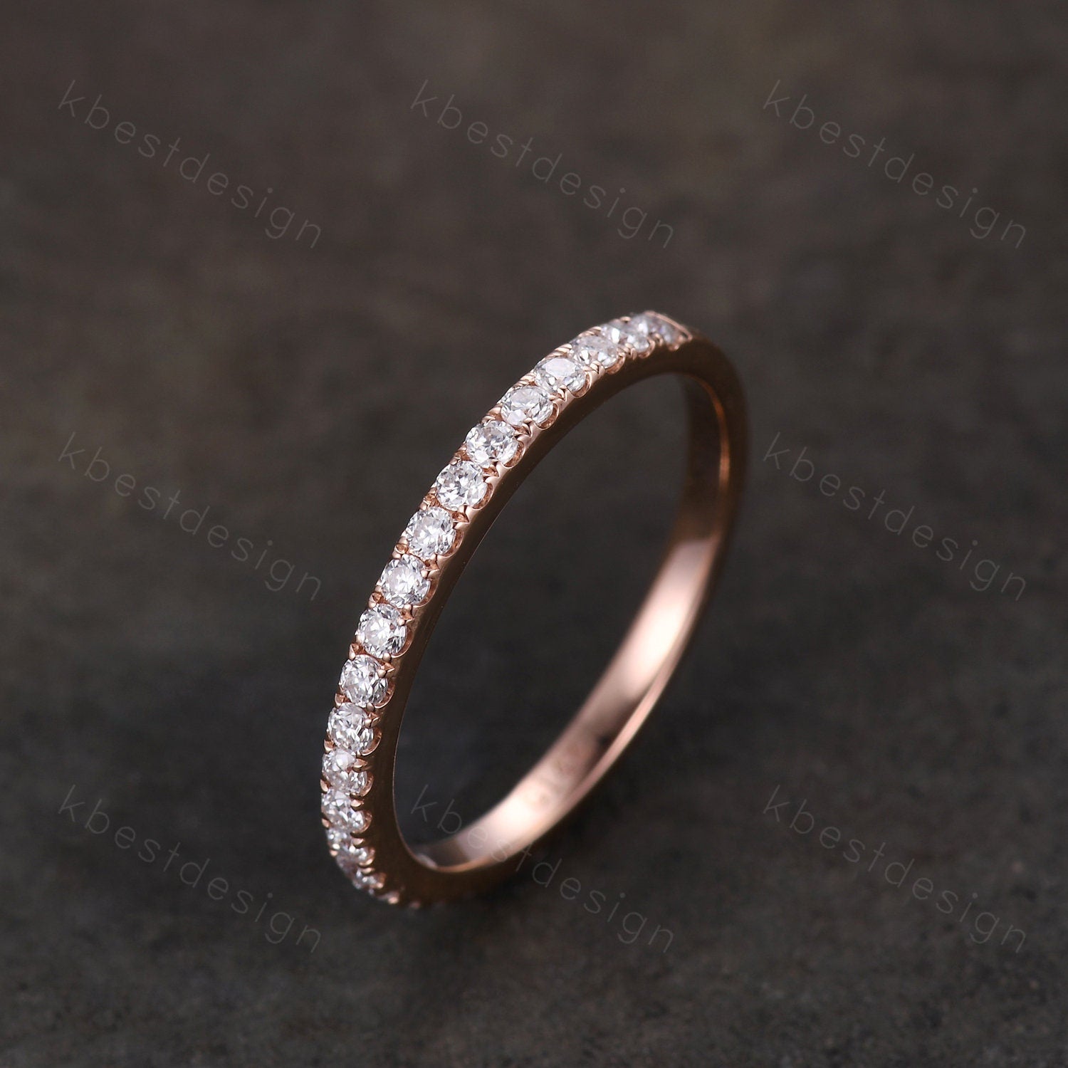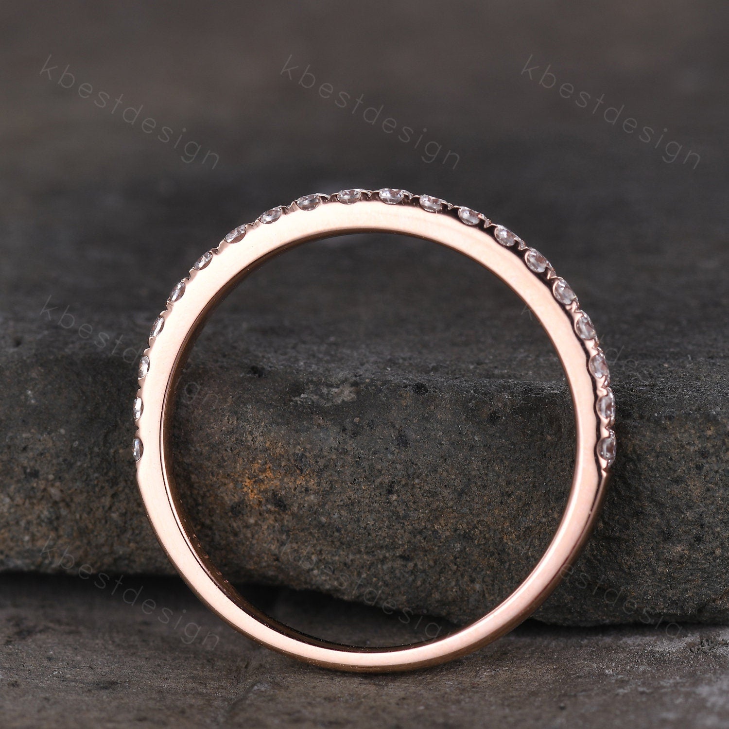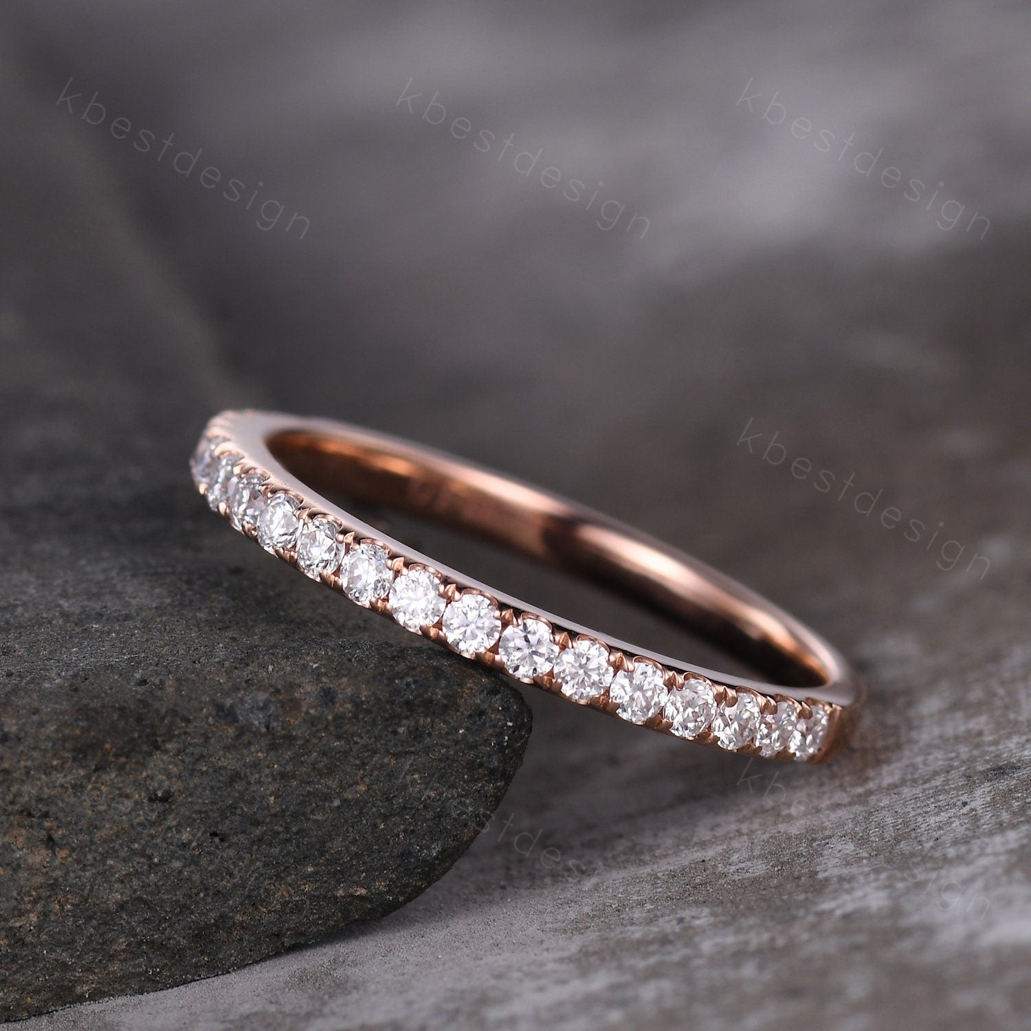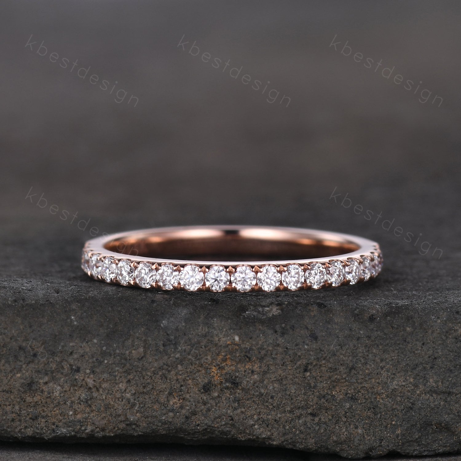 2mm Moissanite Wedding Band Rose Gold Half Eternity Stacking Band Colorless Moissanite Ring Women Matching Band Promise Anniversary Ring