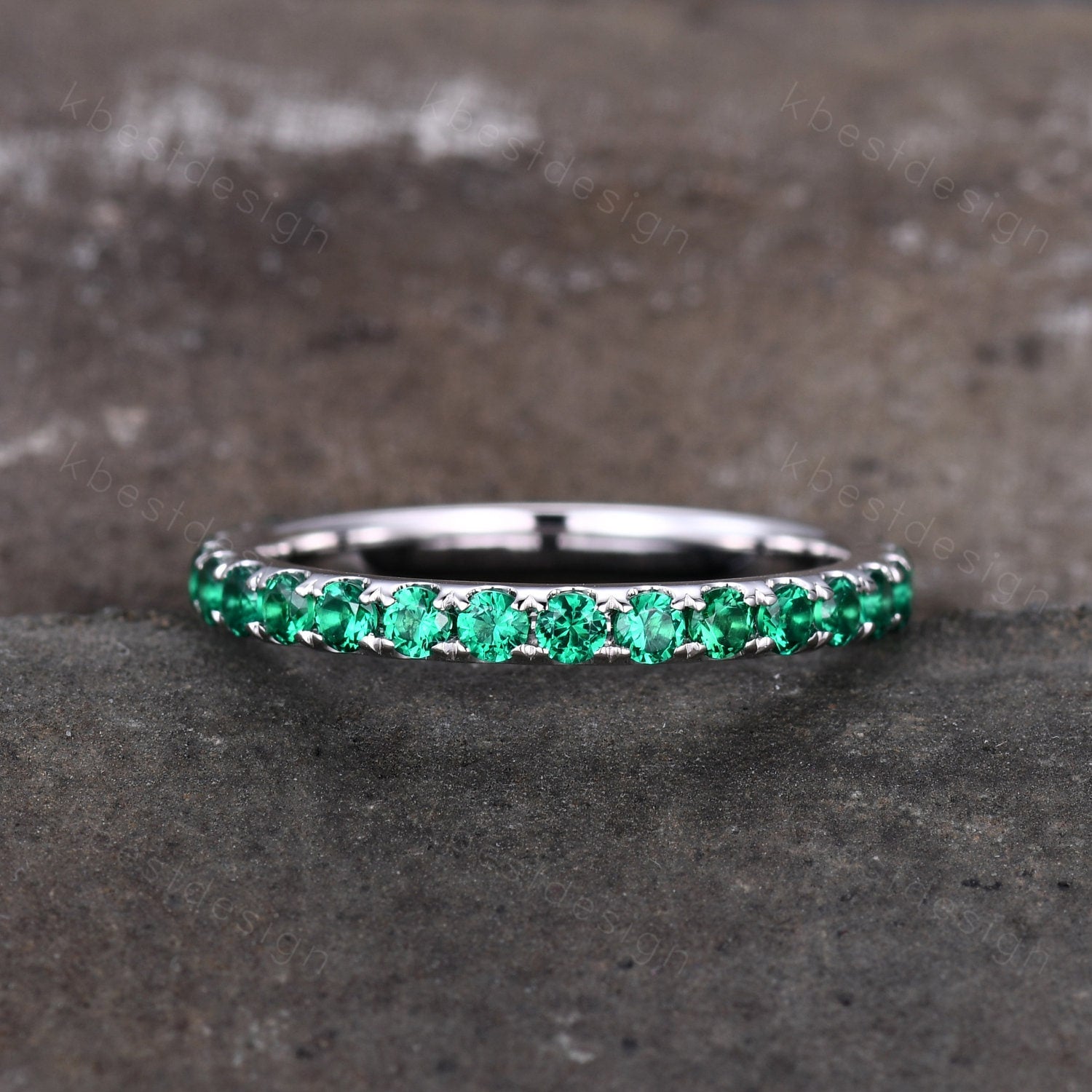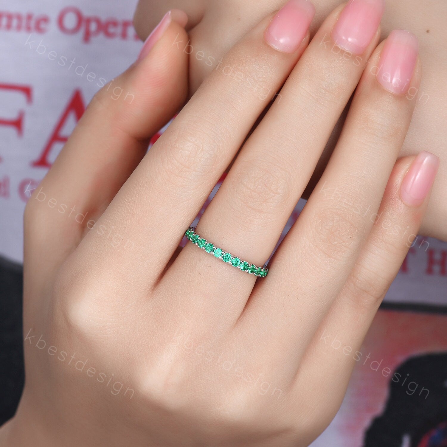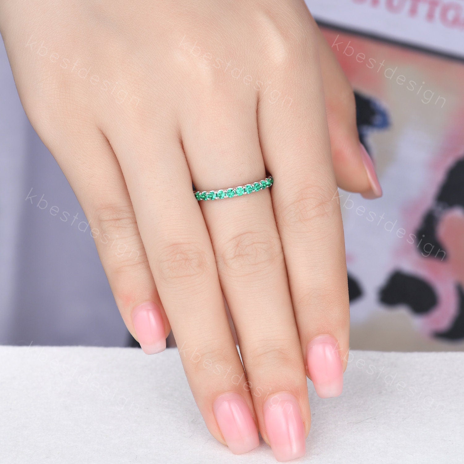 2mm Round Cut Emerald Wedding Band Eternity Band Pave Stackable Band Minimalist Emerald Band May Birthstone Ring Anniversary Gift