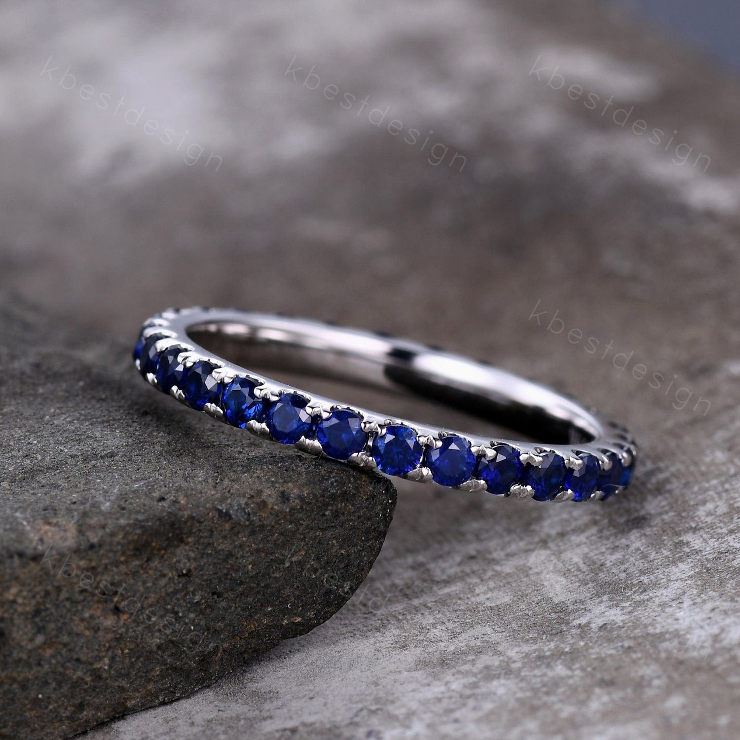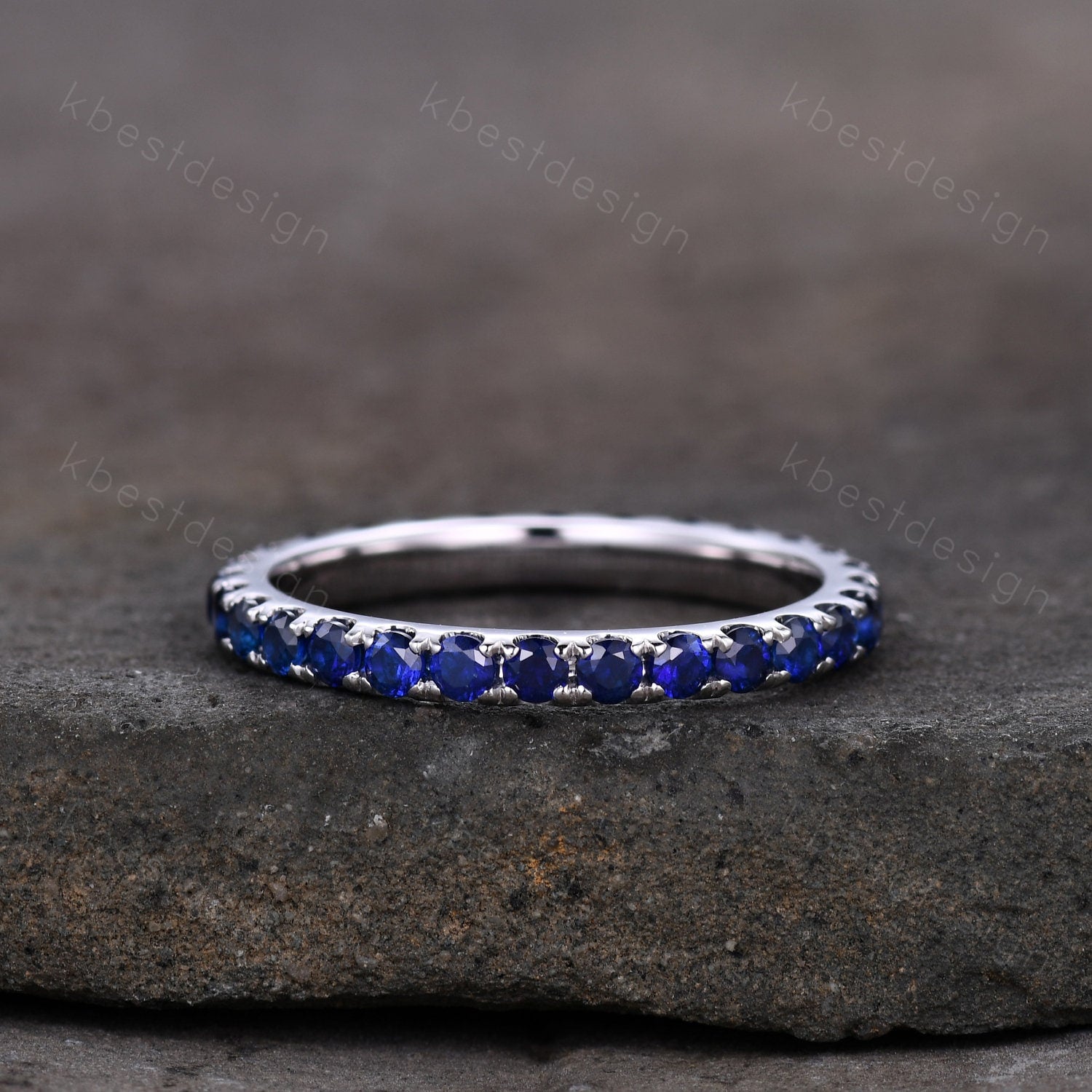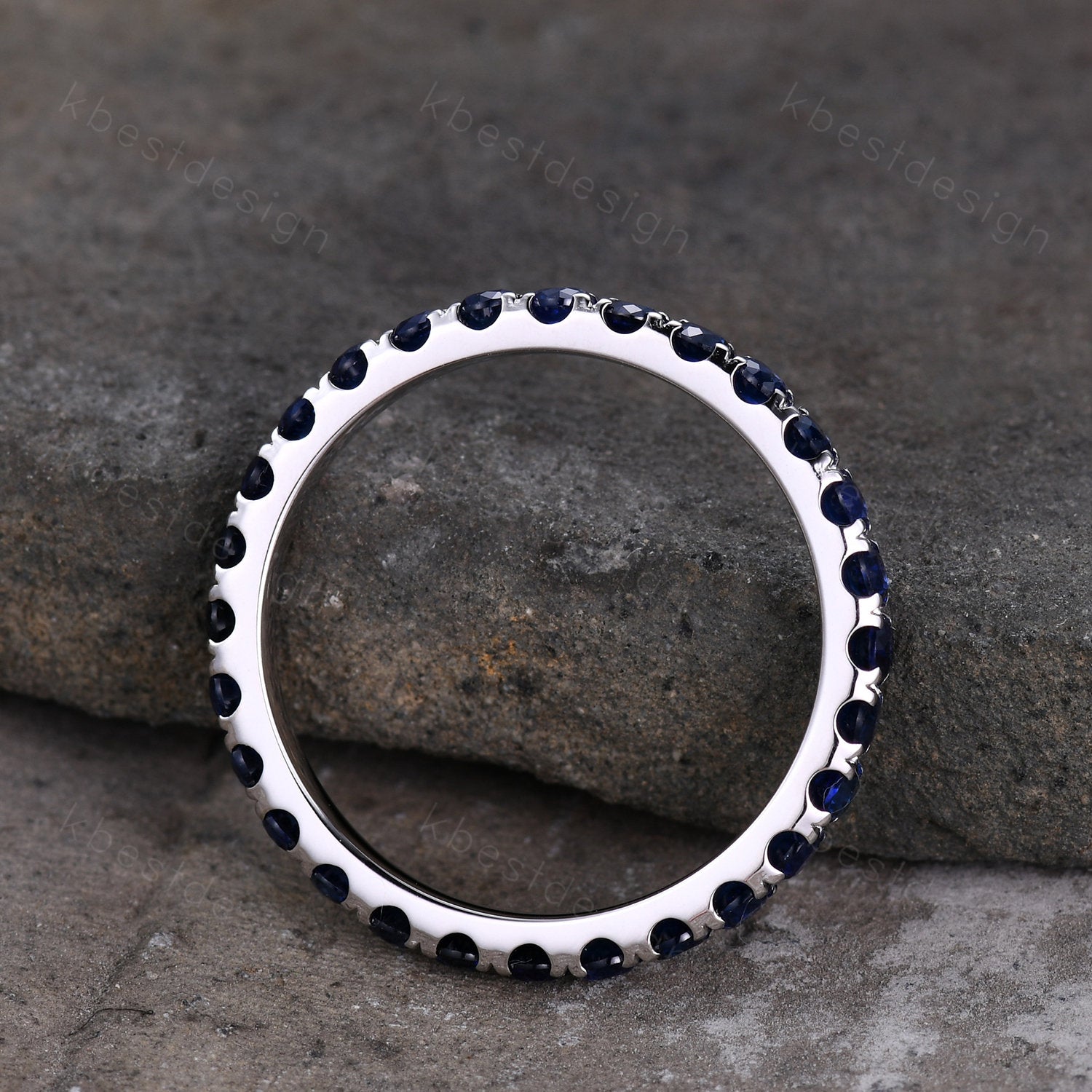2mm Sapphire Eternity Band 925 Sterling Silver Blue Sapphire Wedding Band September Birthstone Ring Pave Stacking Matching Band Gift for Her