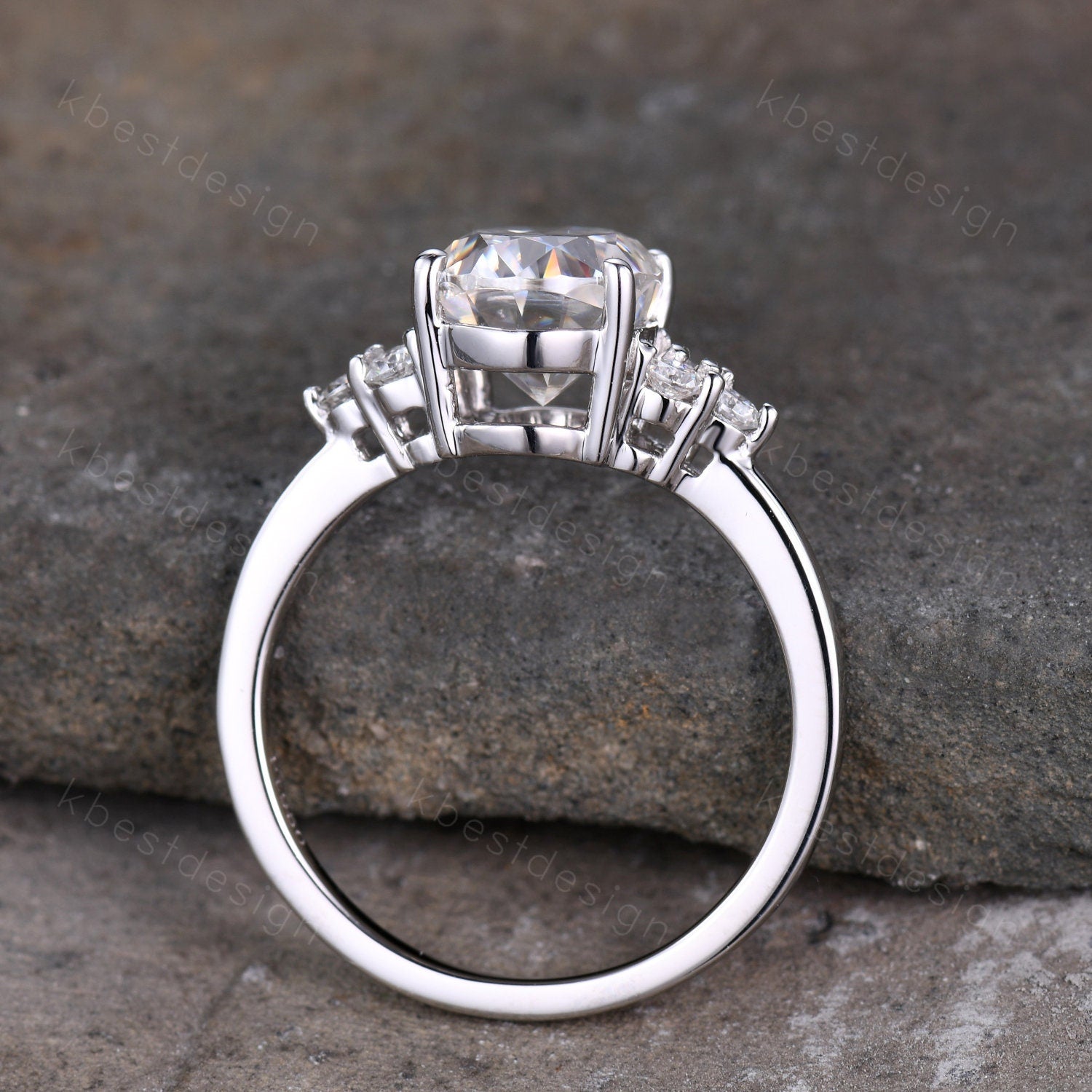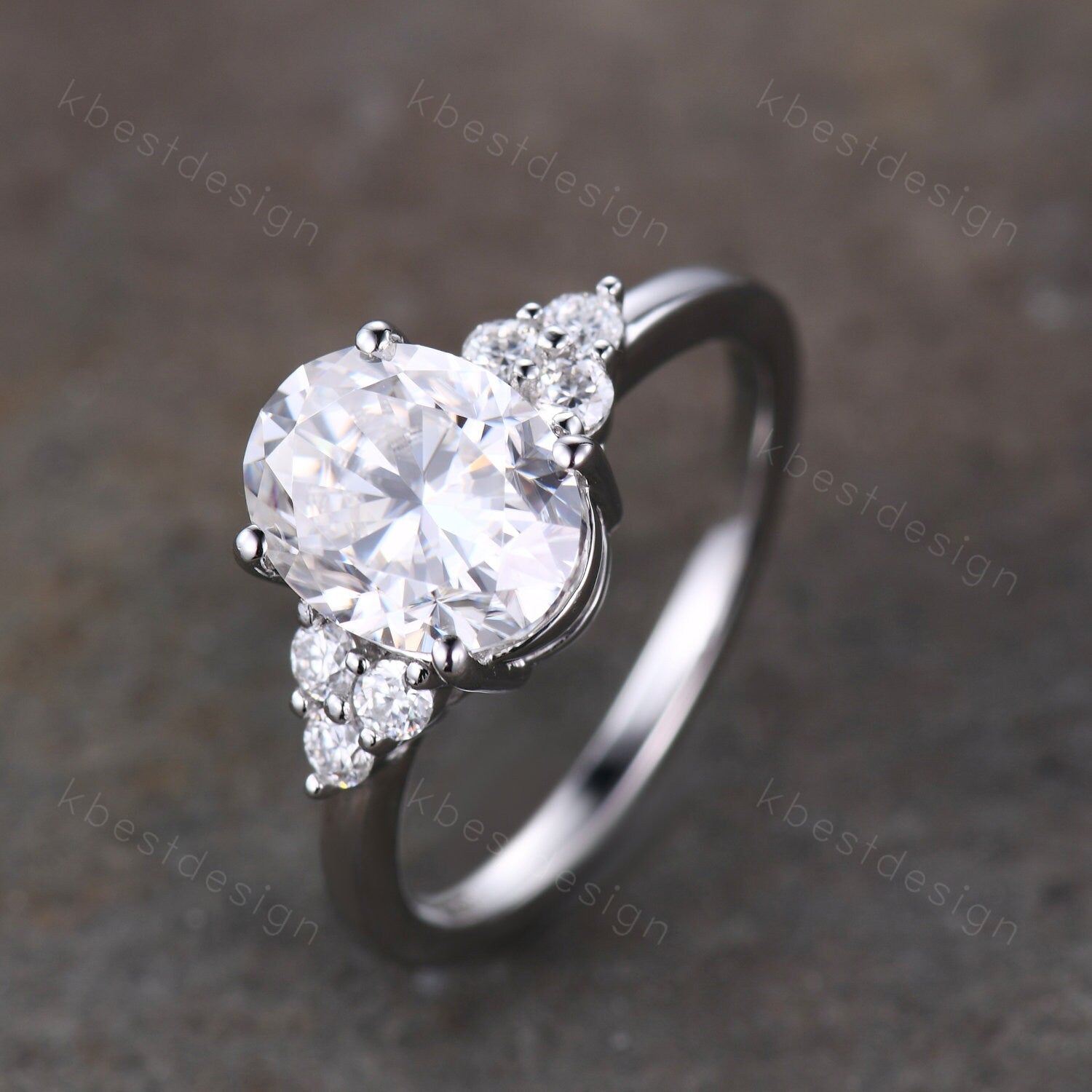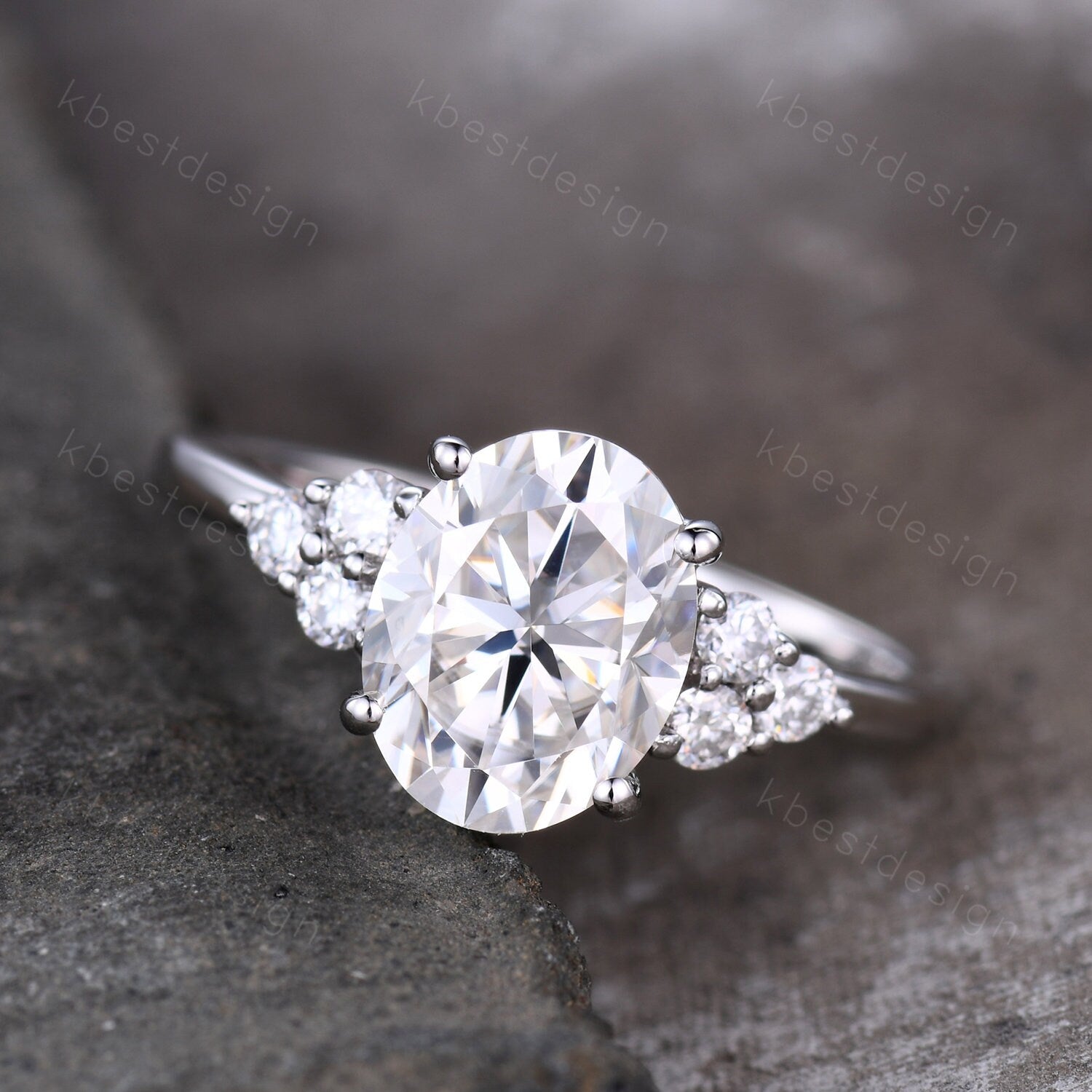 3.00cts Moissanite Oval Engagement Ring, Oval 10x8mm Moissanite Wedding Ring, Unique Cluster Bridal Ring, White Gold Moissanite Ring