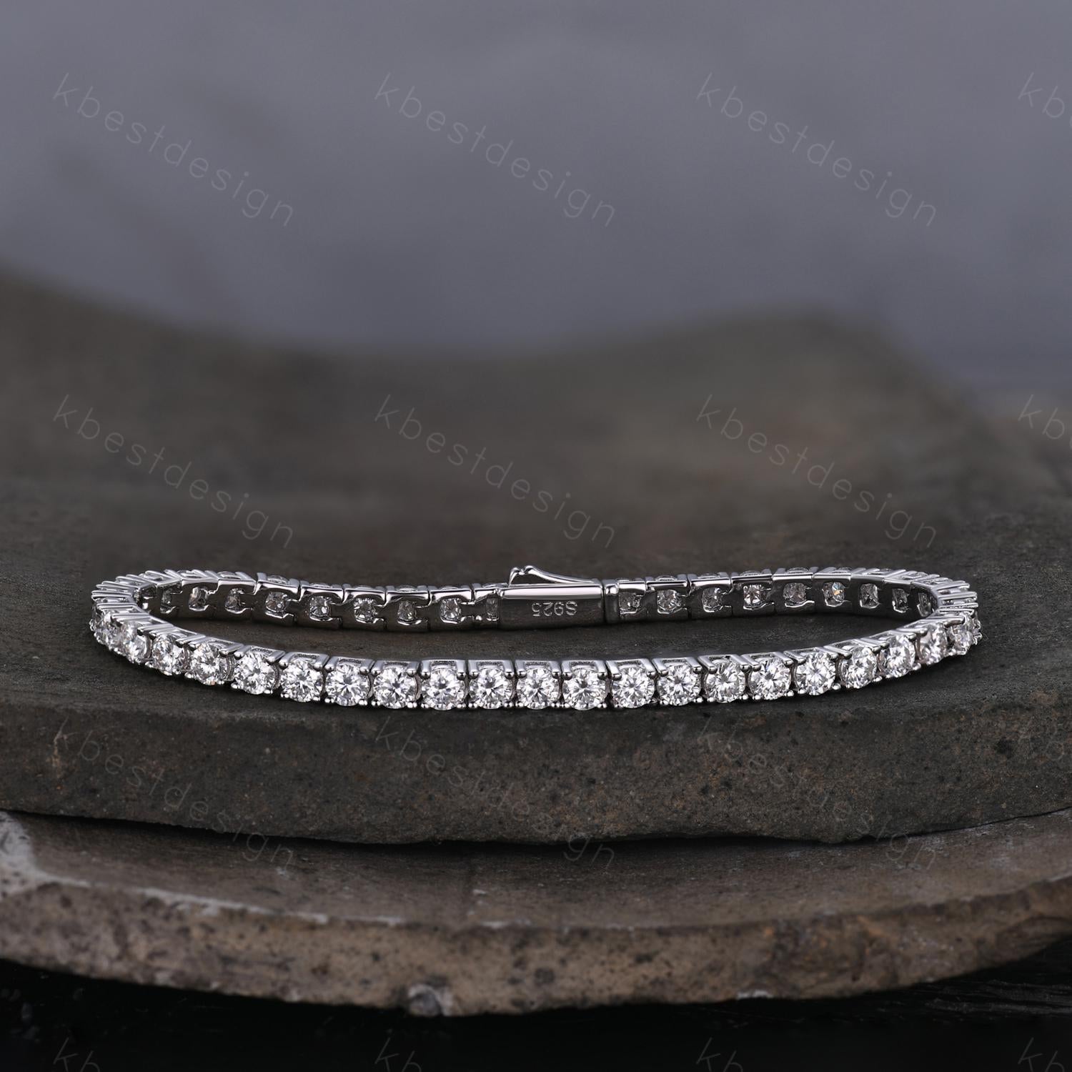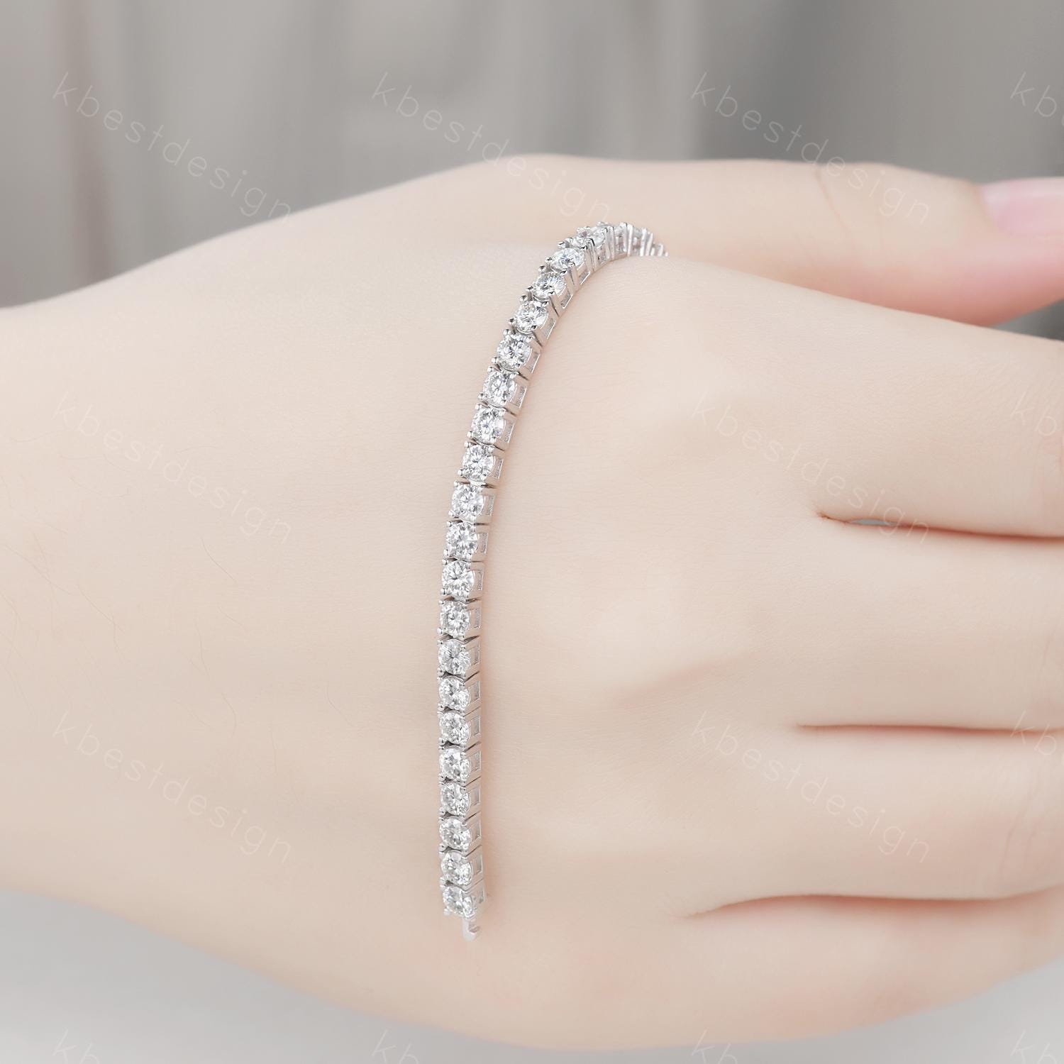 3mm Moissanite Tennis Bracelet, 6.00TCW Round Cut Bracelet for Women, Wedding Jewelry, Dainty Silver Bracelet, Sparkling Moissanite Chain