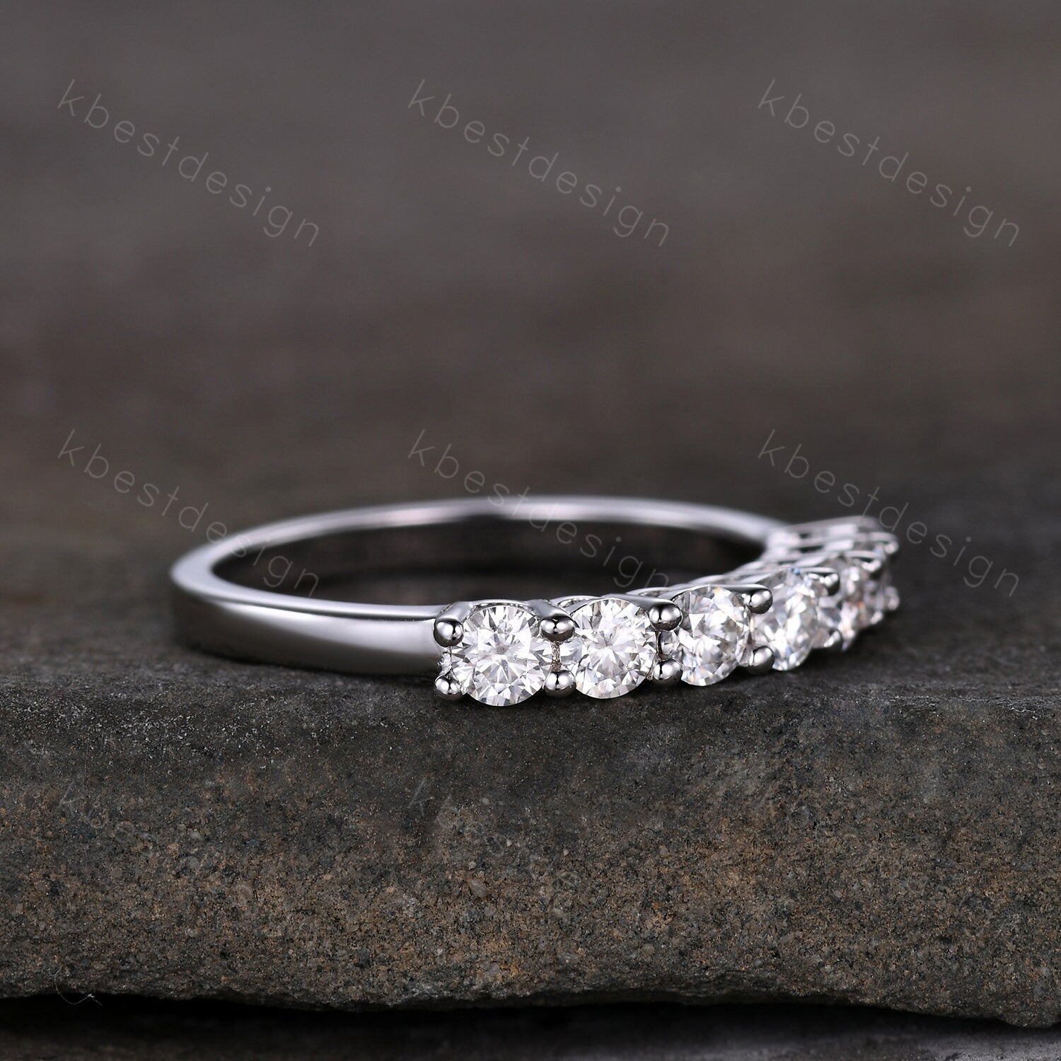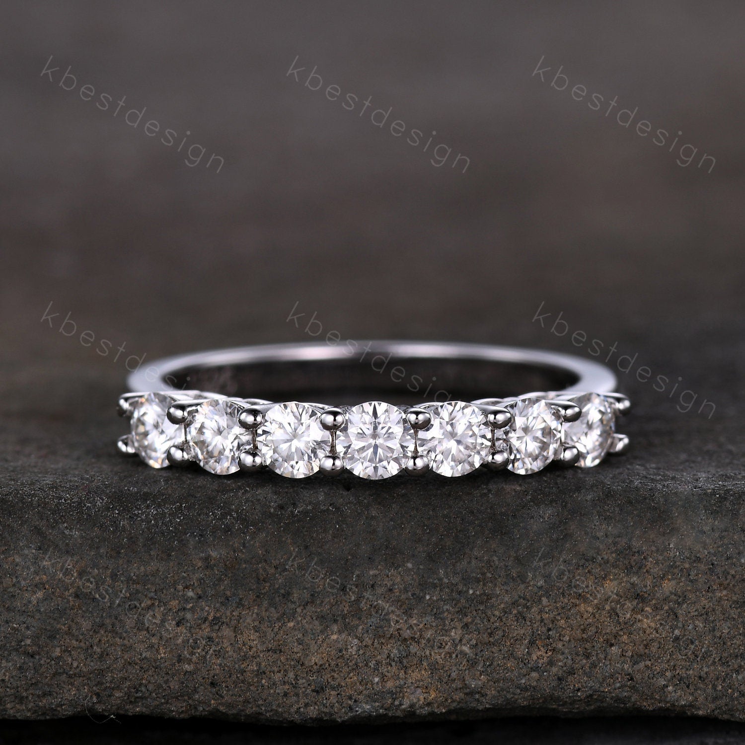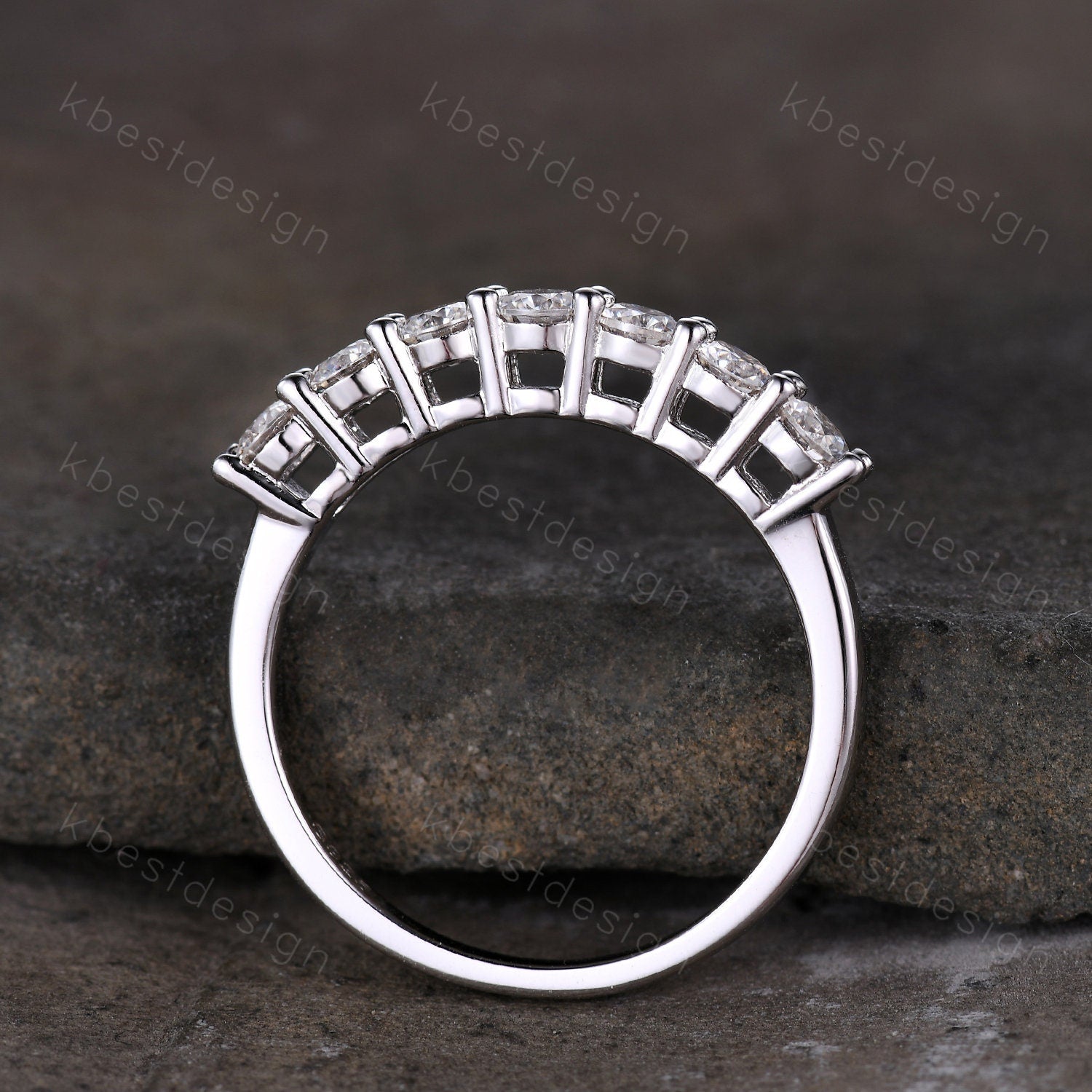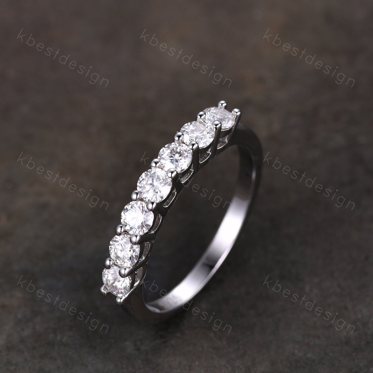 This is a Unique Moissanite wedding band women Round cut 7 stone ring Silver wedding band vintage Stacking Matching bridal ring promise ring.