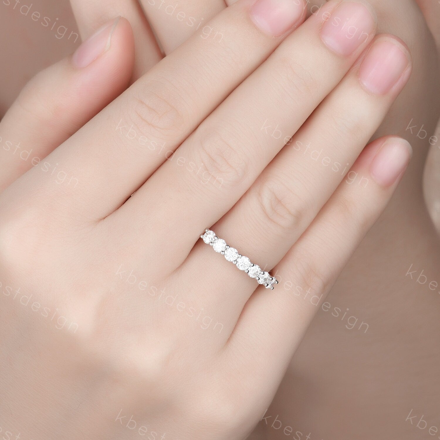 3mm Moissanite wedding band women Round cut 7 stone ring Unique Silver wedding band vintage Stacking Matching bridal ring promise ring