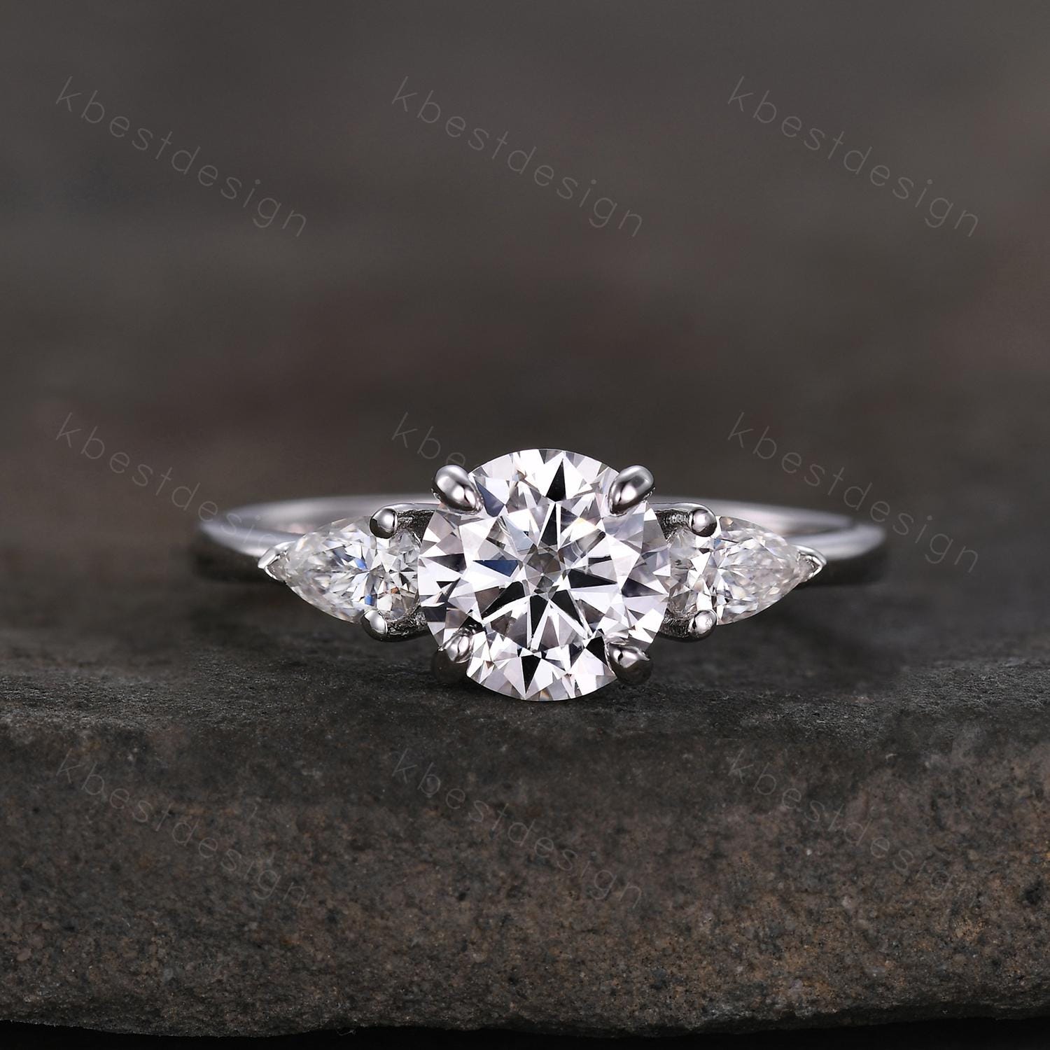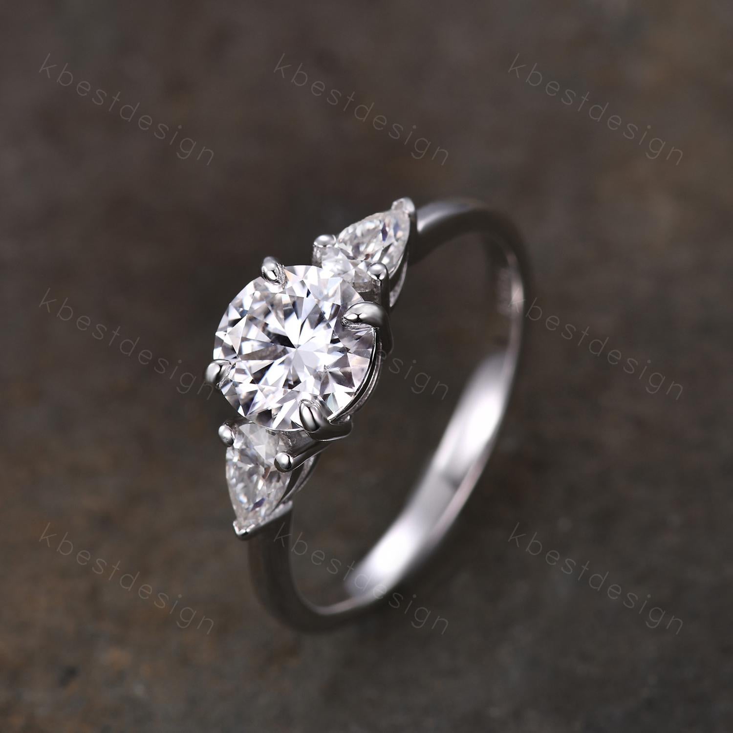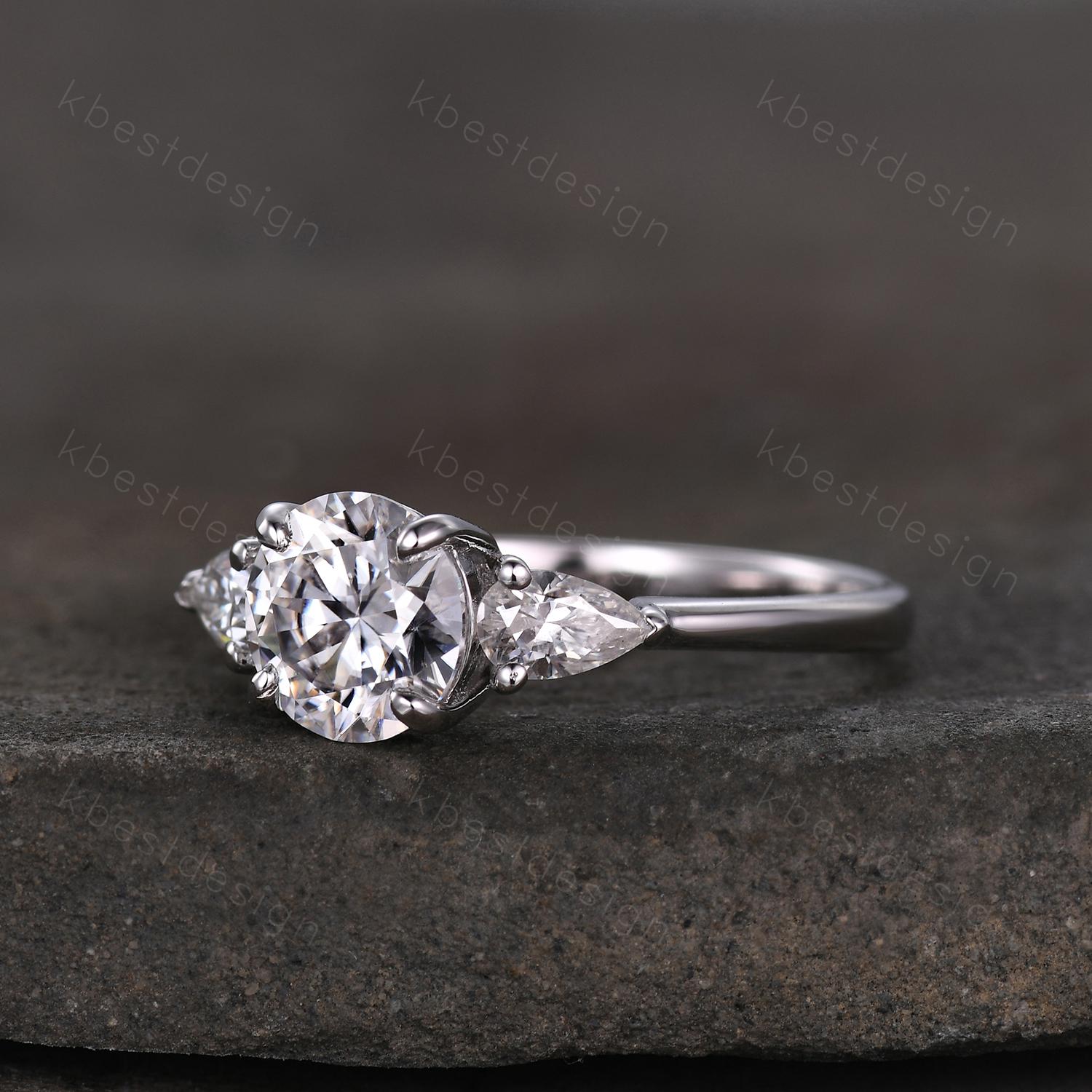 7mm round cut moissanite engagement ring 1.25ct three stone moissanite bridal Ring uniquewedding ring for women promise anniversary ring