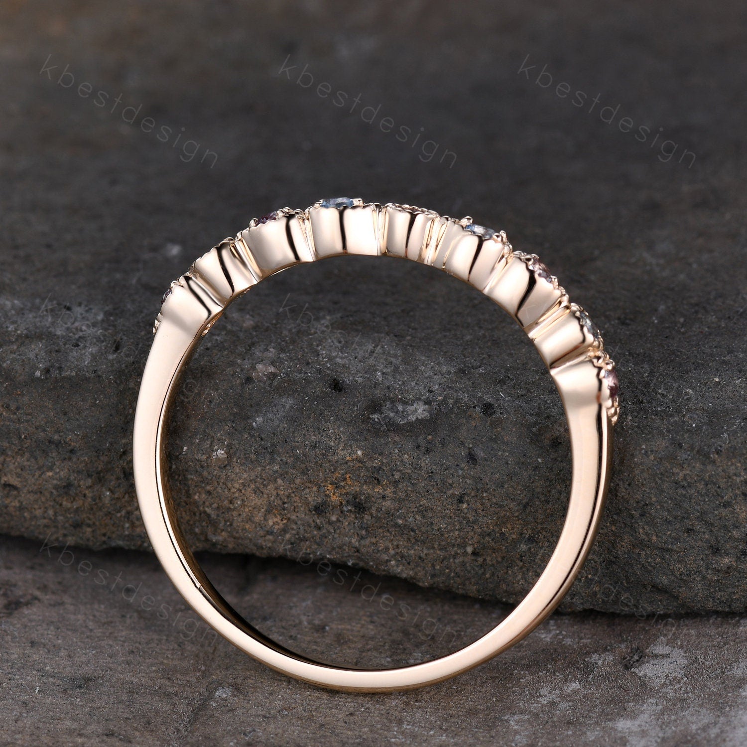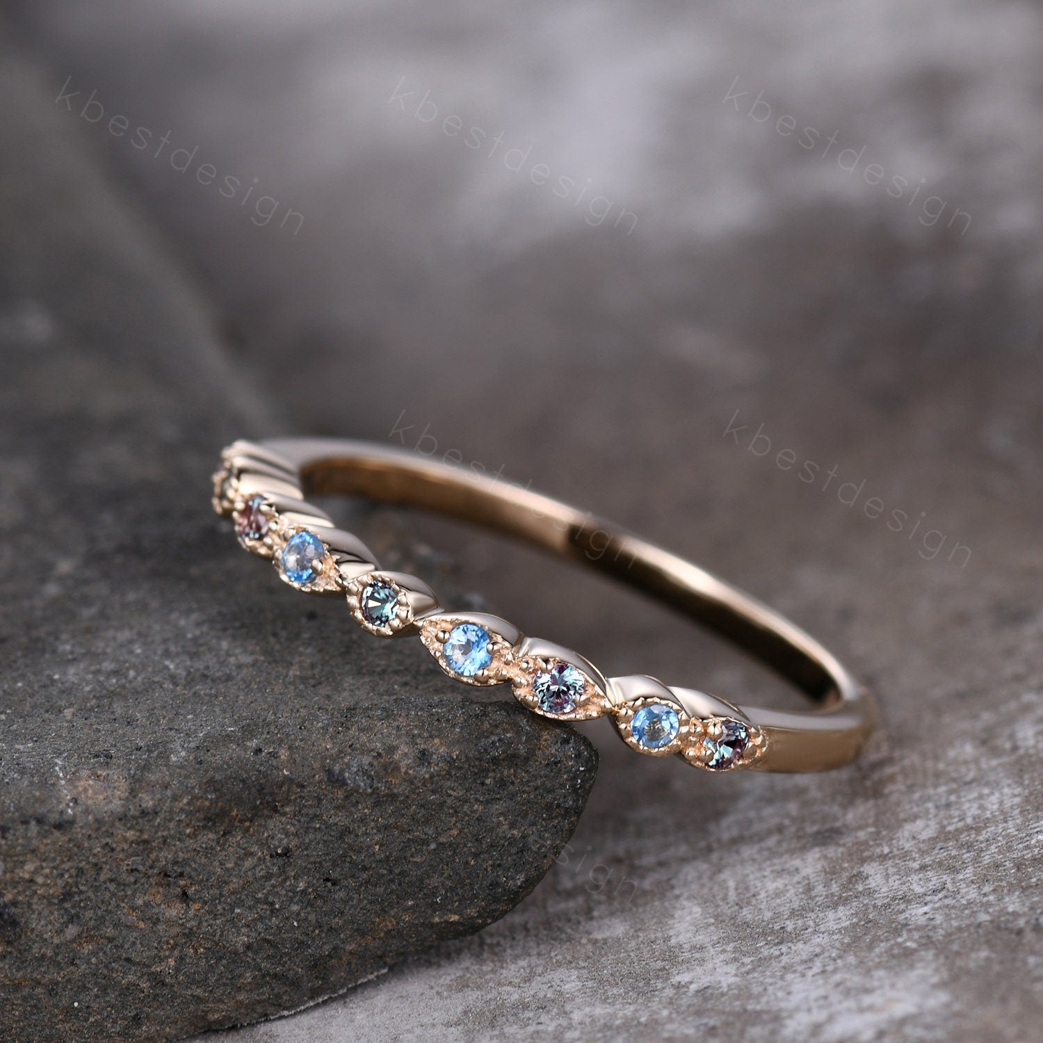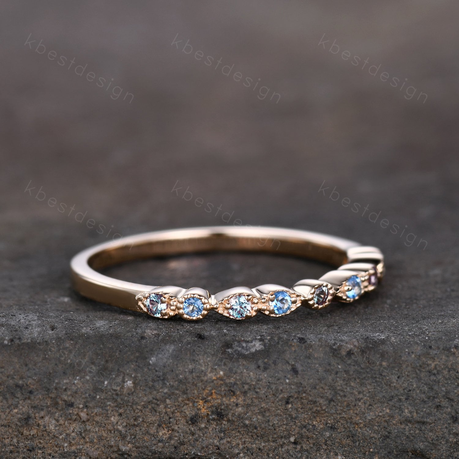 Alexandrite and Blue Topaz Ring, Alexandrite Wedding Band, June Birthstone Ring, Art Deco Stackable Ring, Anniversary Ring, Gift For Her