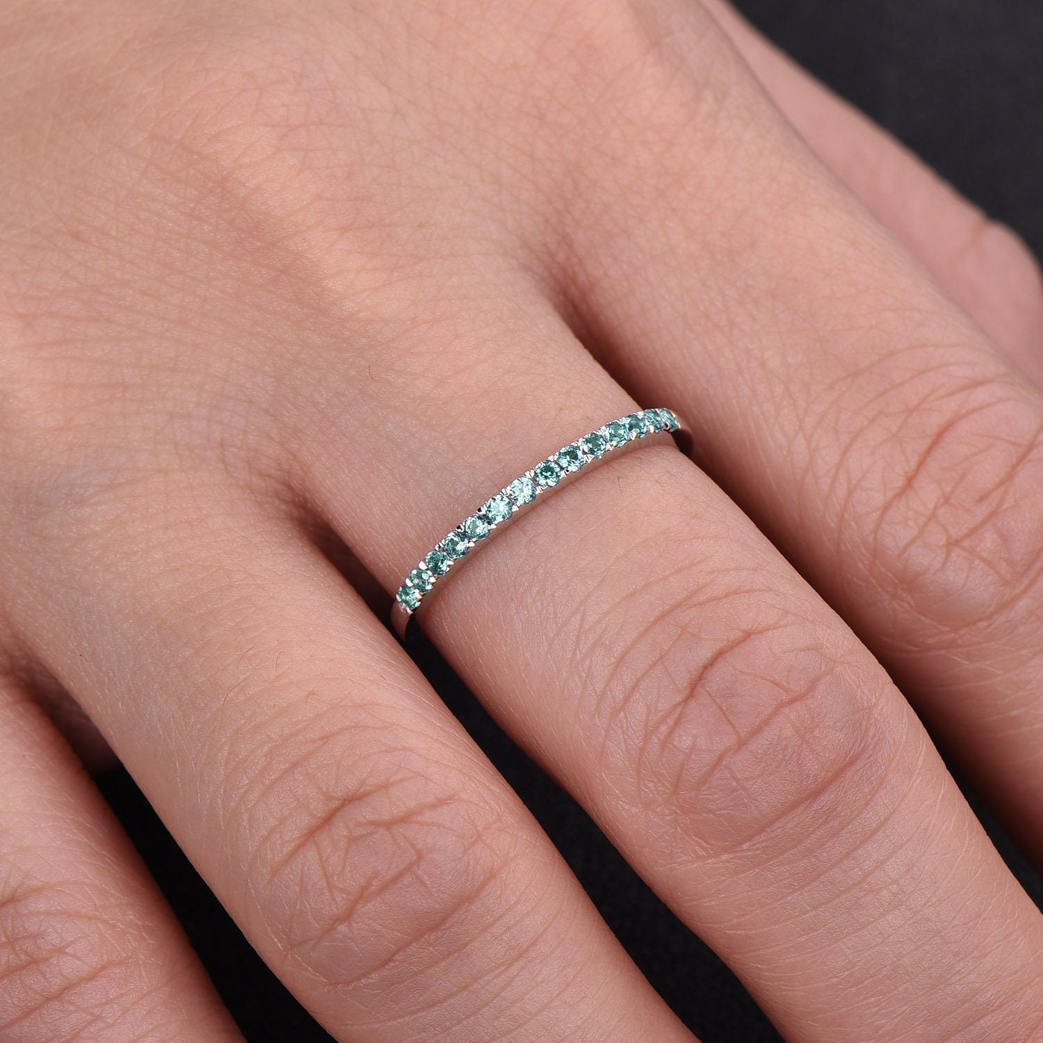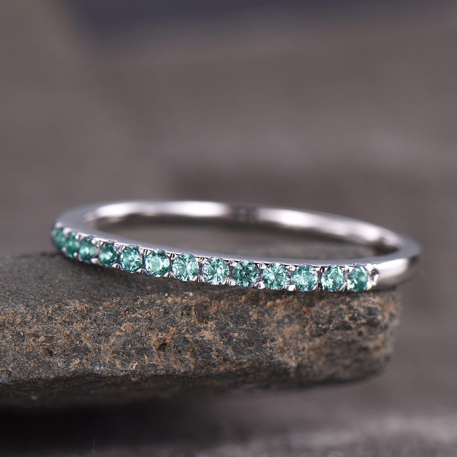 Alexandrite Ring Alexandrite Wedding Band Aniversary Ring Sterling Silver Eternity Band Stacking Ring White Gold Plated
