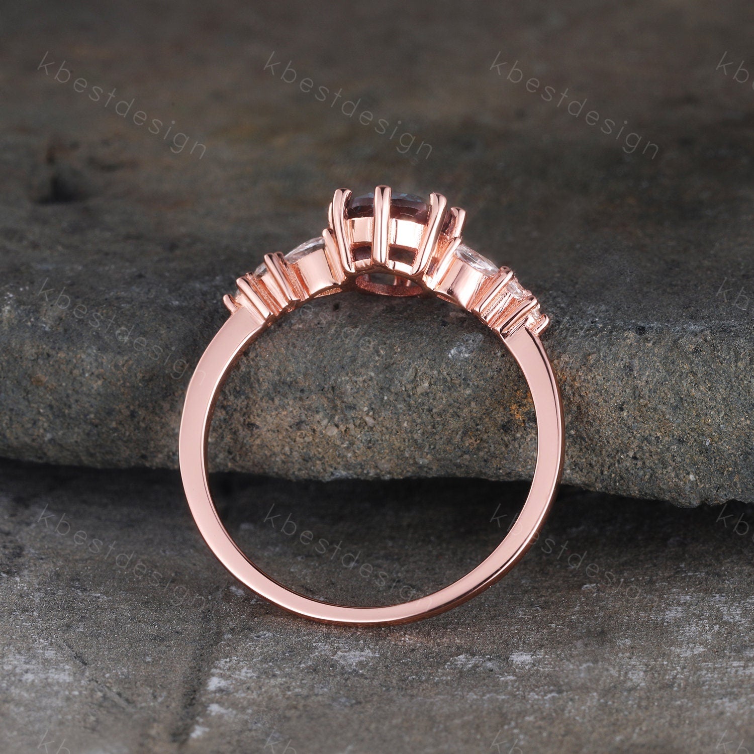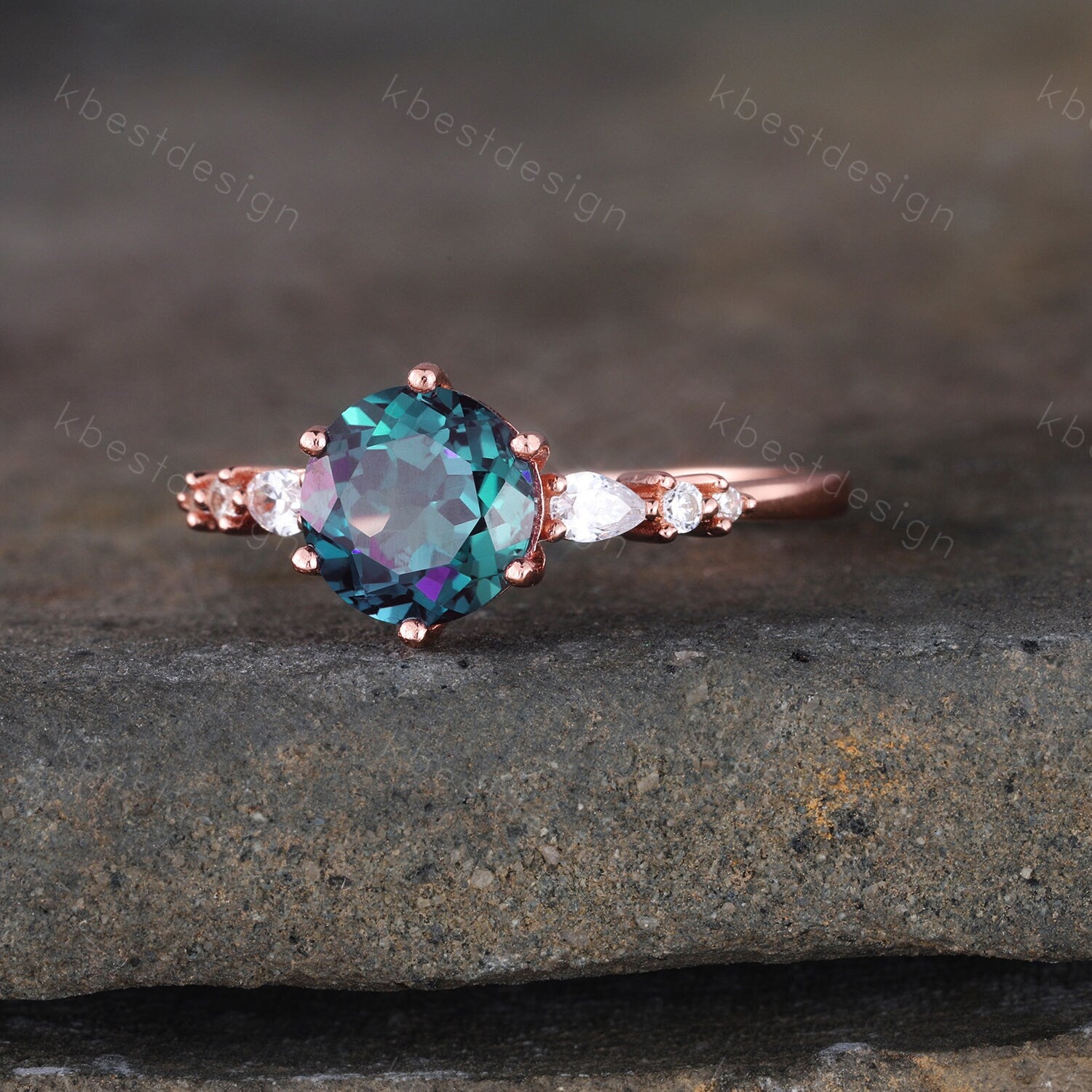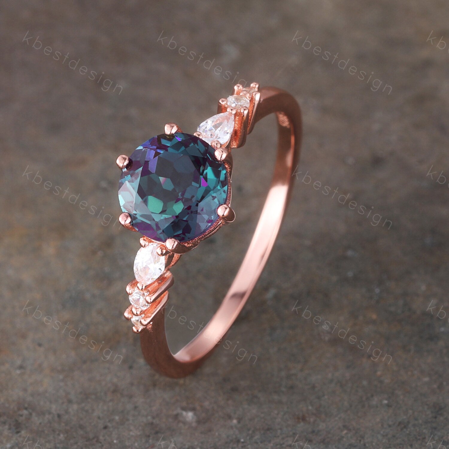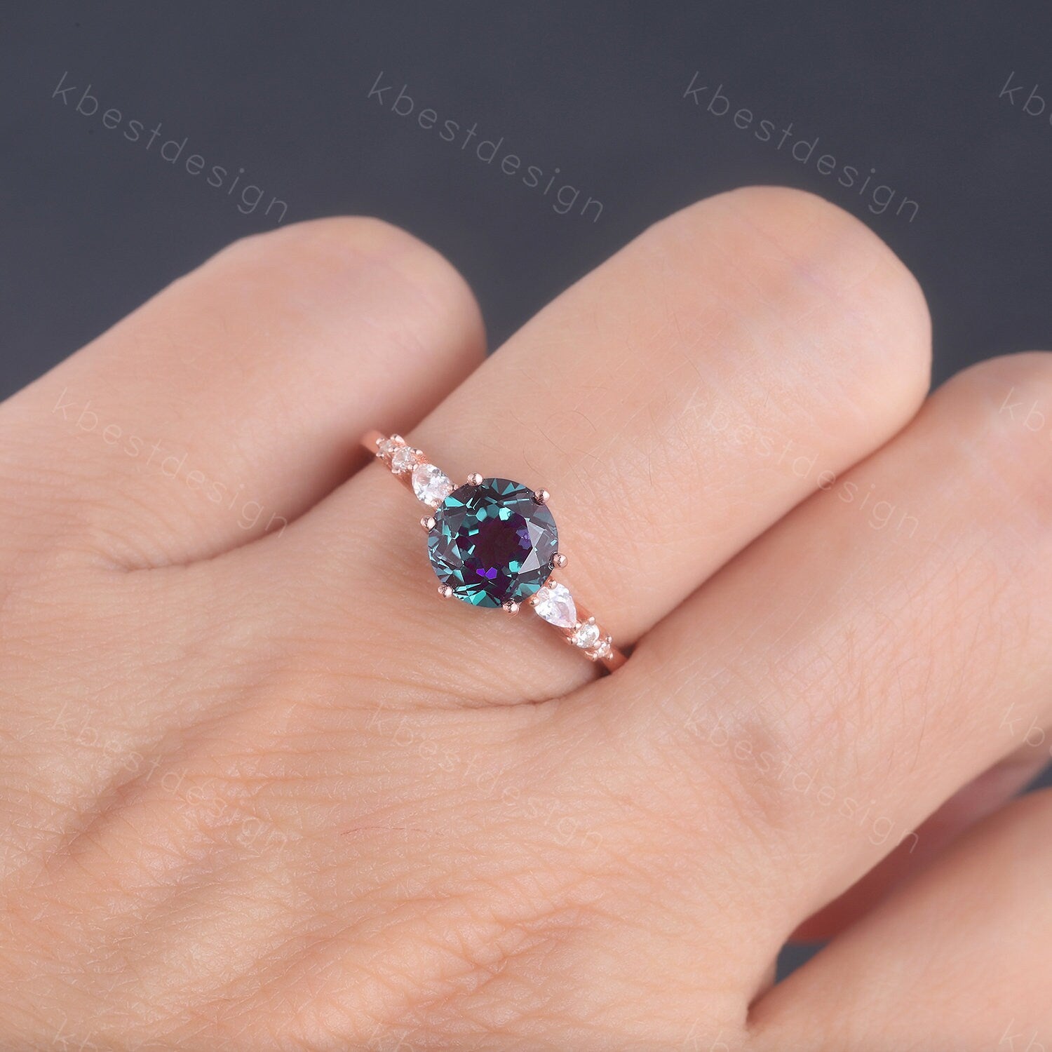Alexandrite Ring, Round Engagement Ring, June Birthstone, Unique Wedding Bridal Ring, Rose Gold Alexandrite Ring, Promise Anniversary