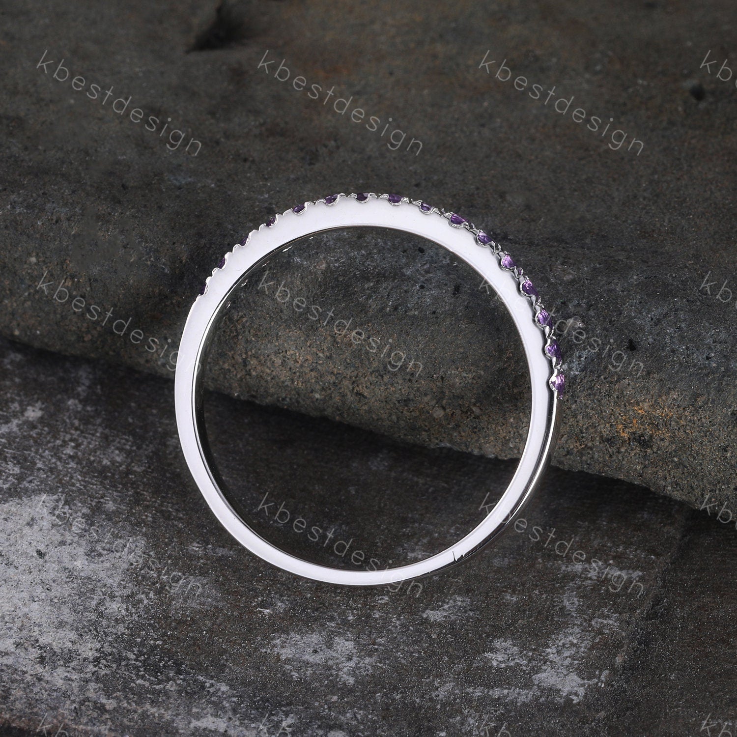 Amethyst Wedding Band, 1.5mm Half Eternity Amethyst Wedding Ring, Sterling Silver Ring, February Birthstone, Gemstone Band, Matching Band