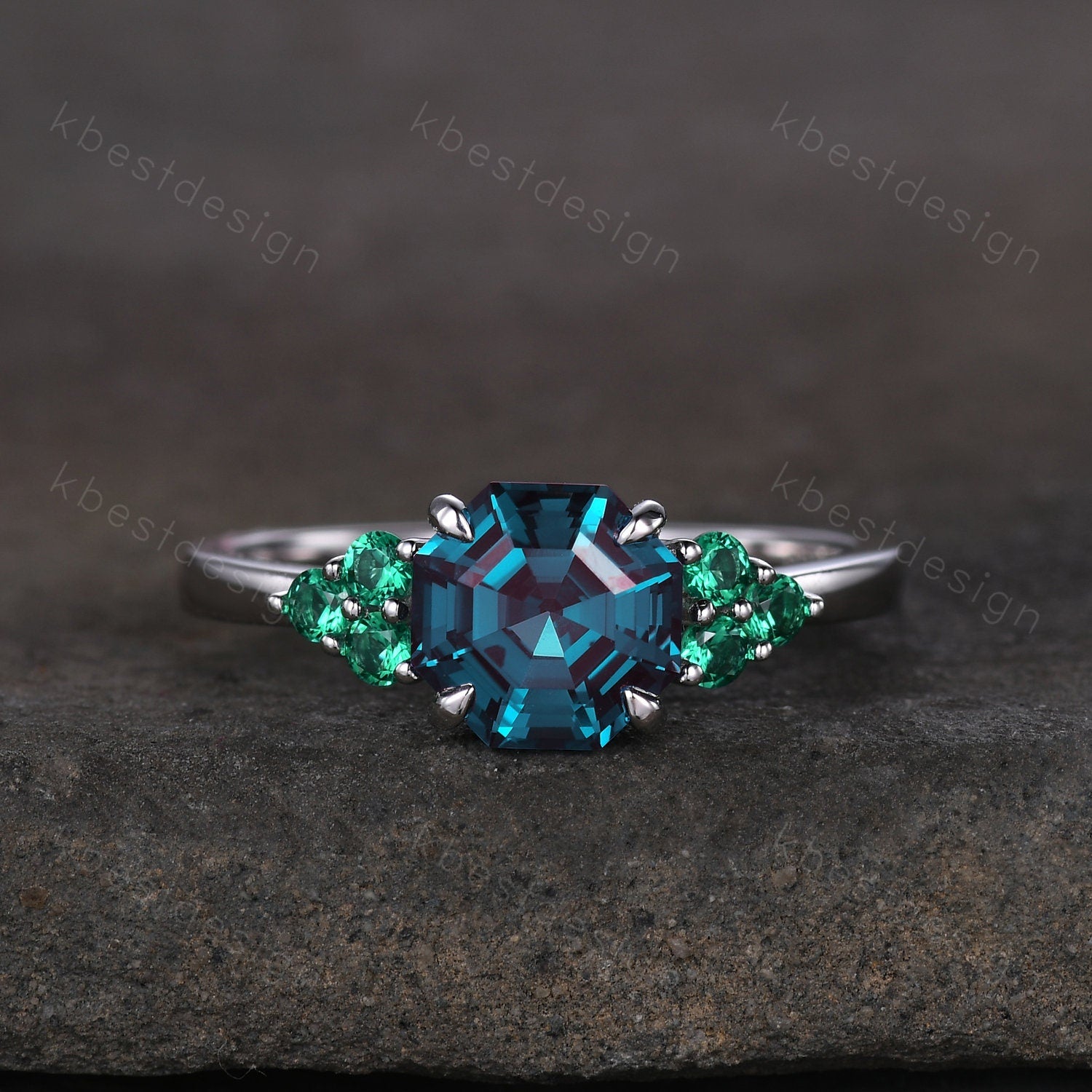 Main Stone: 7mm asscher cut lab created Alexandrite .