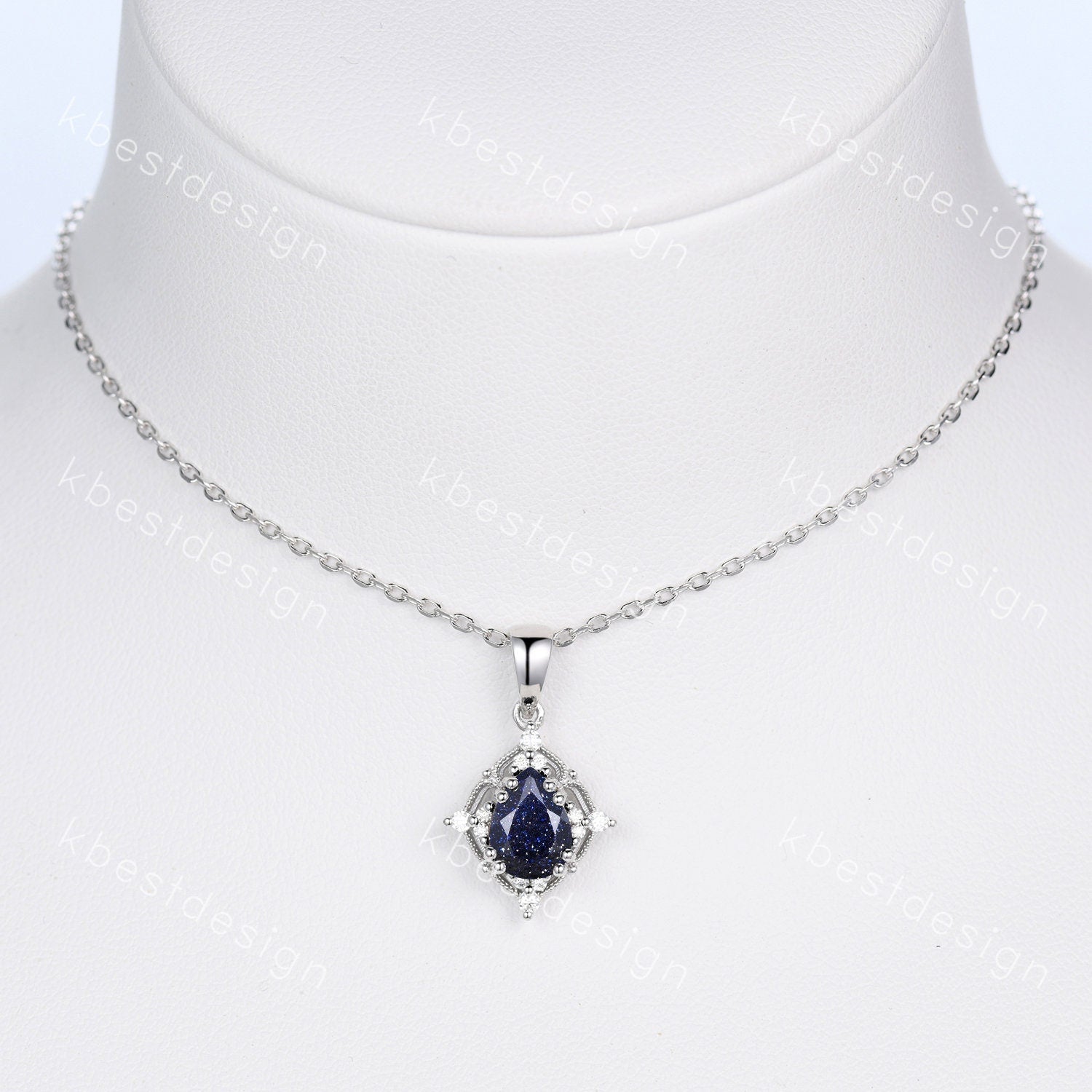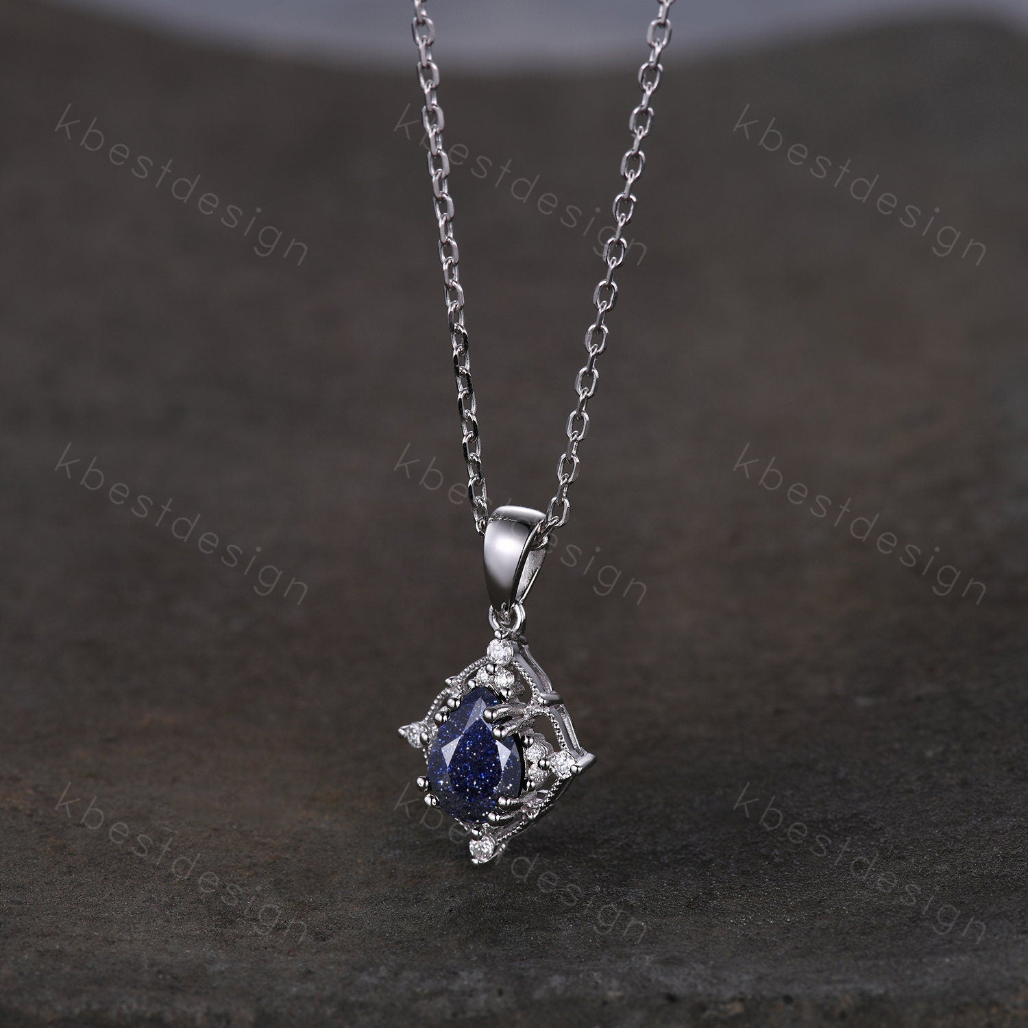 This is a Antique Blue Sandstone Necklace Vintage Pear cut Galaxy Sandstone Pendant Women Silver Necklace Unique Moissanite Pendant Anniversary Gift. For those who are looking for agate jewelry which is handcrafted in details, this unique blue sandstone necklace would be a perfect choice for you. Whether it be a Birthday gift for her, an anniversary gift her, or a celebration of yourself, this galaxy sandstone jewelry is the perfect gift from the heart.