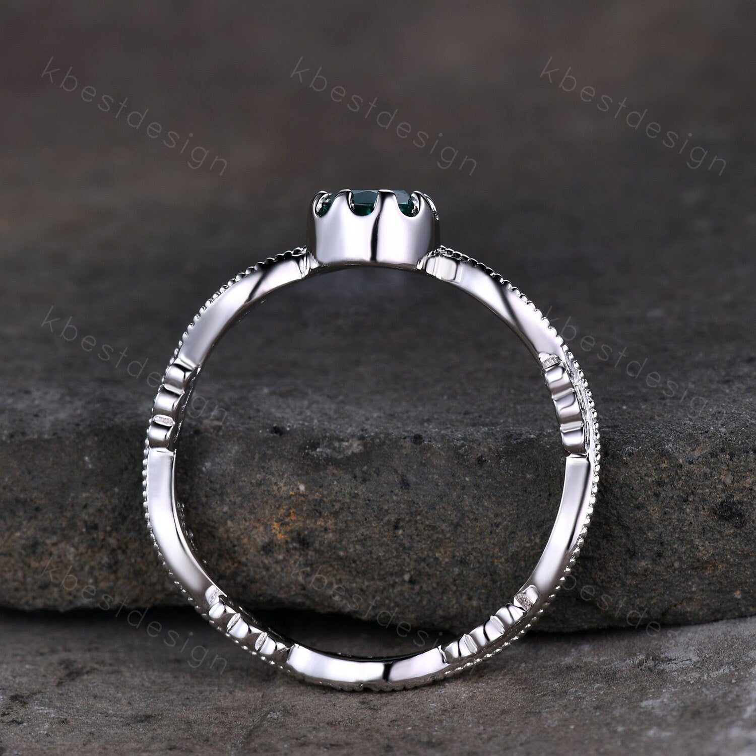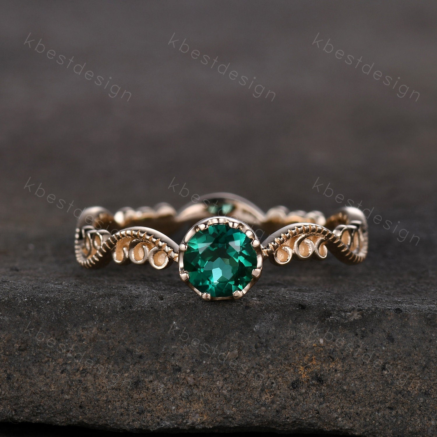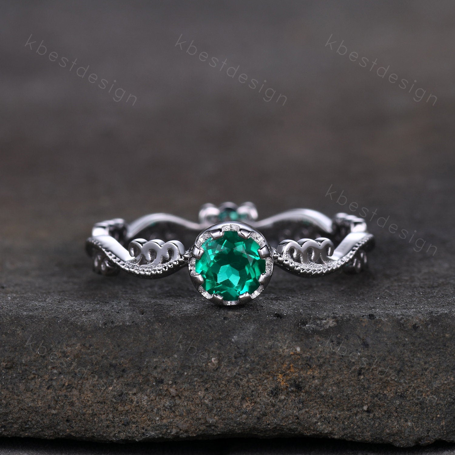 Antique emerald engagement ring 5mm round cut green emerald ring art deco filigree ring unique design bridal promise ring May birthstone