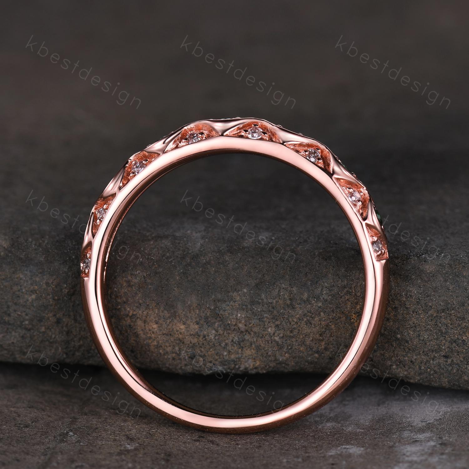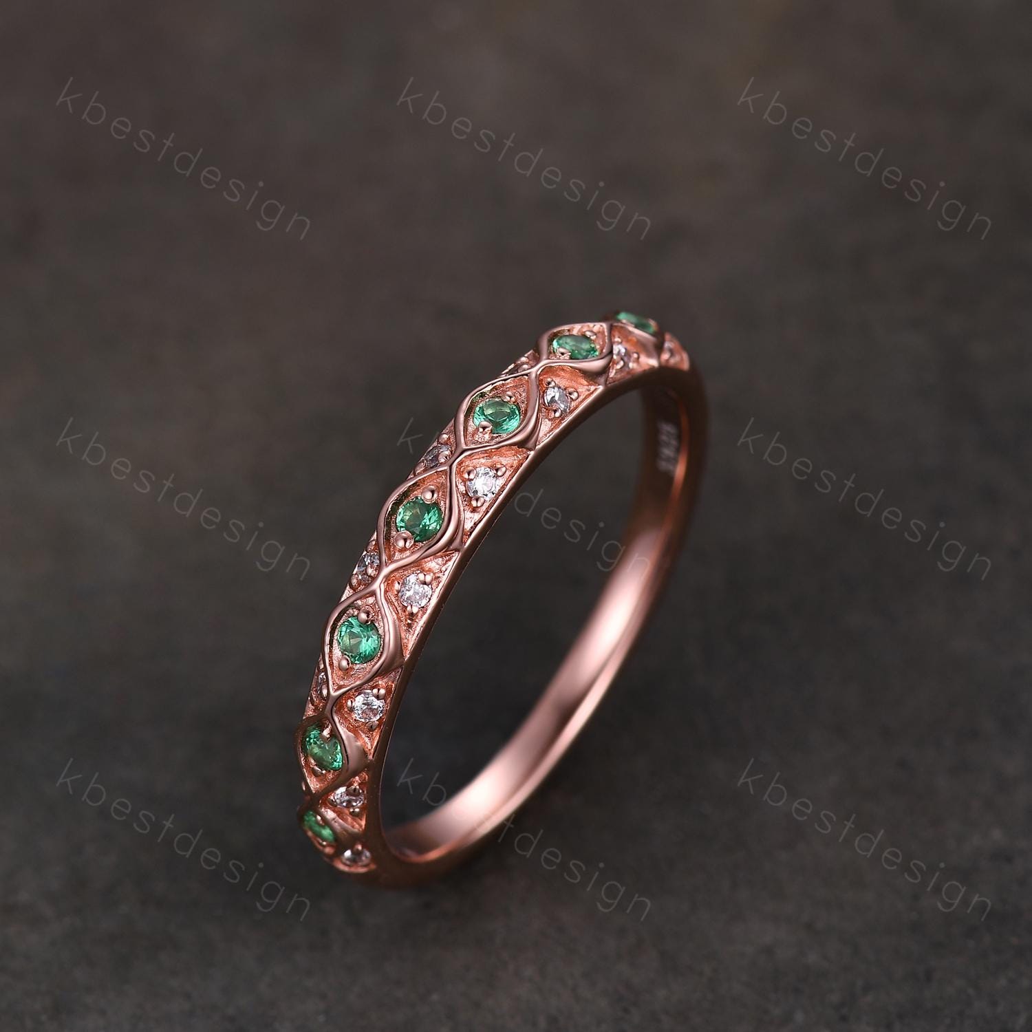 Antique Emerald Wedding Band Rose Gold Ring Women Vintage Wedding Ring May Birthstone Stacking Ring Anniversary Gift for Her Handmade
