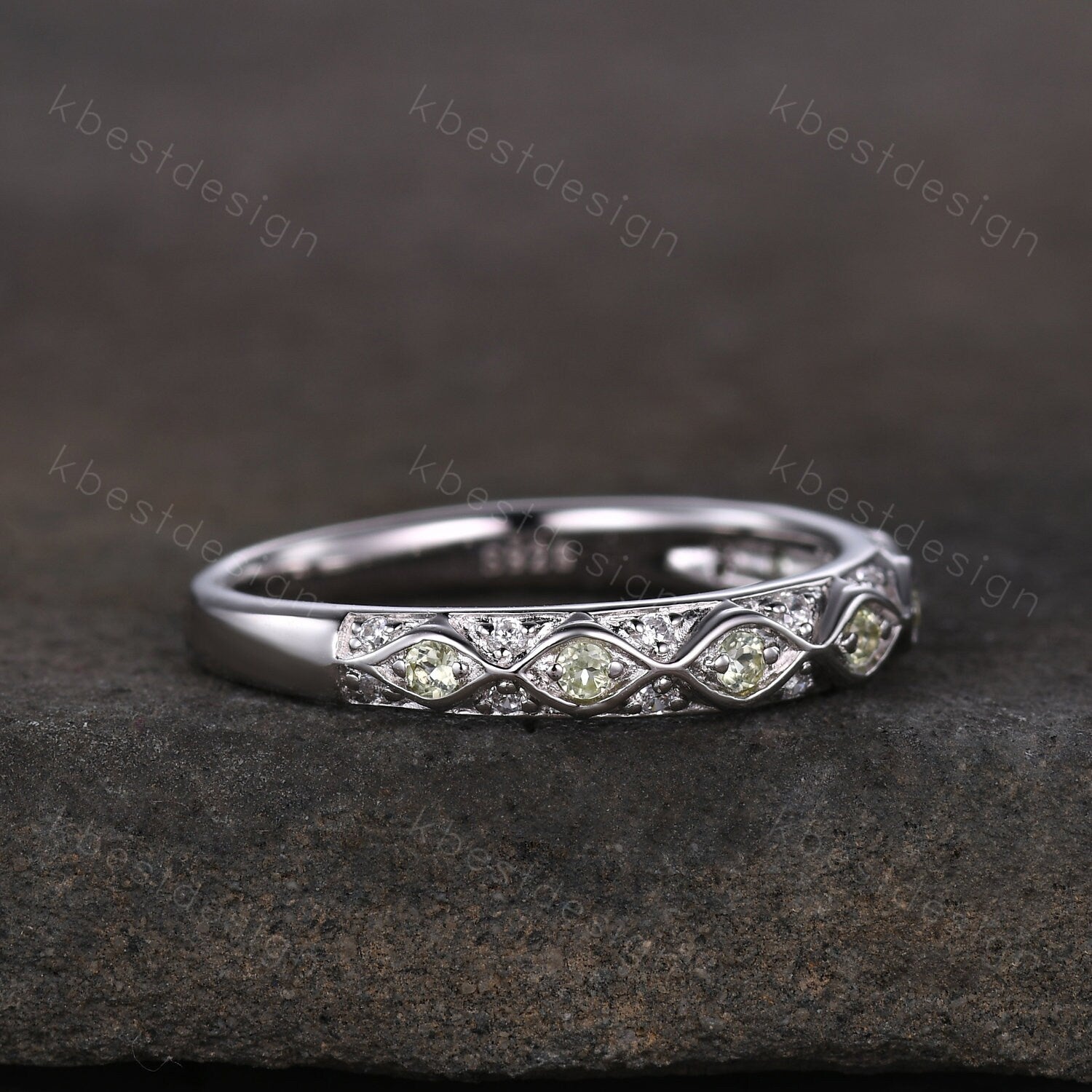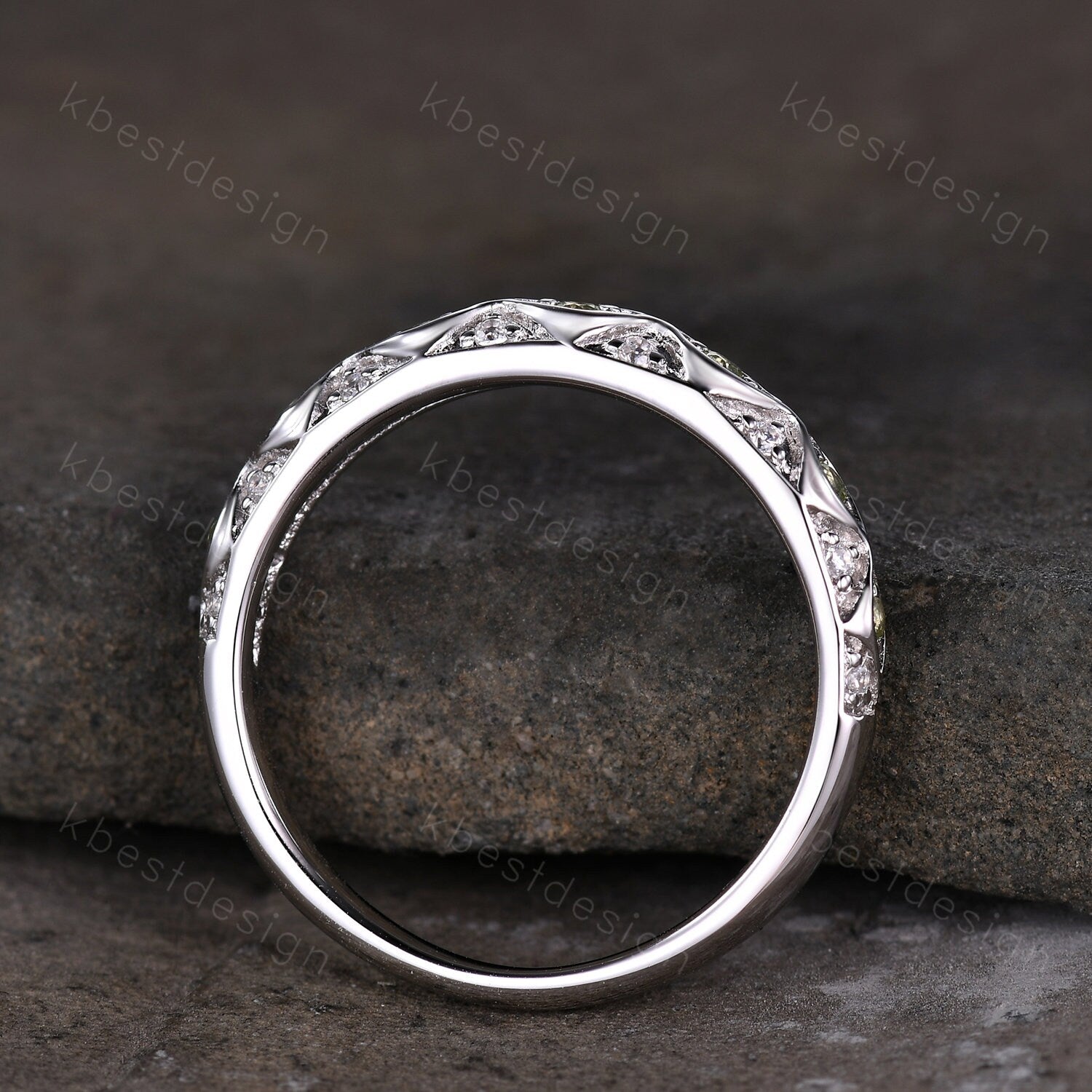 Antique Peridot Wedding Band 925 Sterling Silver Vintage Wedding Ring August Birthstone Stacking Ring Anniversary Gift for Her Handmade