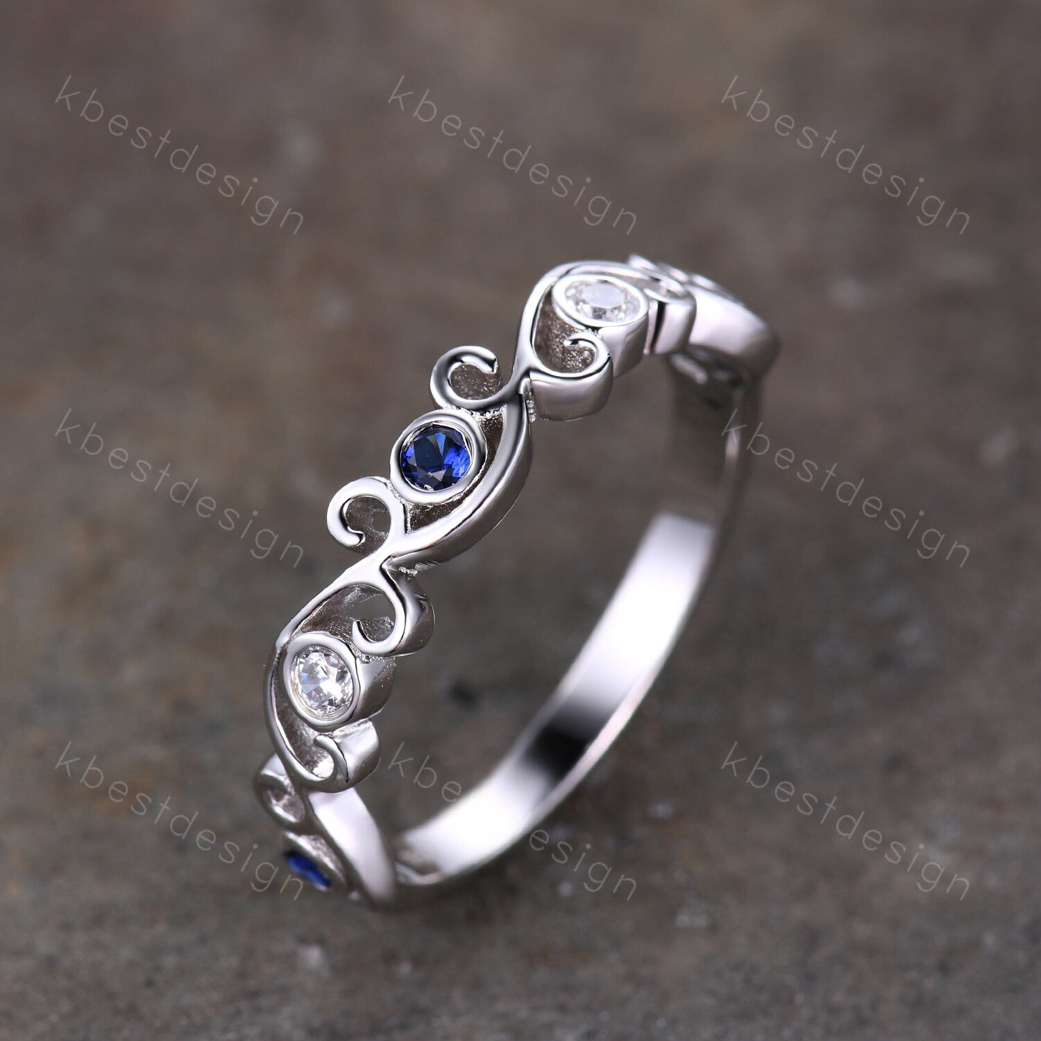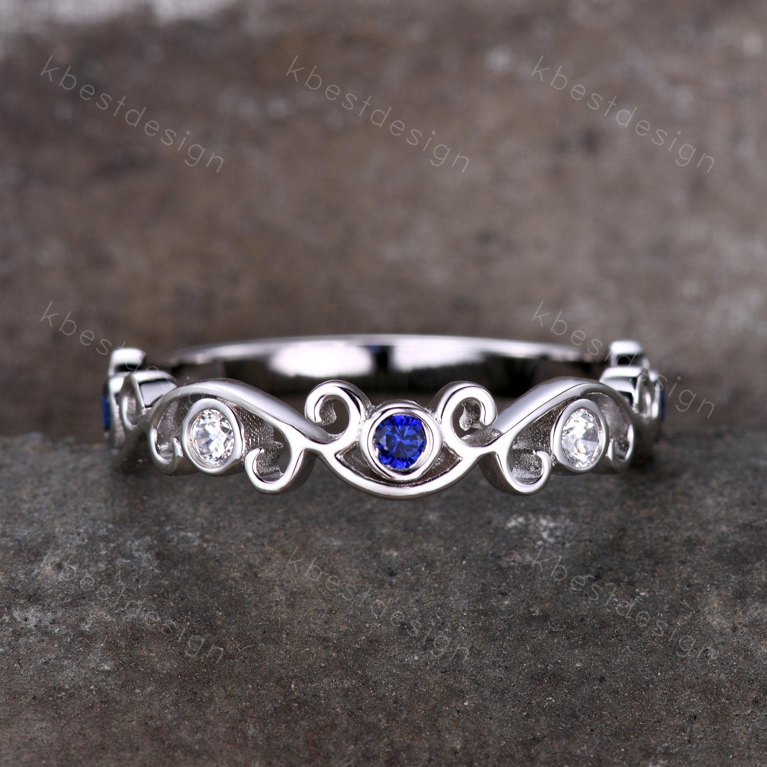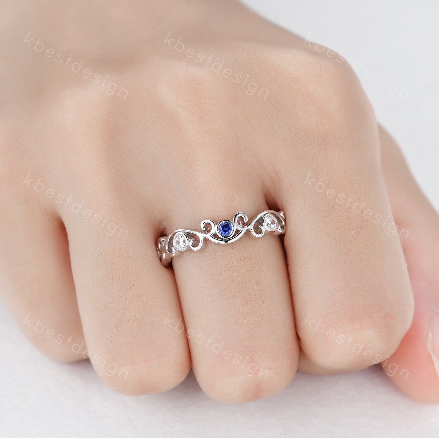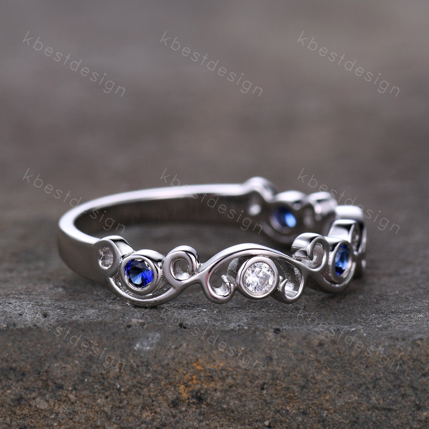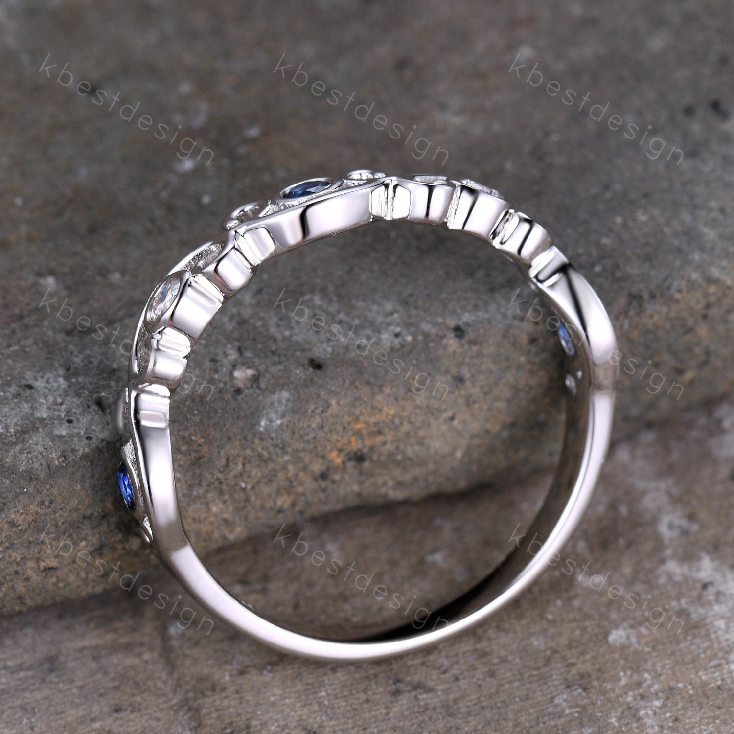 Antique Sapphire Moissanite Wedding Band Women Vintage Twig Floral Wedding Band Engagement Ring Band Bezel Set Bridal Anniversary Ring.