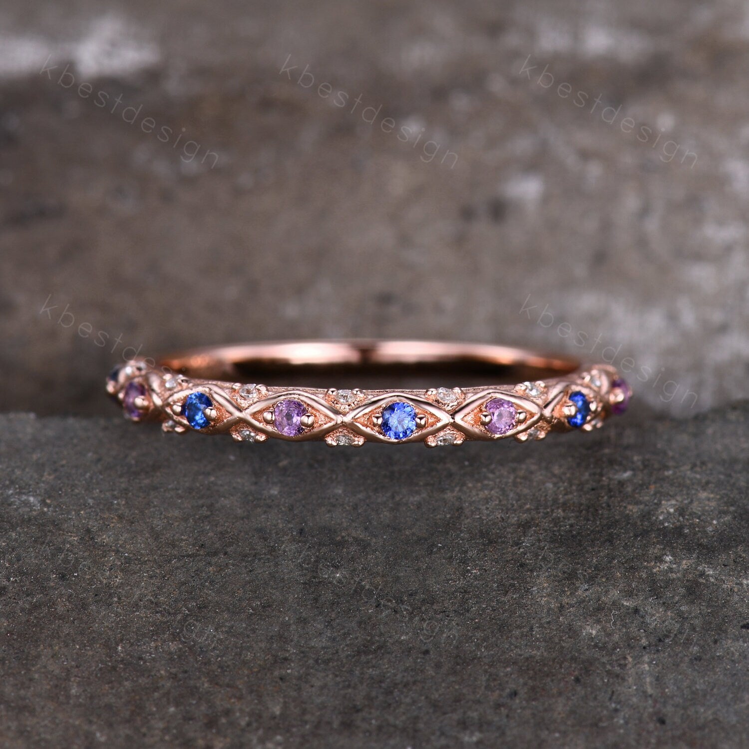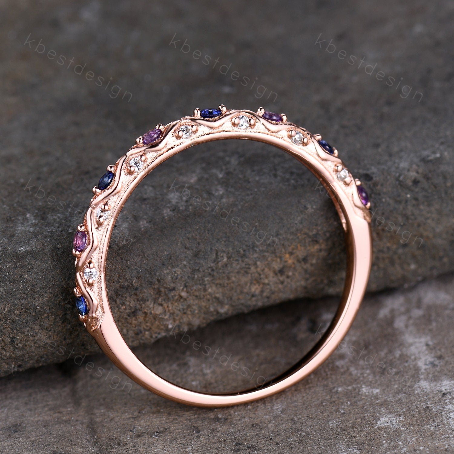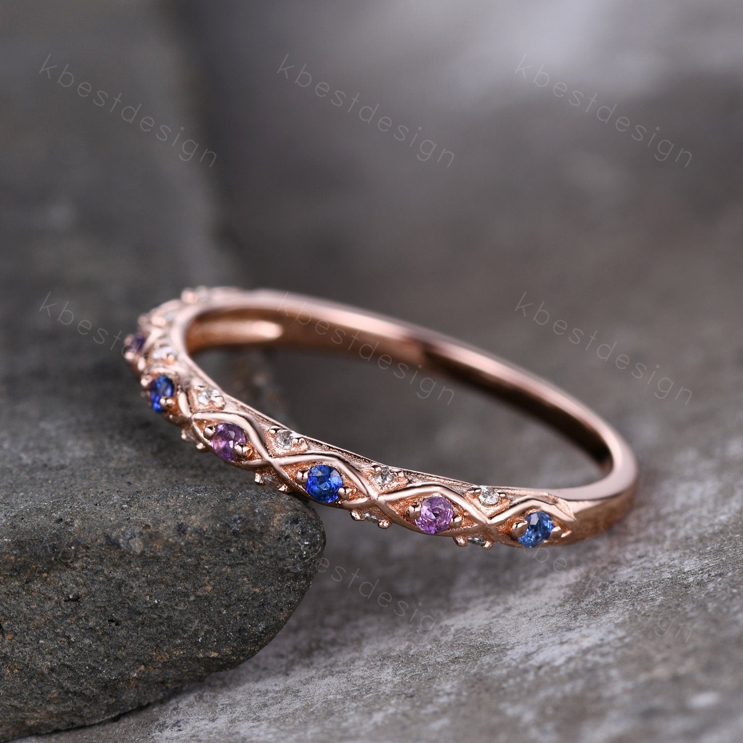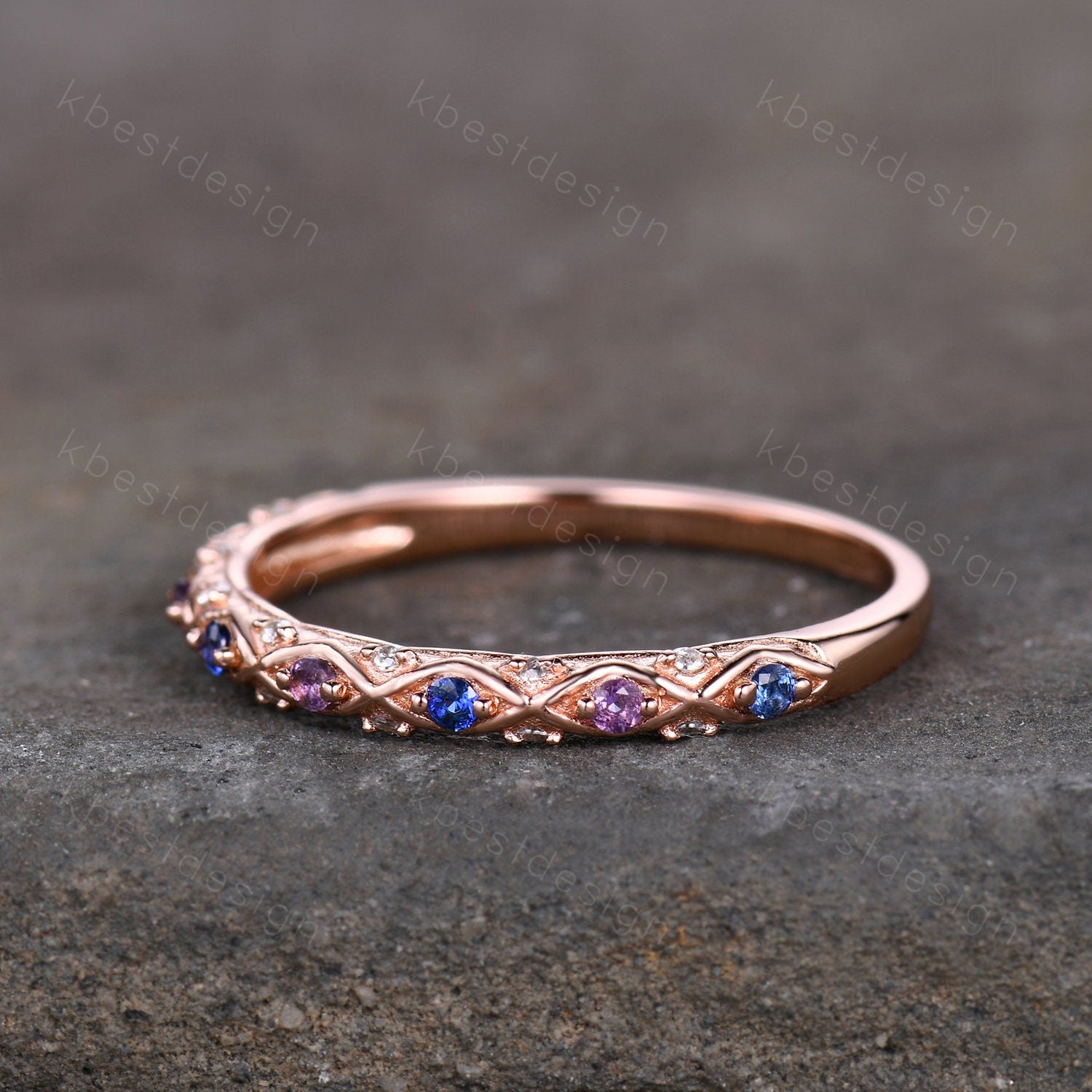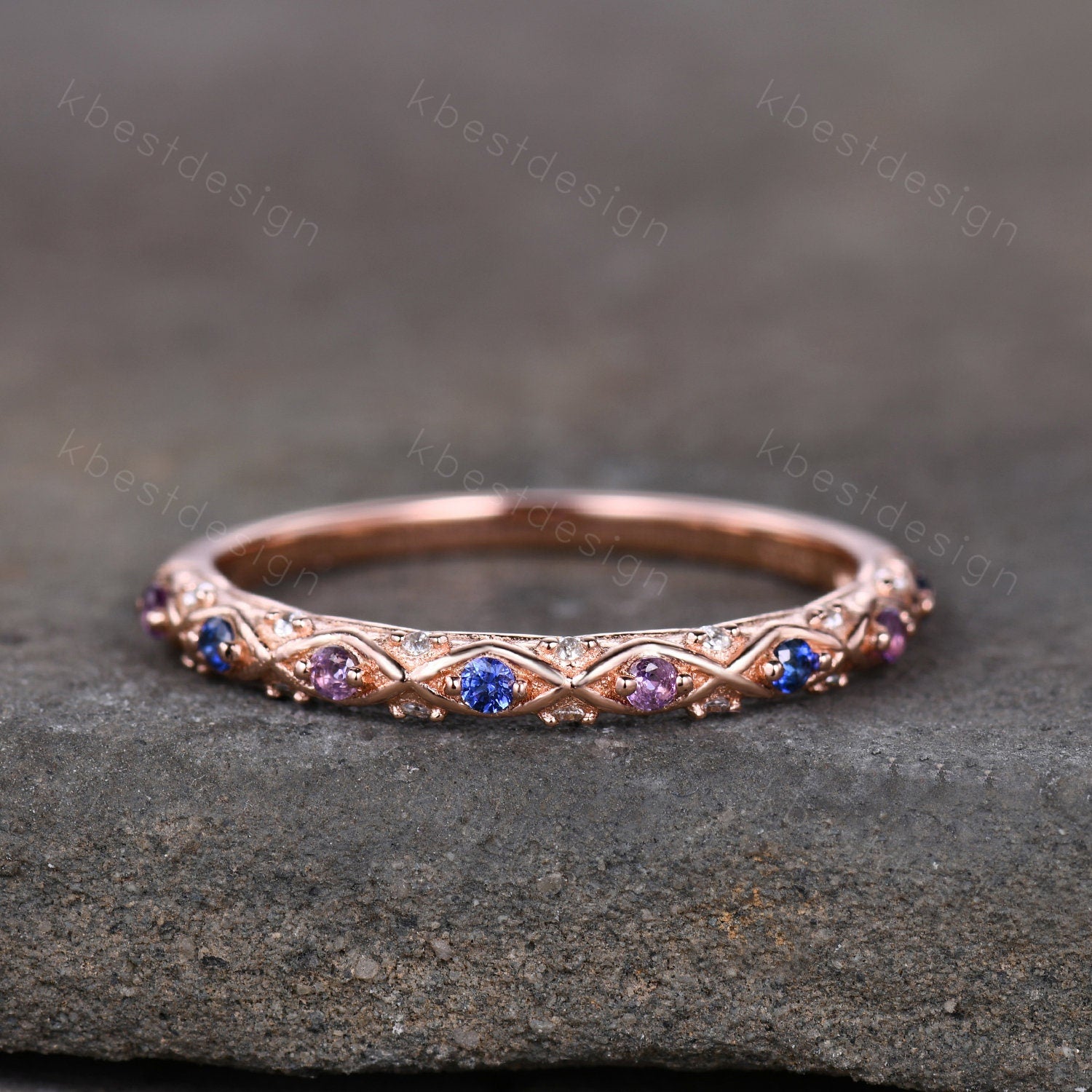 Antique Sapphire Wedding Band Women Rose Gold Band Amethyst Band Vintage Wedding Ring September Birthstone Stacking Ring Anniversary Gift
