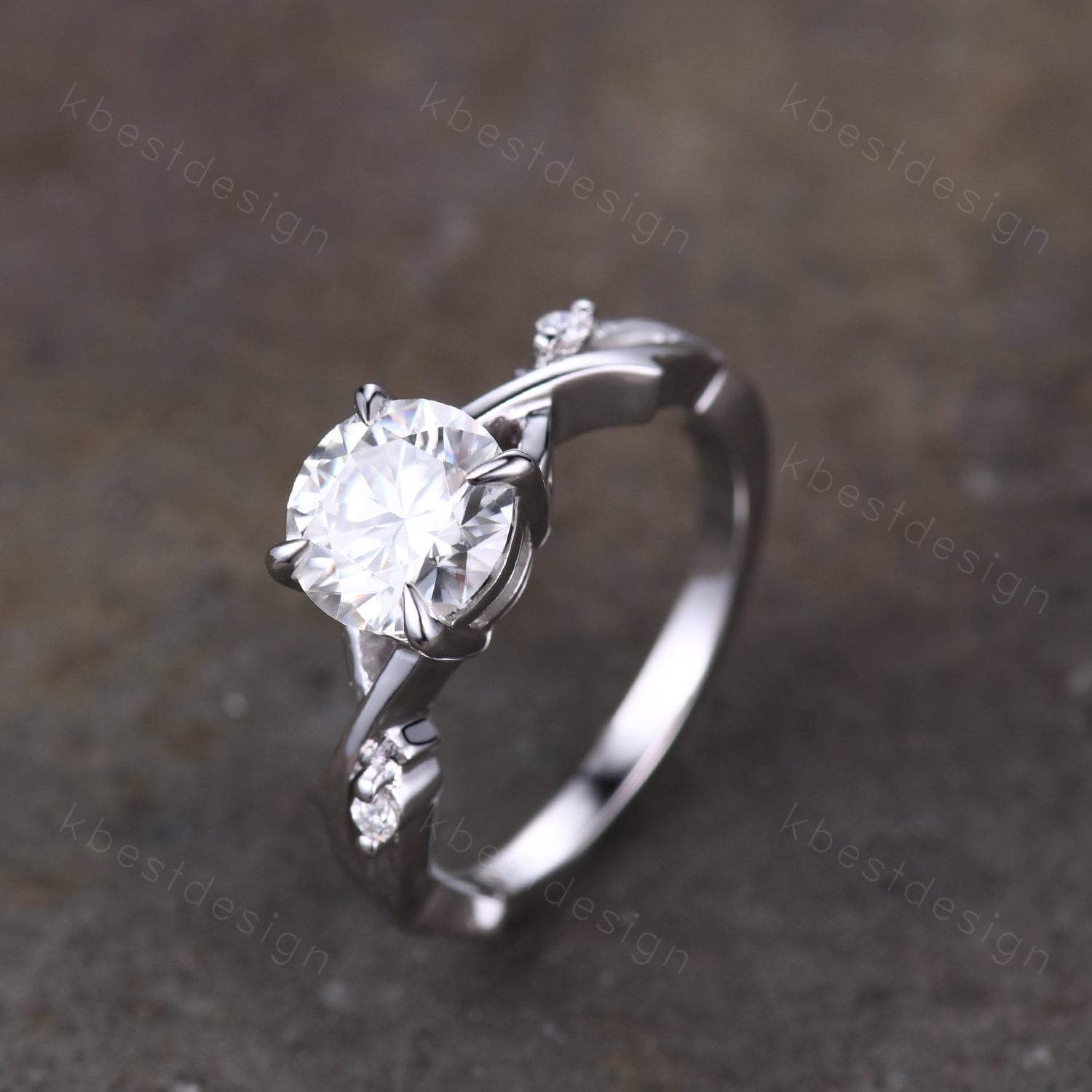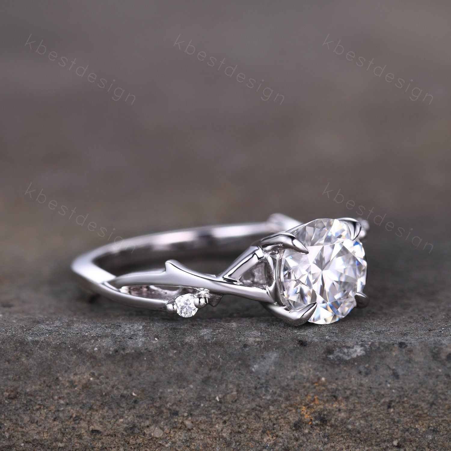Vintage twig Simulated Diamond/Moissanite engagement ring in white gold. Perfect for birthday gift, anniversary gift, promise gift.