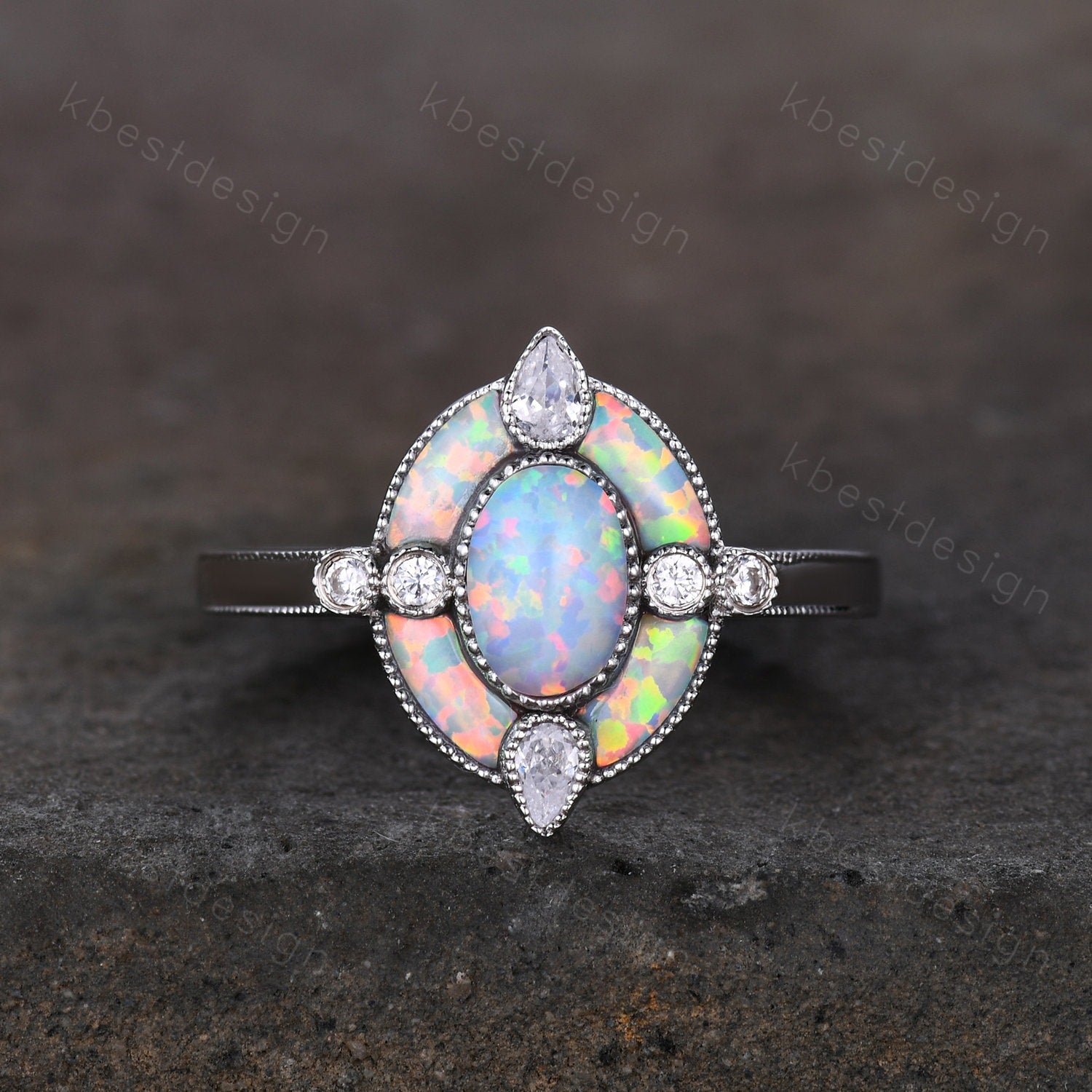 This is a beautiful Antique White Opal Engagement Ring Sterling Silver Opal Halo Engagement Ring Vintage Oval cut Ring Cocktail Ring October Birthstone Gift.
