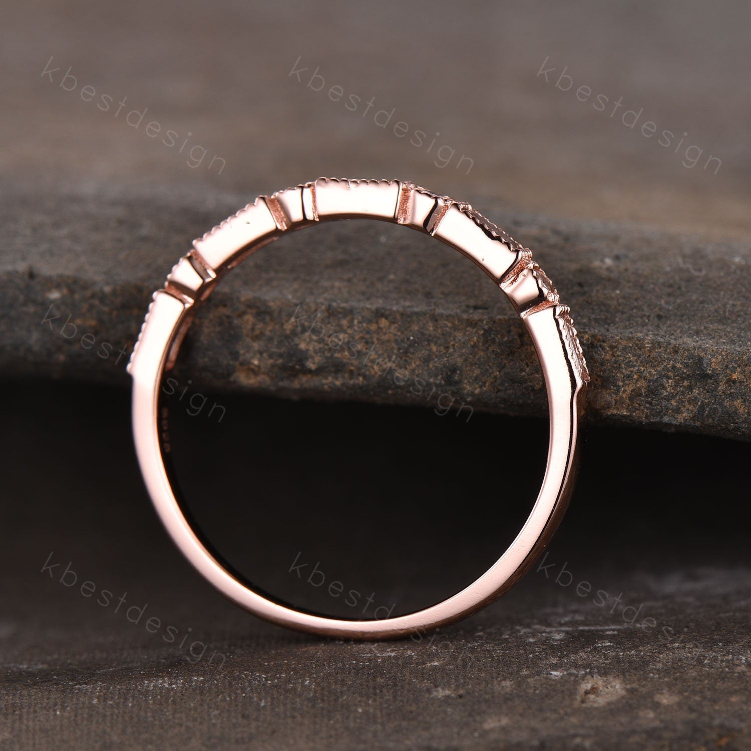 Art deco half eternity baguette stacking band, matching band, anniversary gift, birthday gift.