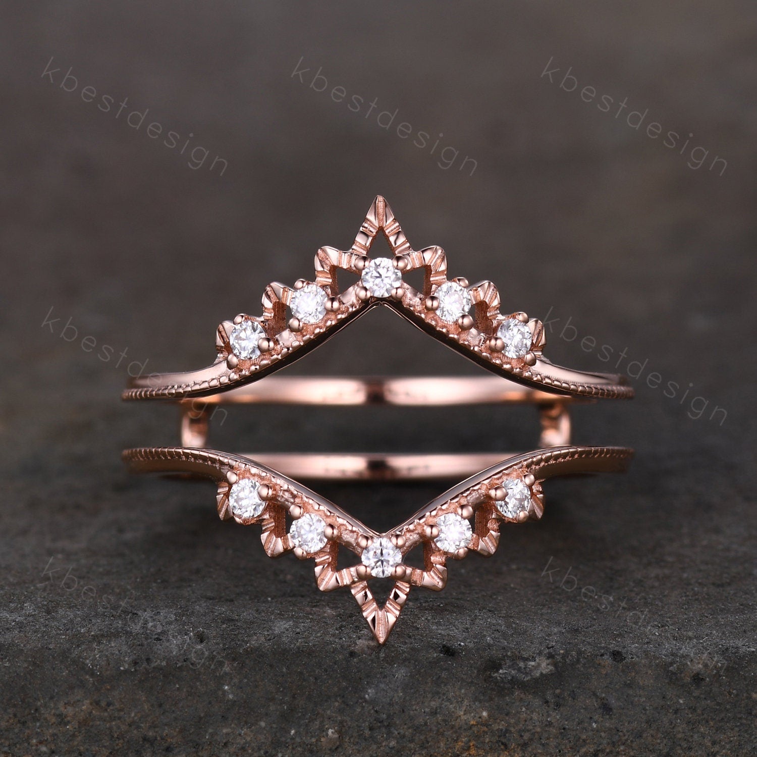 Art deco Moissanite double curved wedding band rose gold enhancer band unique stacking matching band Antique bridal anniversary ring