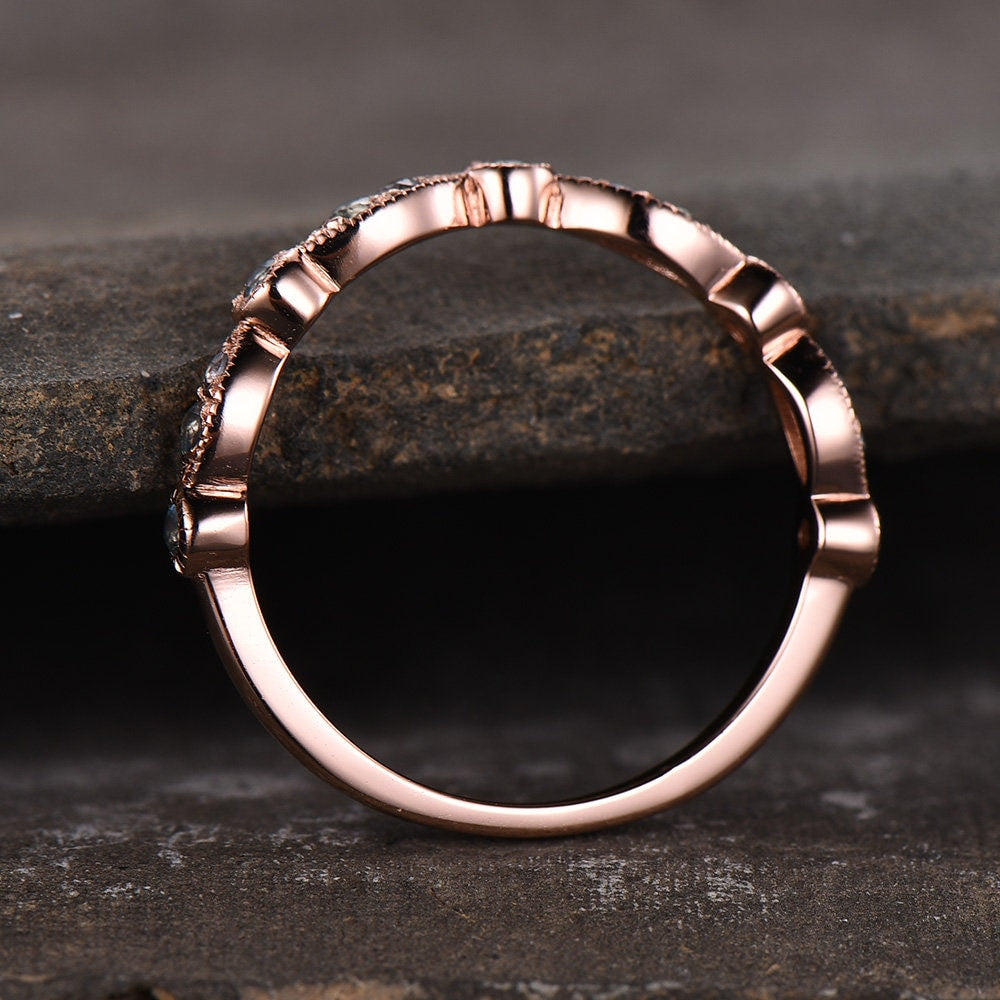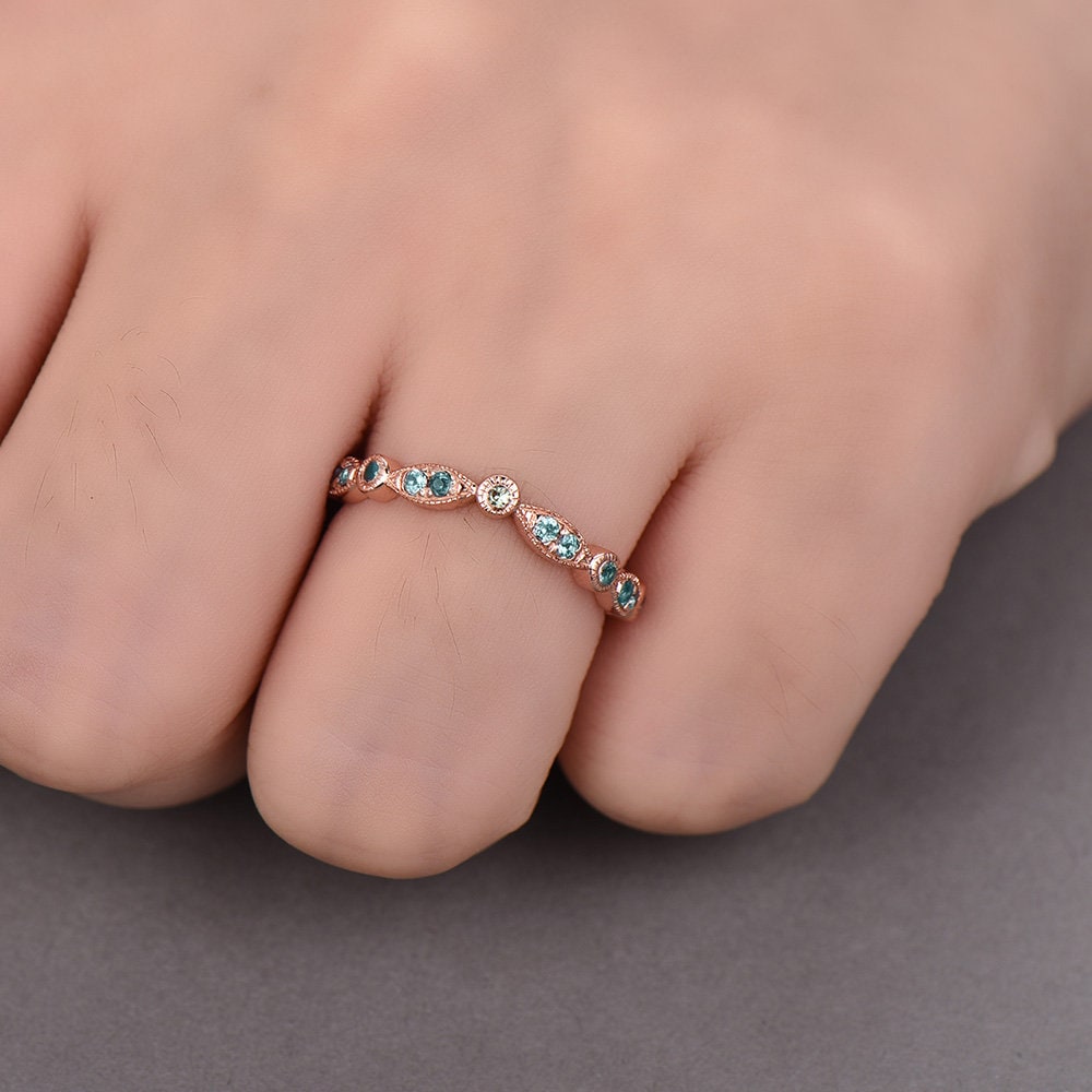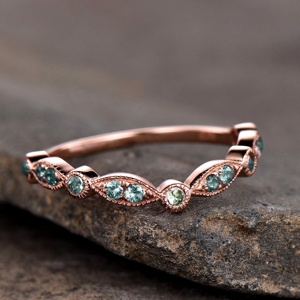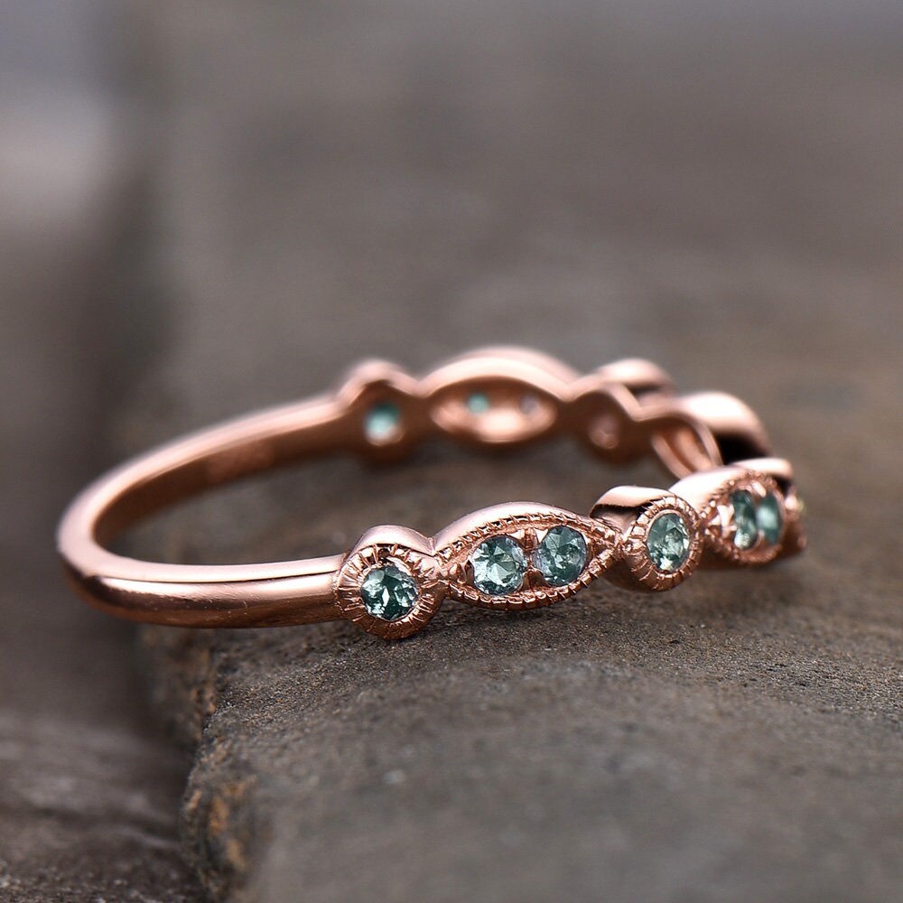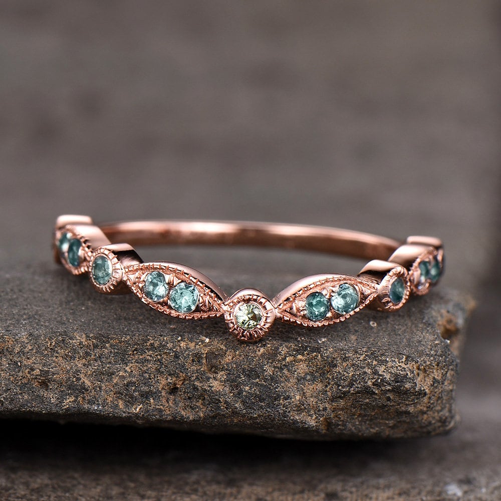 Art Deco Ring Alexandrite and Peridot Wedding Band Dlicate Ring June Birthstone Ring Rose Gold Plated Anniversary Gift
