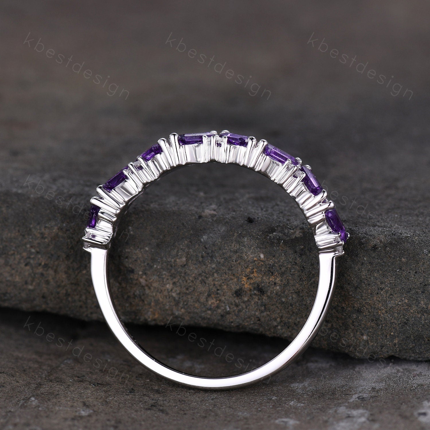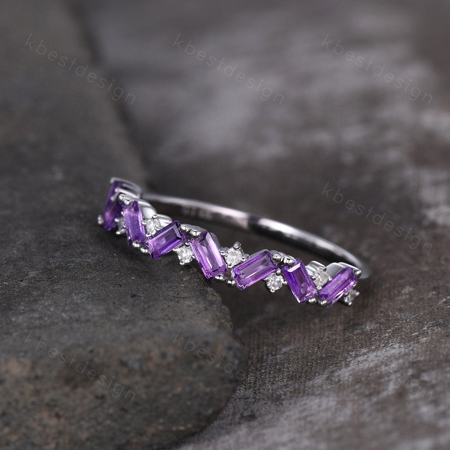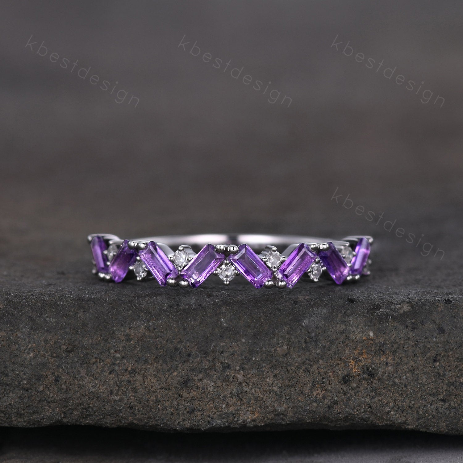 Baguette Amethyst Wedding Band Half Eternity Amethyst Moissanite Wedding Band Art deco Stacking Matching Band February Birthstone Ring