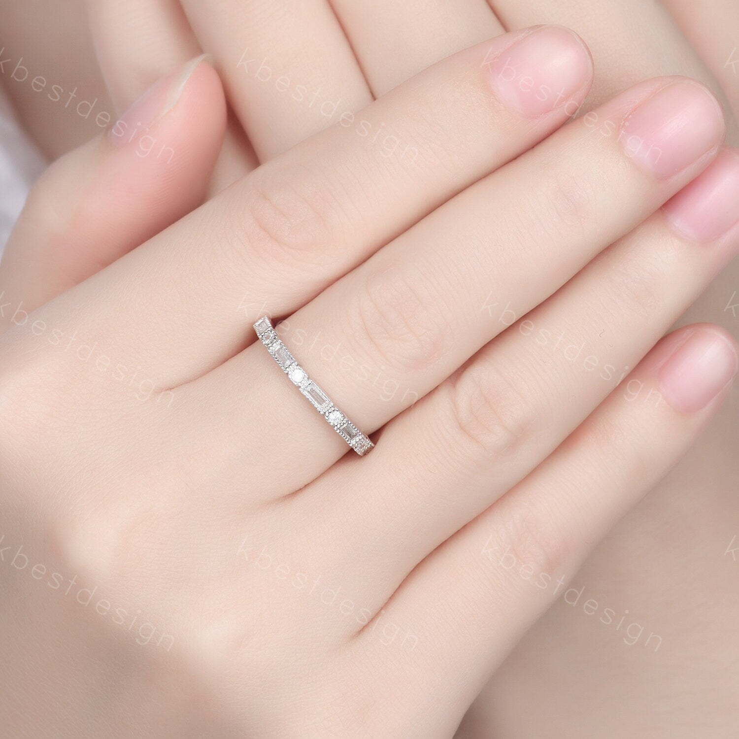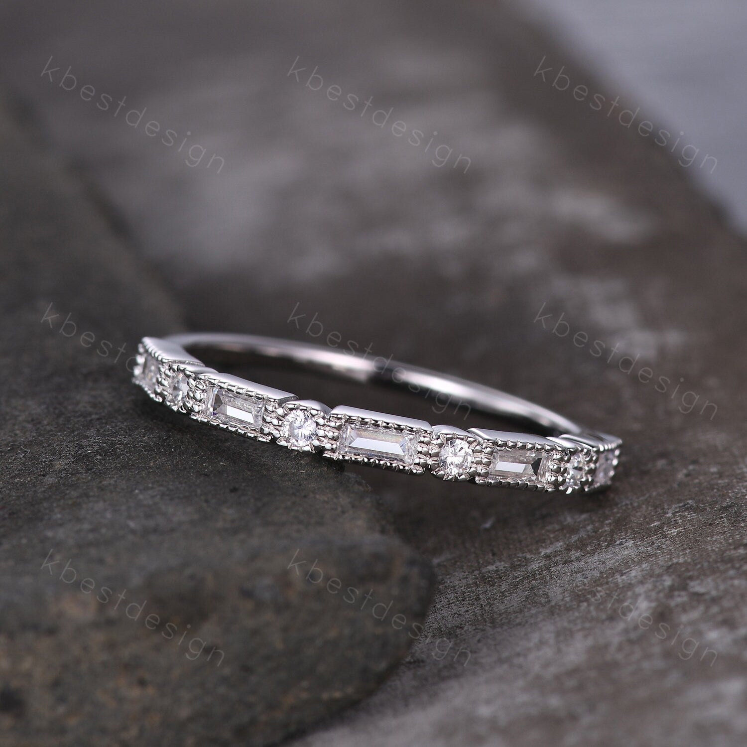 Stone: baguette cut + round cut moissanite