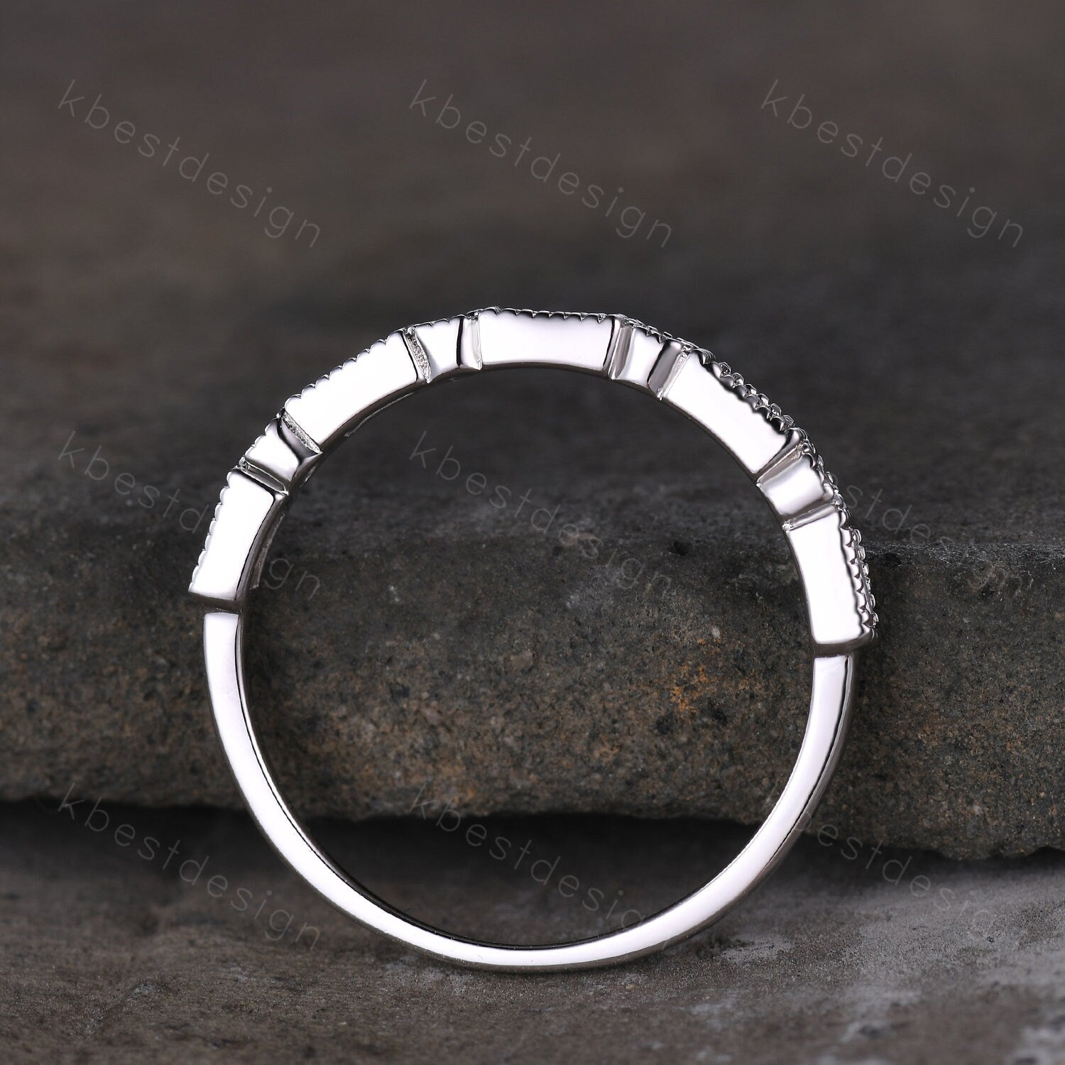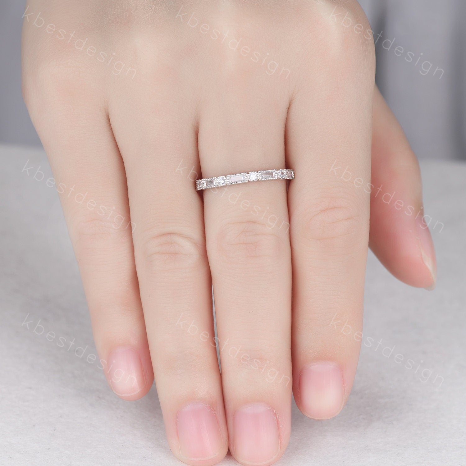 This is a Baguette cut Moissanite wedding band unique art deco half eternity band for women wedding stacking matching band anniversary gift for her.