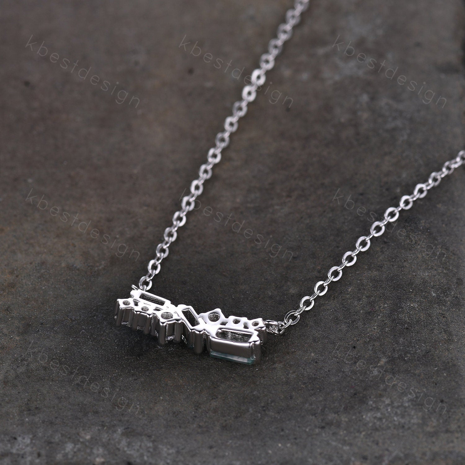 Baguette cut Natural Moss Agate Necklace, Silver Necklace, Art Deco Women Necklace, Unique Moissanite Necklace, Anniversary Promise Gift