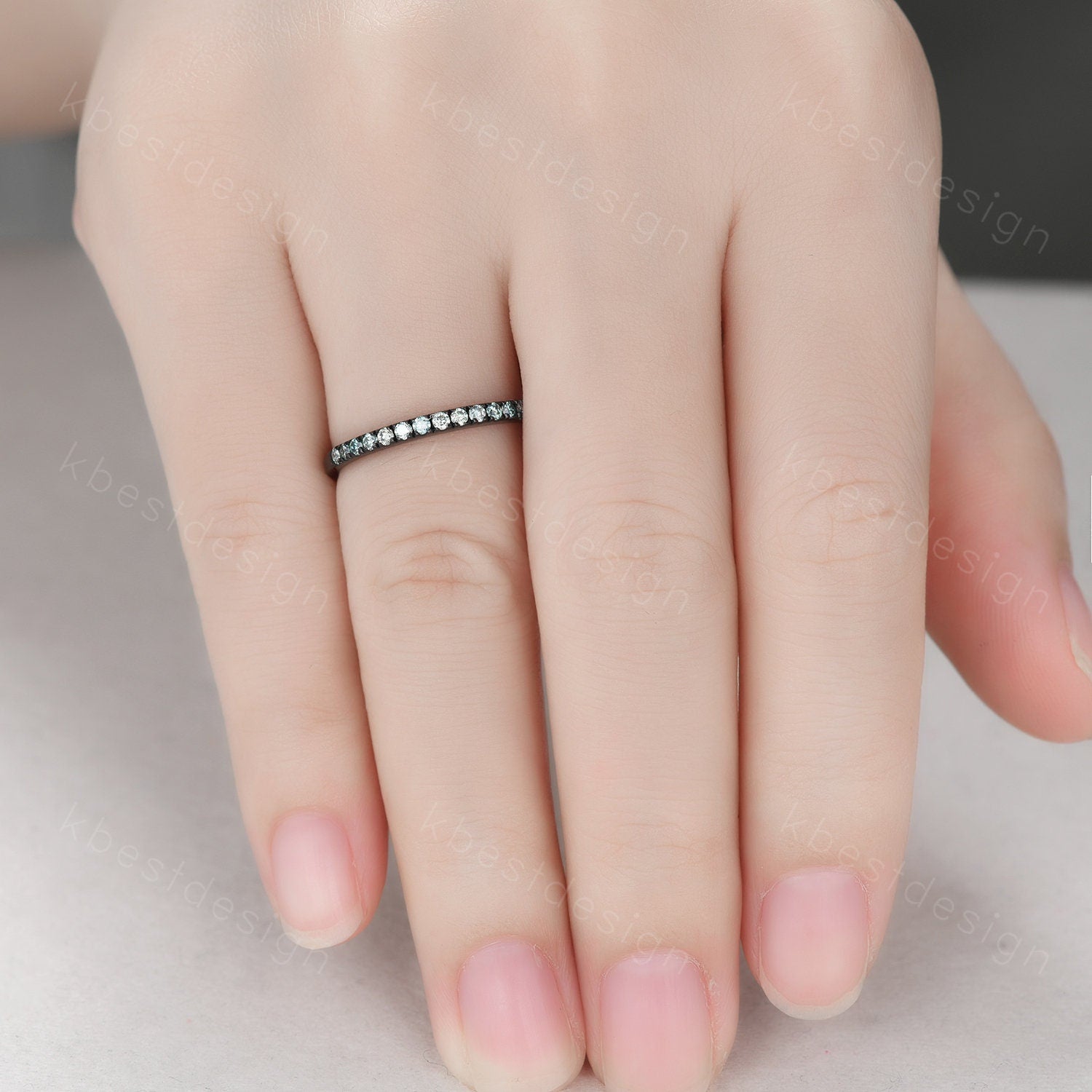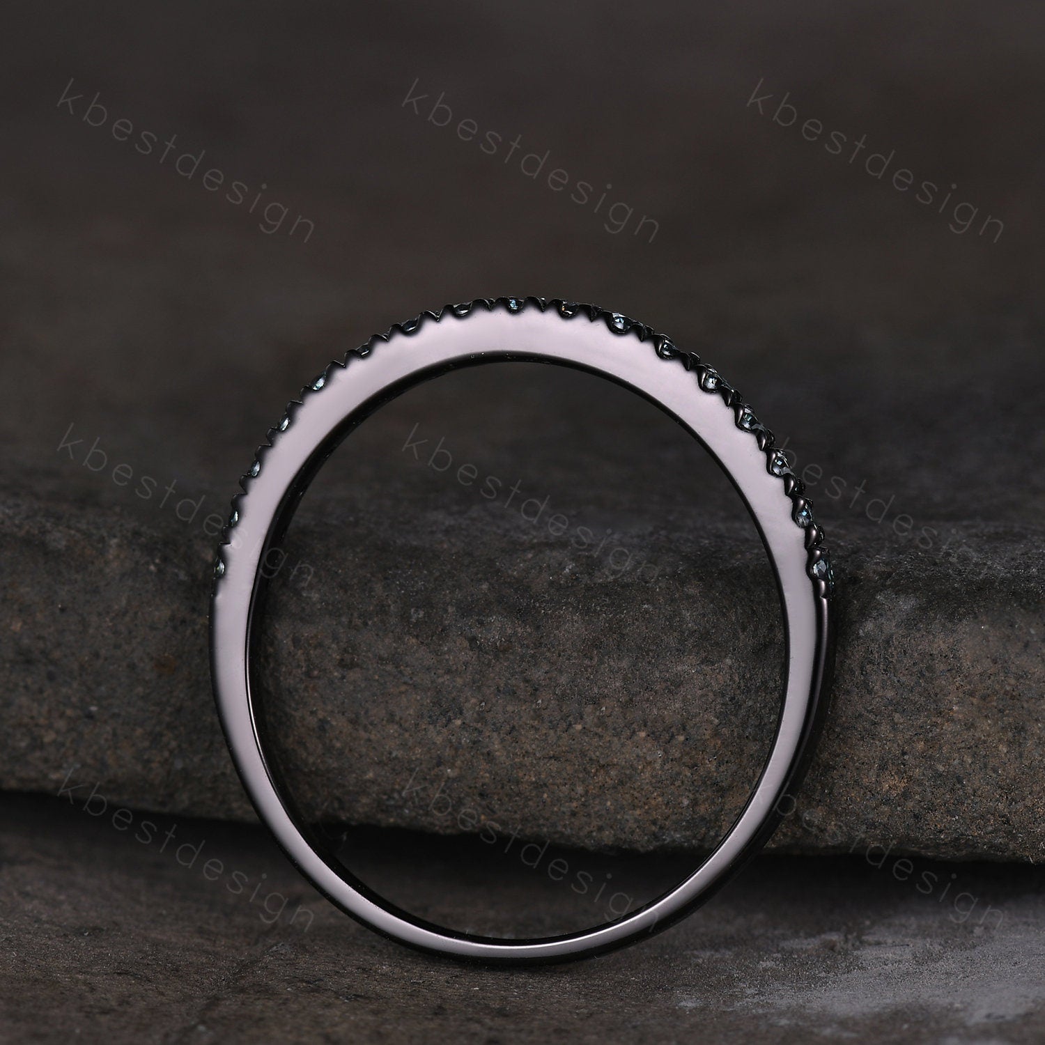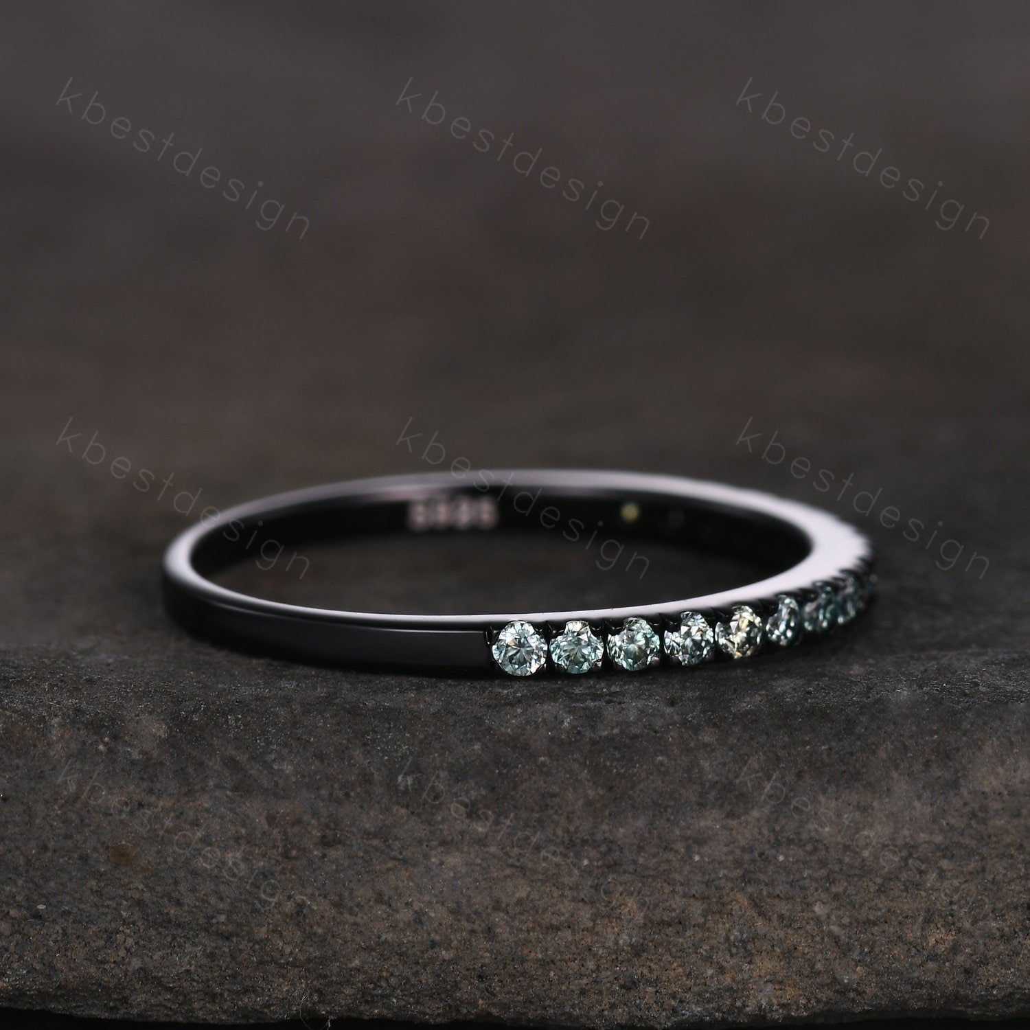 Black gold green moissanite wedding band 1.5mm half eternity stacking matching band unique dainty wedding band for women anniversary ring
