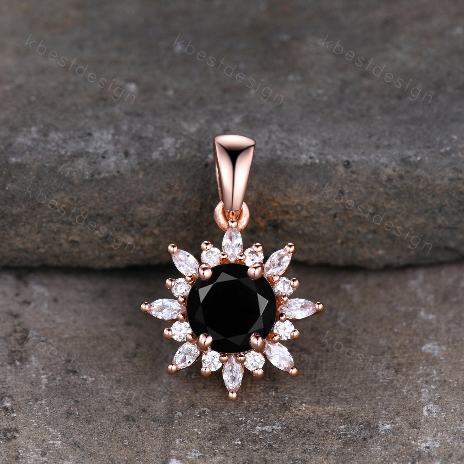 This unique Art Deco Black Onyx Necklace features 1 carat round shaped center stone surrounded by Moissanite/Simulated Diamonds. For those who are looking for agate jewelry which is handcrafted in details, this unique agate necklace would be a perfect choice for you. Whether it be a Birthday gift for her, an anniversary gift her, or a celebration of yourself, this agate jewelry is the perfect gift from the heart.
