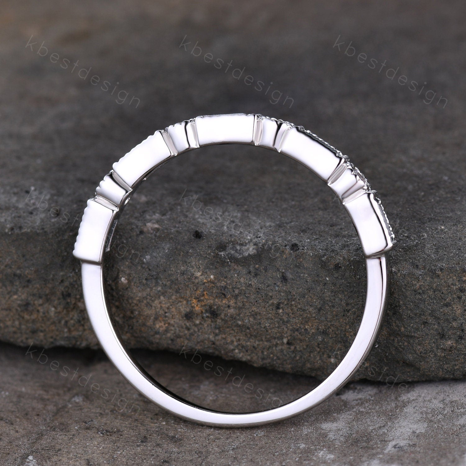Art deco half eternity baguette stacking band, matching band, anniversary gift, birthday gift.