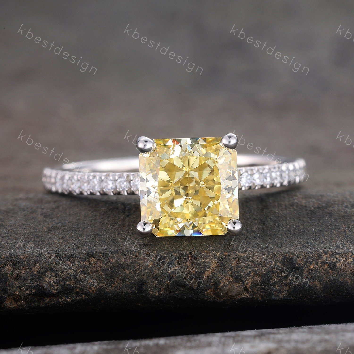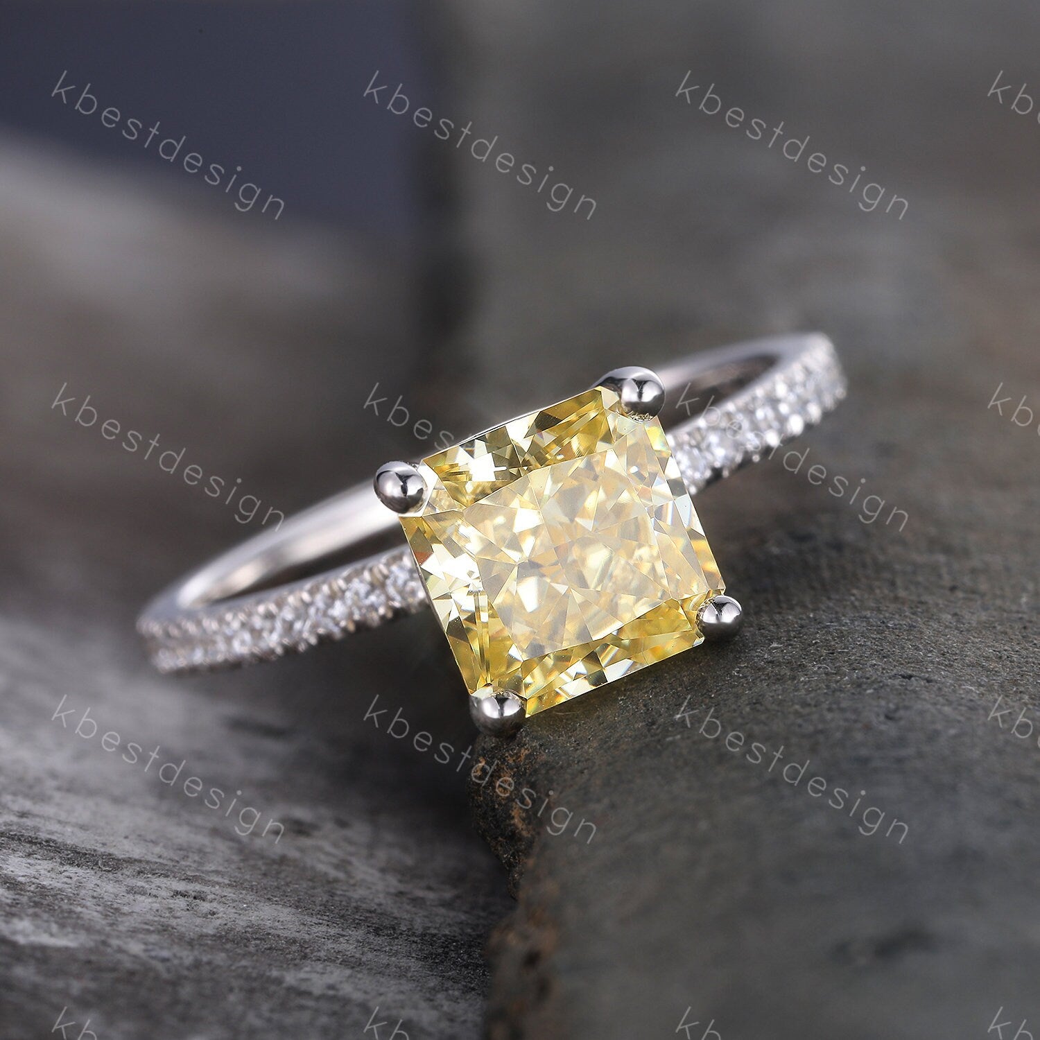 Canary Diamond Ring, Yellow Diamond Engagement Ring, Emerald Cut Engagement Ring, Yellow CZ Ring, Promise Ring, Sterling Silver, Square Ring