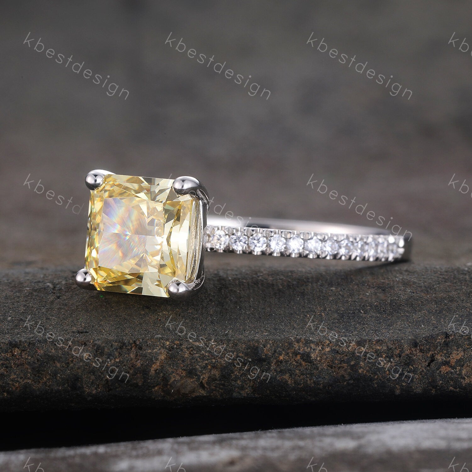 This is a beautiful Yellow CZ diamond engagement ring in 925 sterling silver.