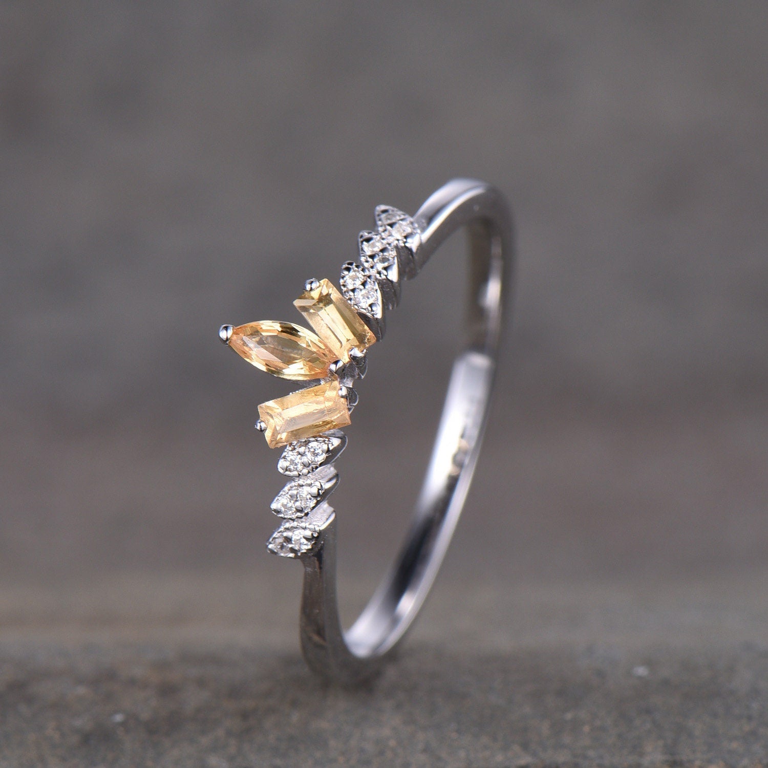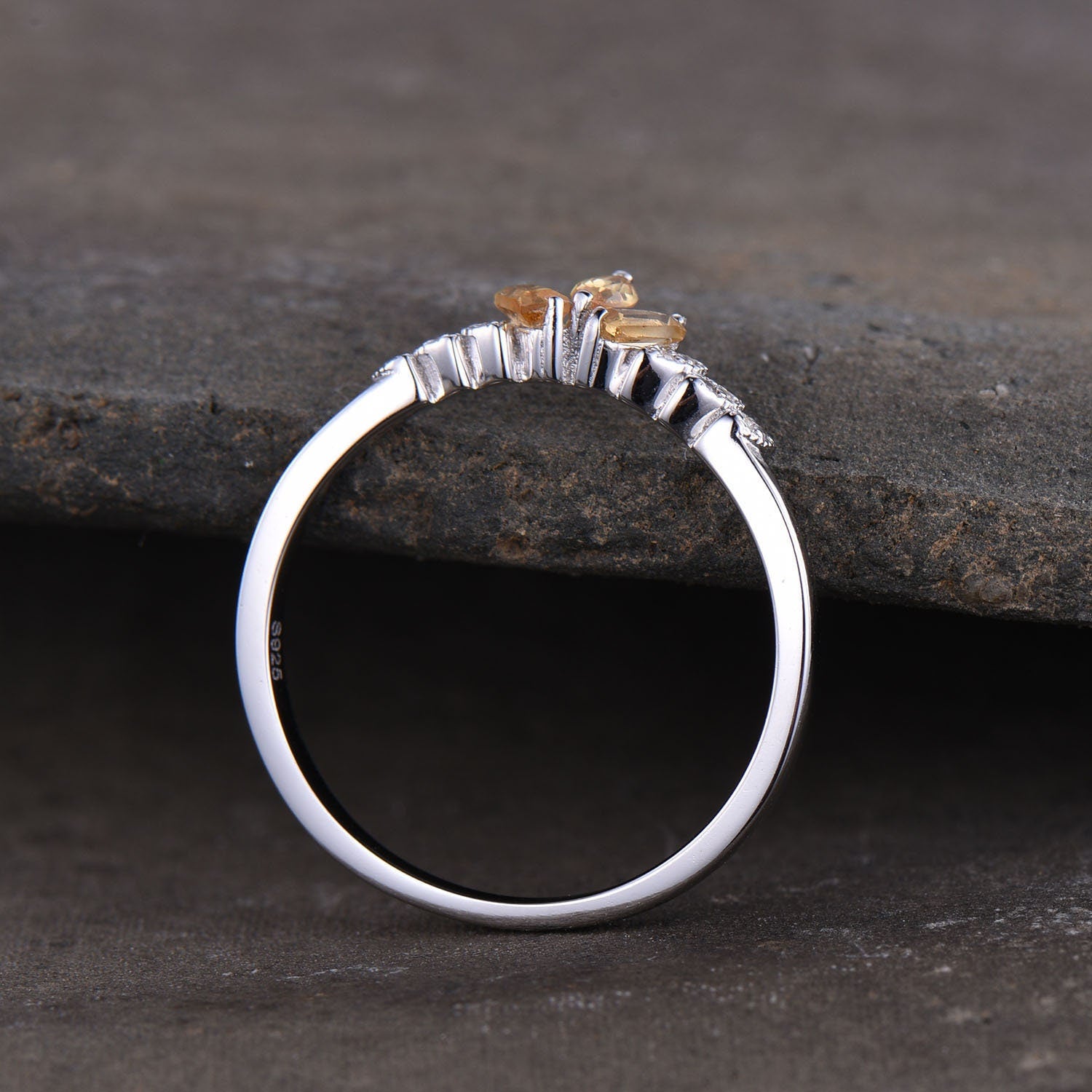 Citrine Ring, Dainty Ring, Stacking Rings, Sterling Silver Rings, Art deco Style, Anniversary Gift, Delicate Ring