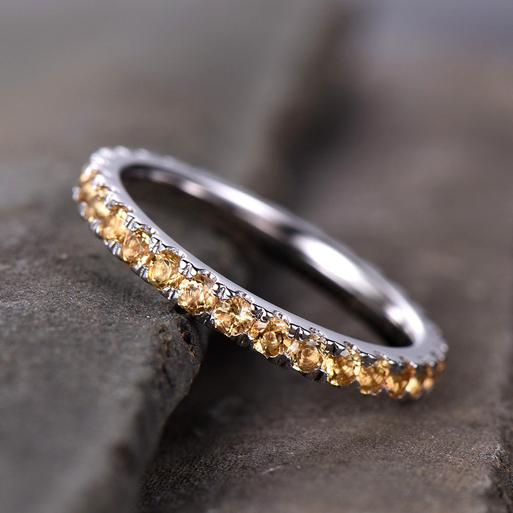 Citrine Wedding Ring Yellow Citrine Ring Full Eternity Band White Gold Plated Sterling Silver Stackable Band Annniversary Ring