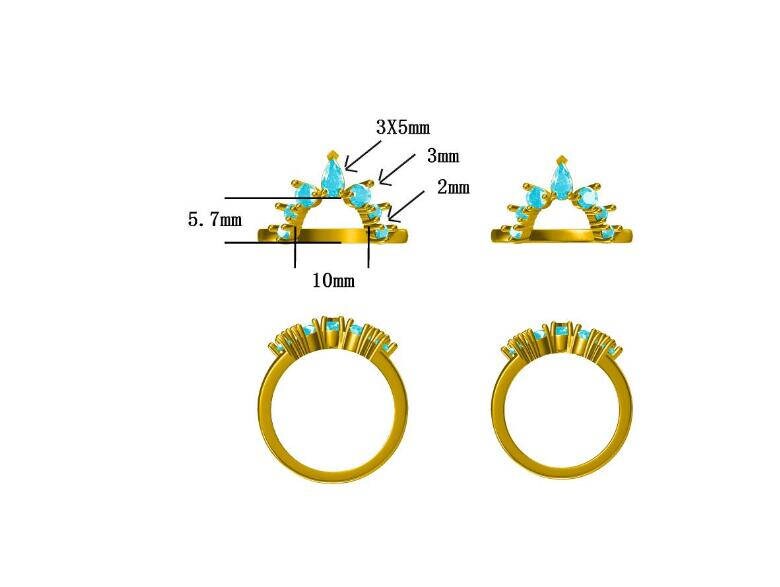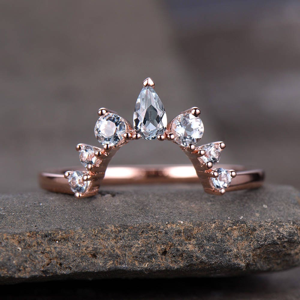 Crown Wedding Band Aquamarine Wedding Band Curve Wedding Ring Stacking Ring Chevron Ring Rose Gold Plated Sterling Silver Anniversary Ring