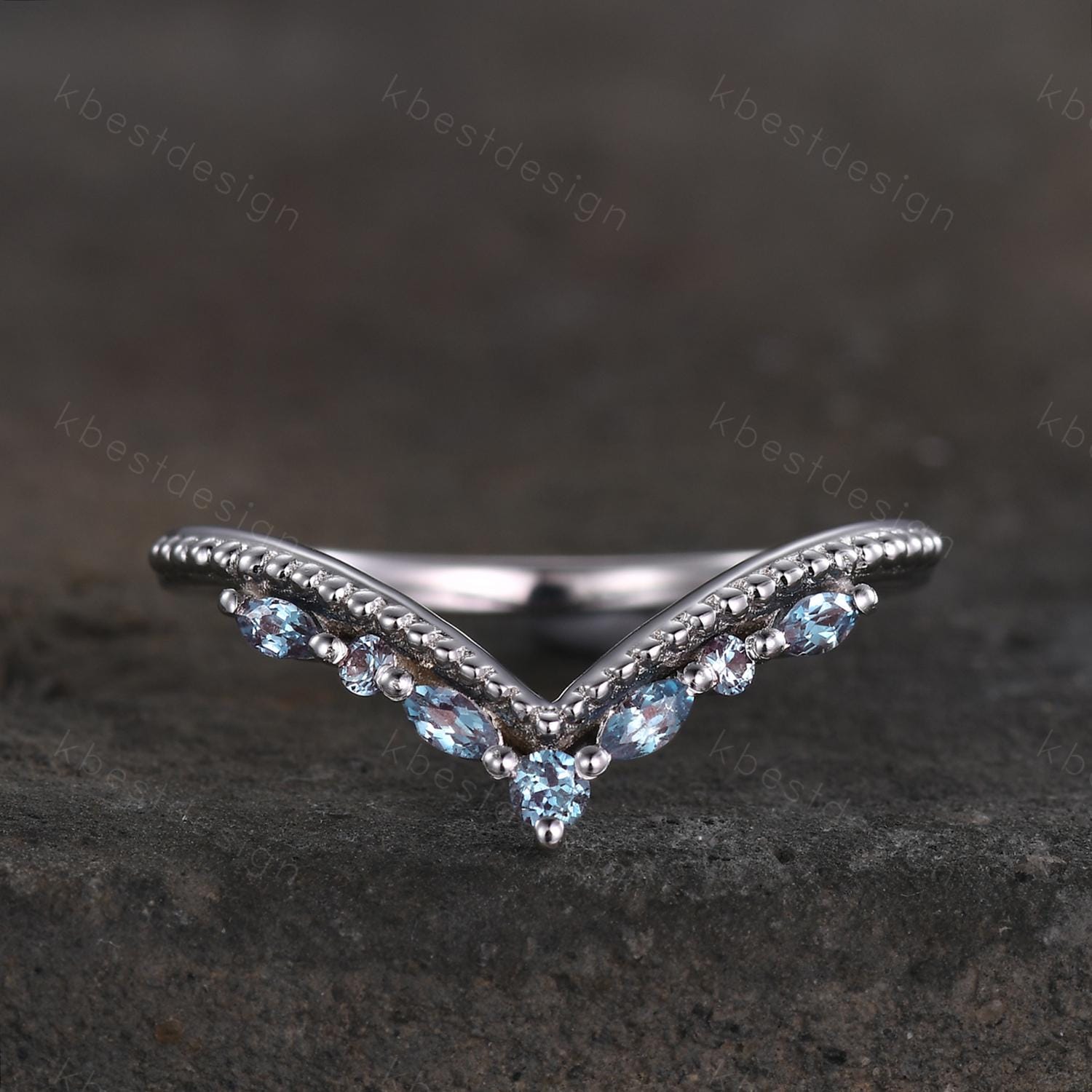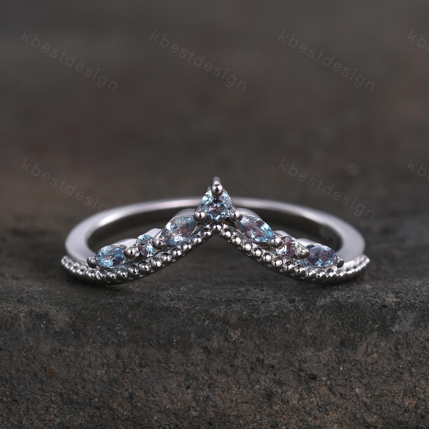 Curved Alexandrite wedding band sterling silver wedding band Unique art deco alexandrite stacking band Anniversary ring Women gift