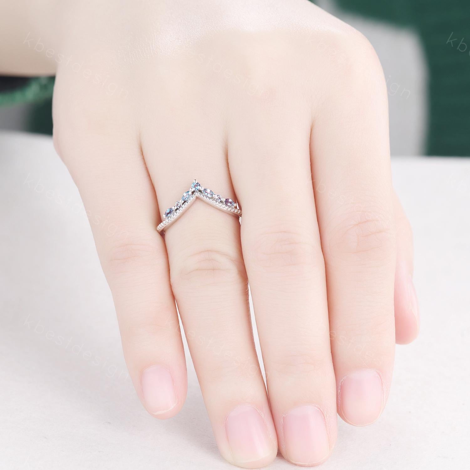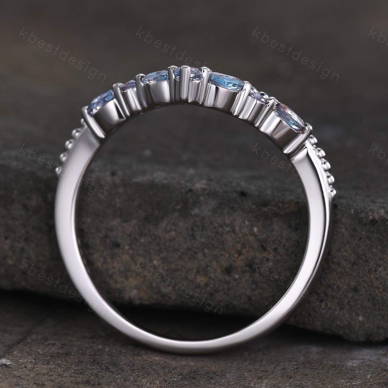This is a Curved Alexandrite wedding band sterling silver wedding band Unique art deco alexandrite stacking band Anniversary ring Women gift