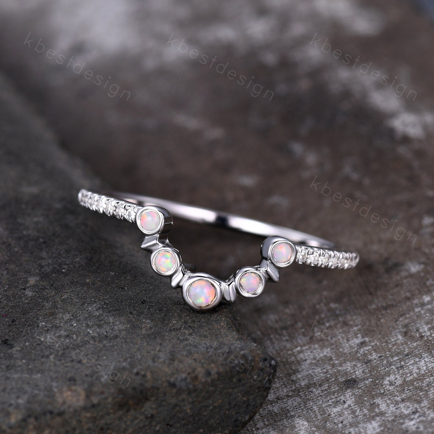 This is a Opal curved wedding band in 925 sterling silver. Unique curved stacking matching ring, wedding ring, promise ring, anniversary gift.